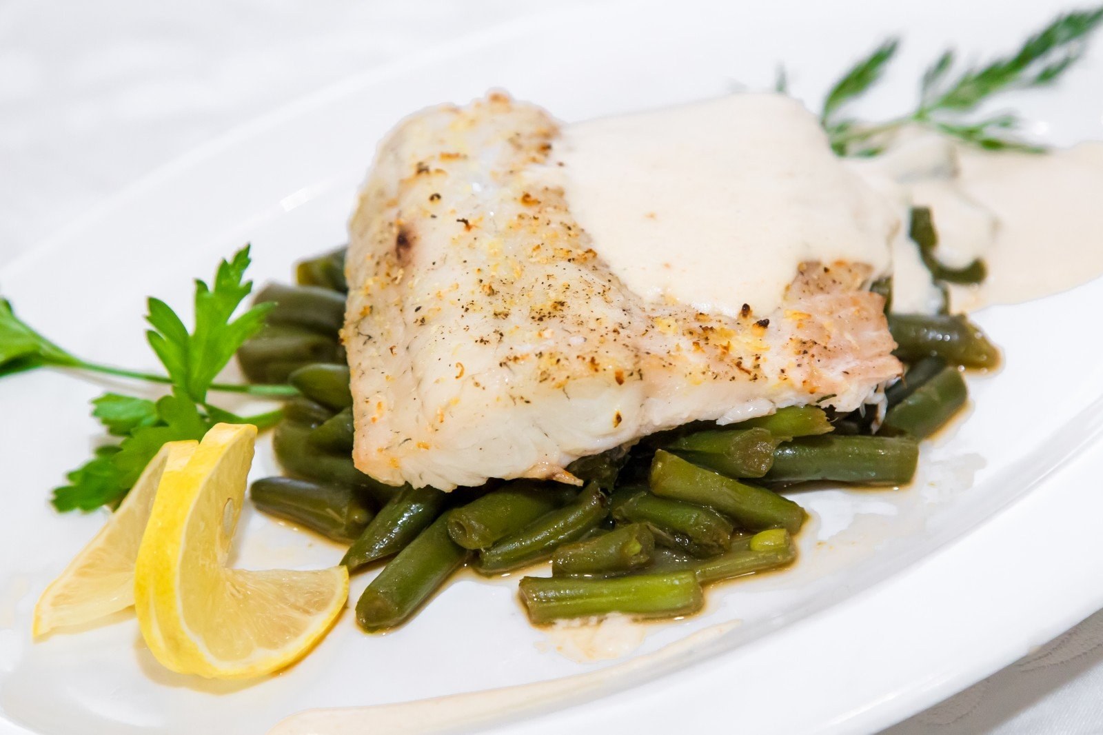Морской окунь с соусом тартар