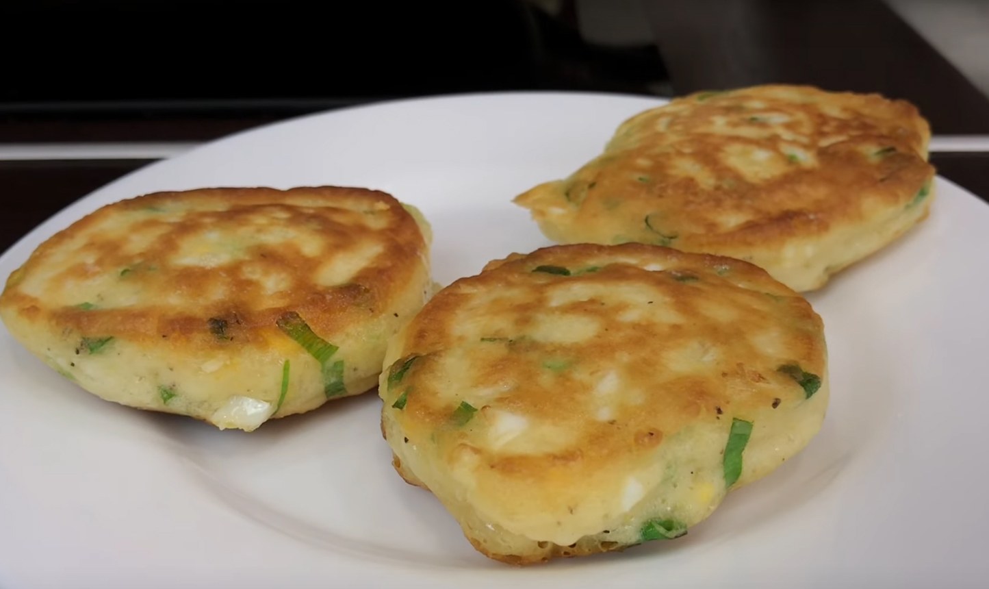 Оладьи с зеленым луком и яйцом