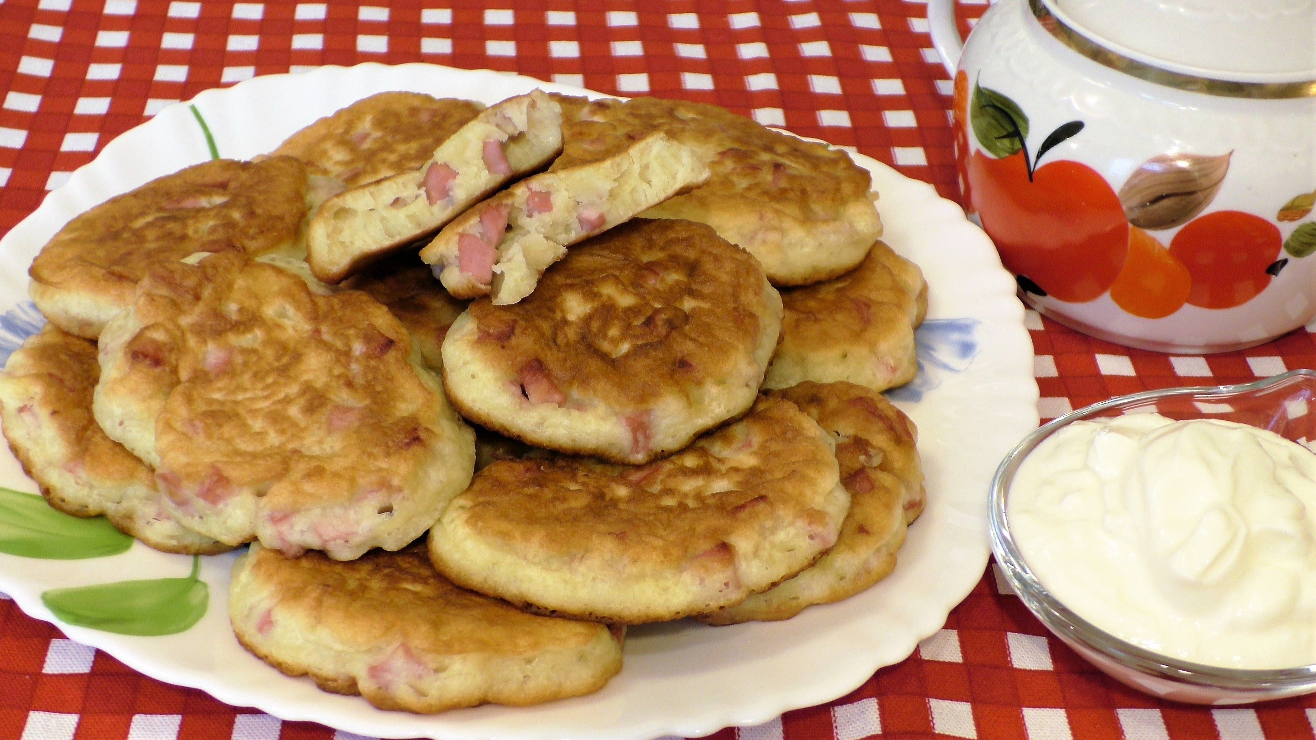 Оладьи из яиц муки сметаны и СВР