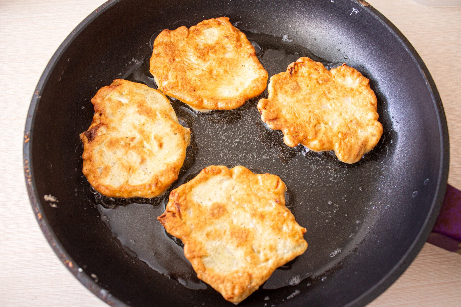 Луковые оладьи на сковороде