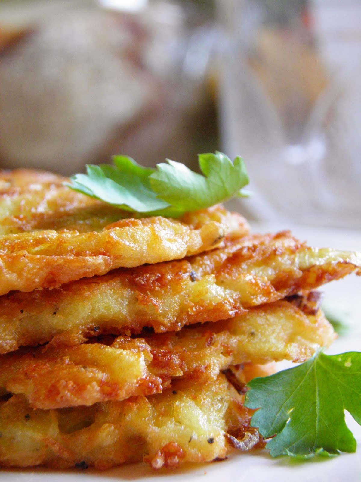Луковые оладушки на блюде