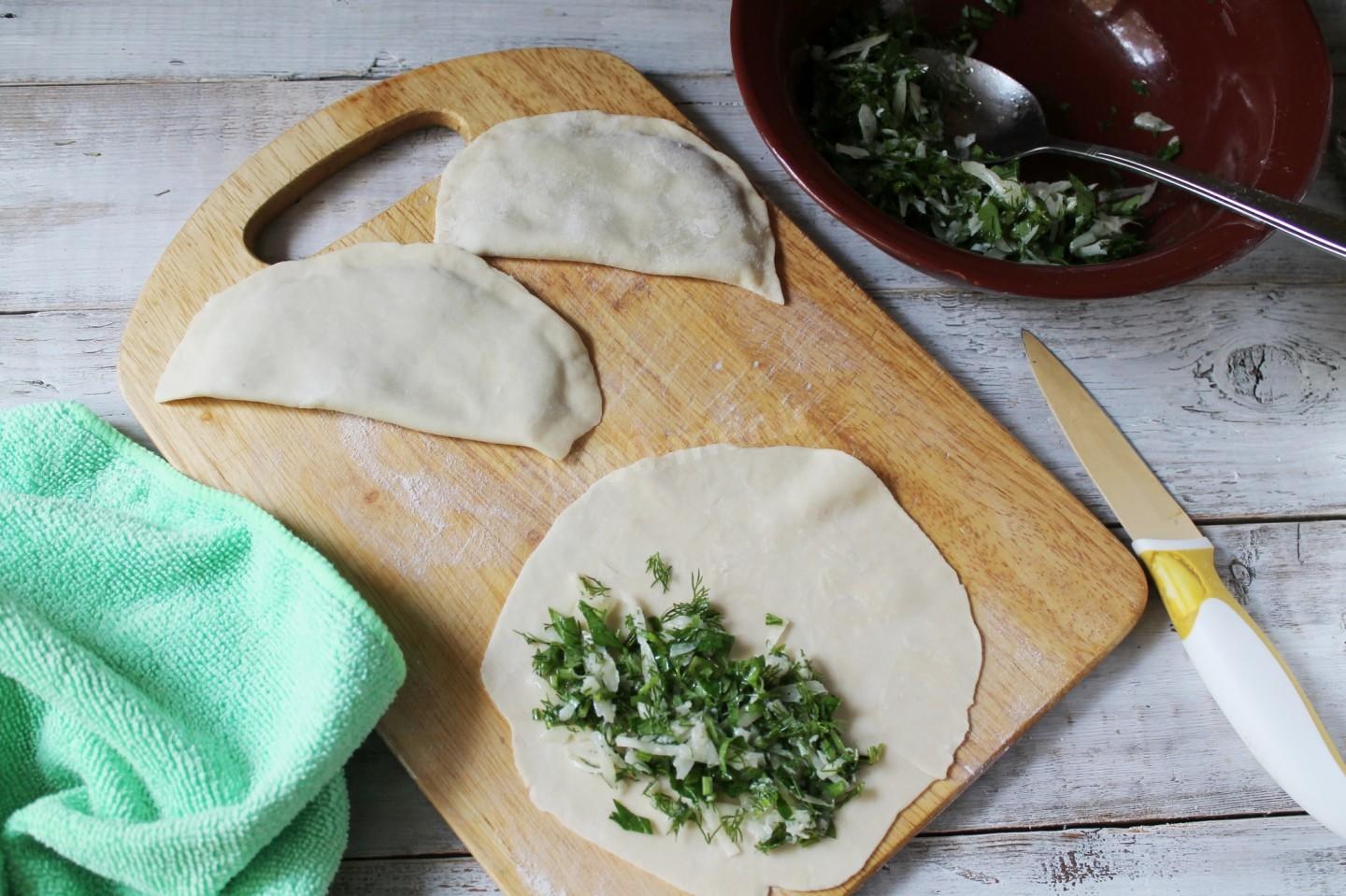 Кутабы из слоеного теста с зеленью