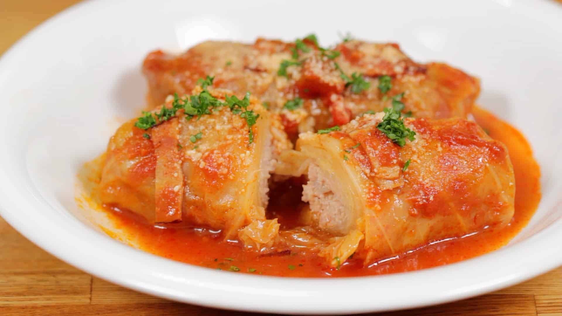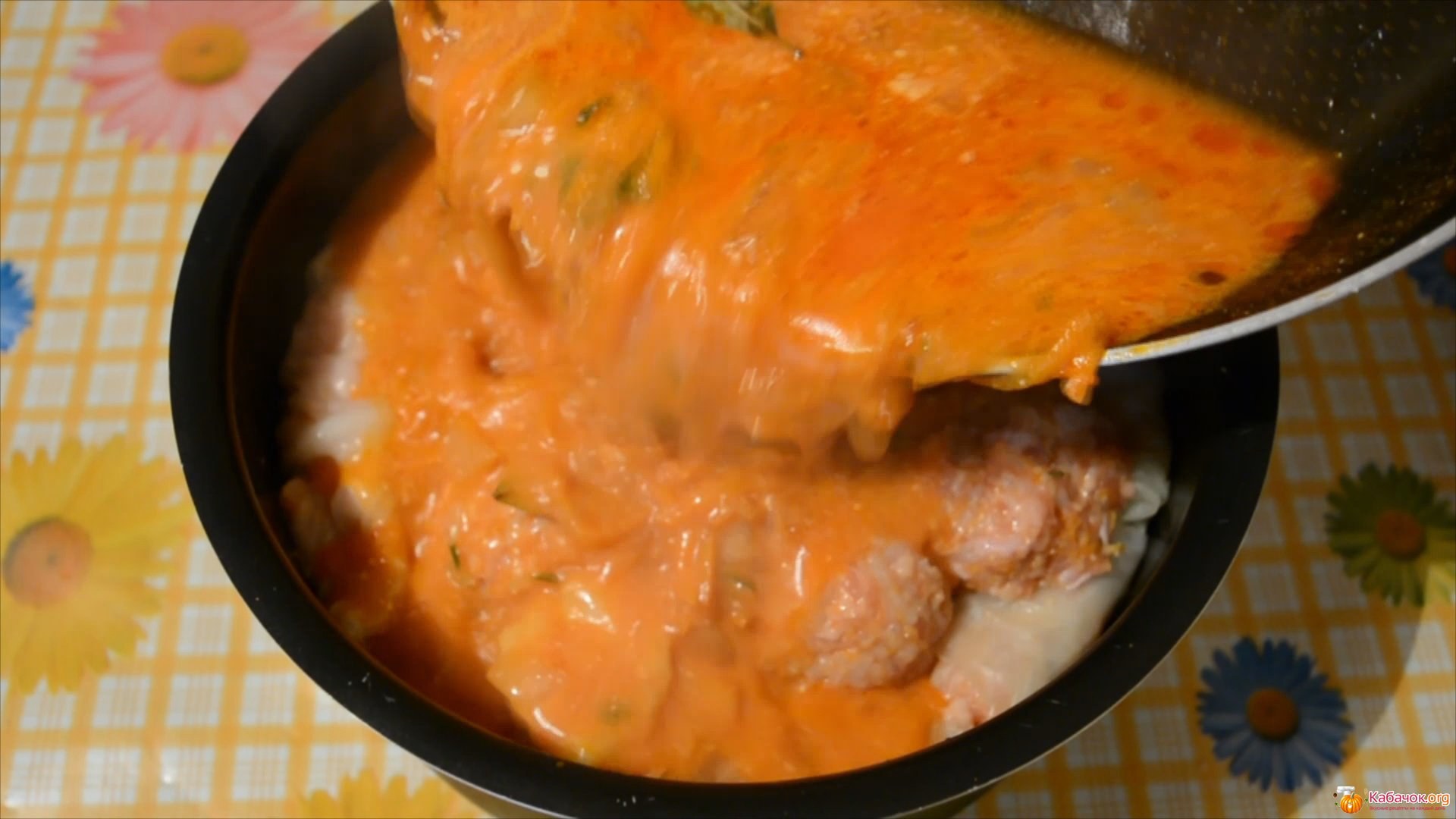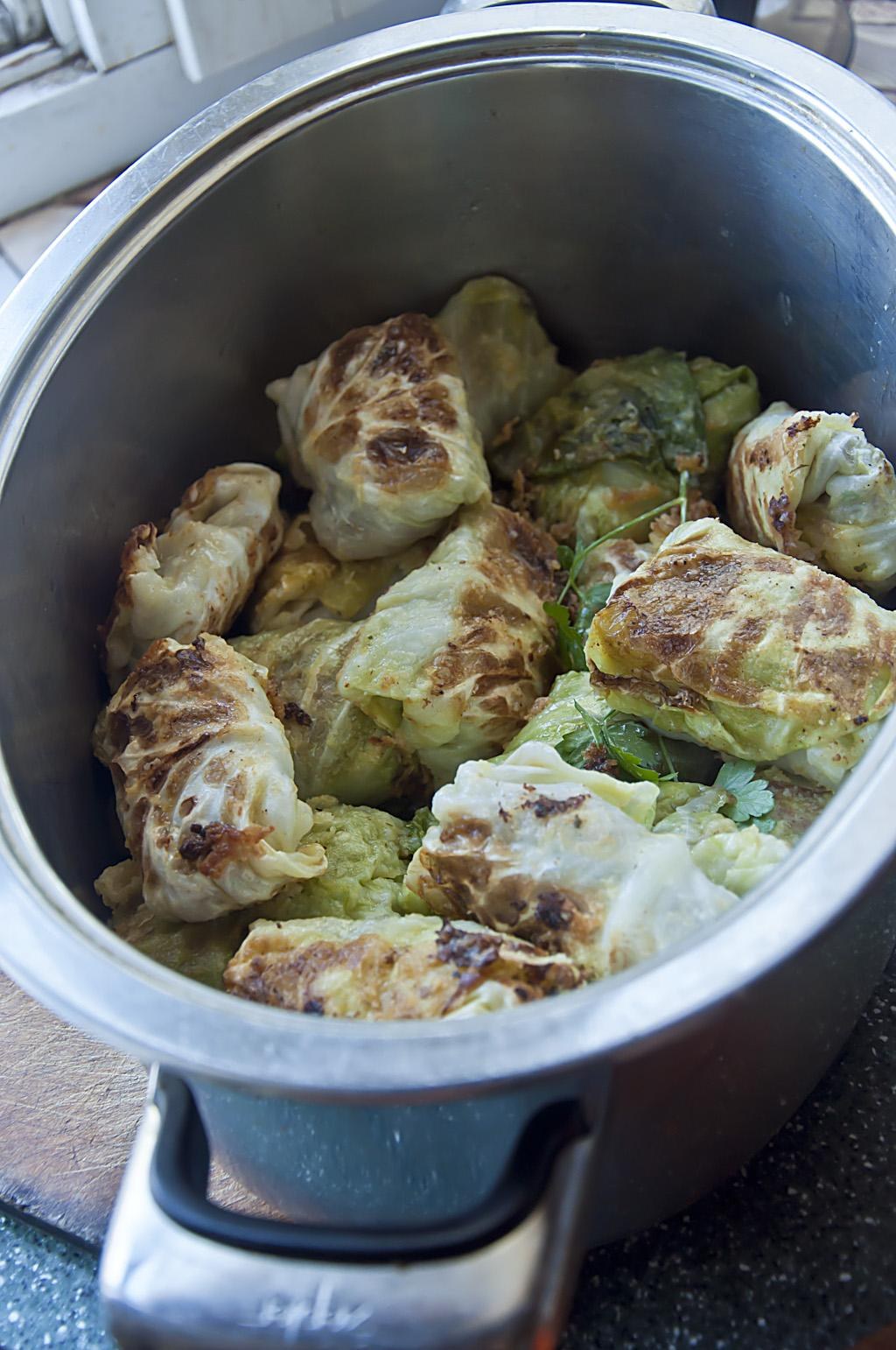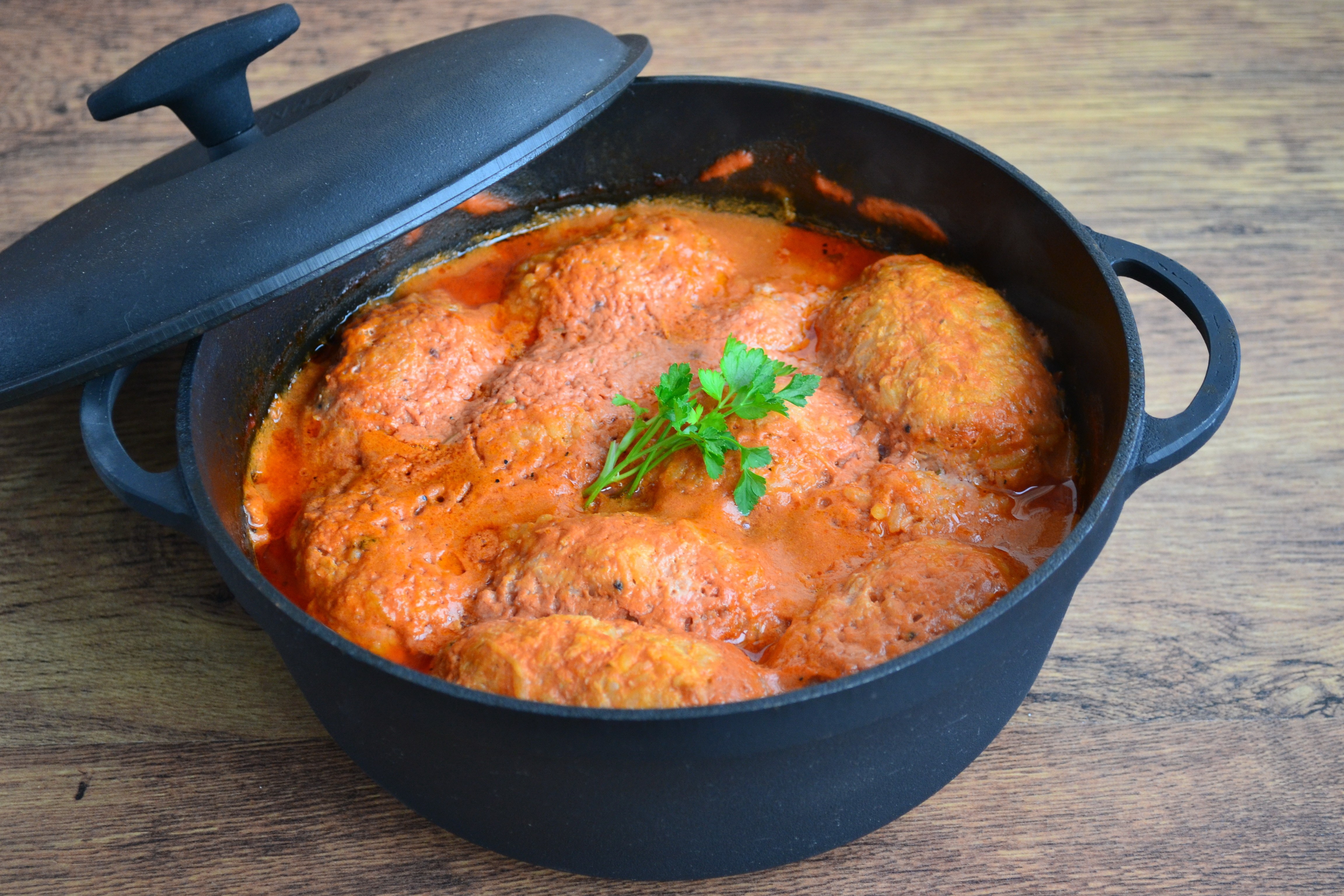 Голубцы из свежей капусты в кастрюле с томатной пастой и морковью