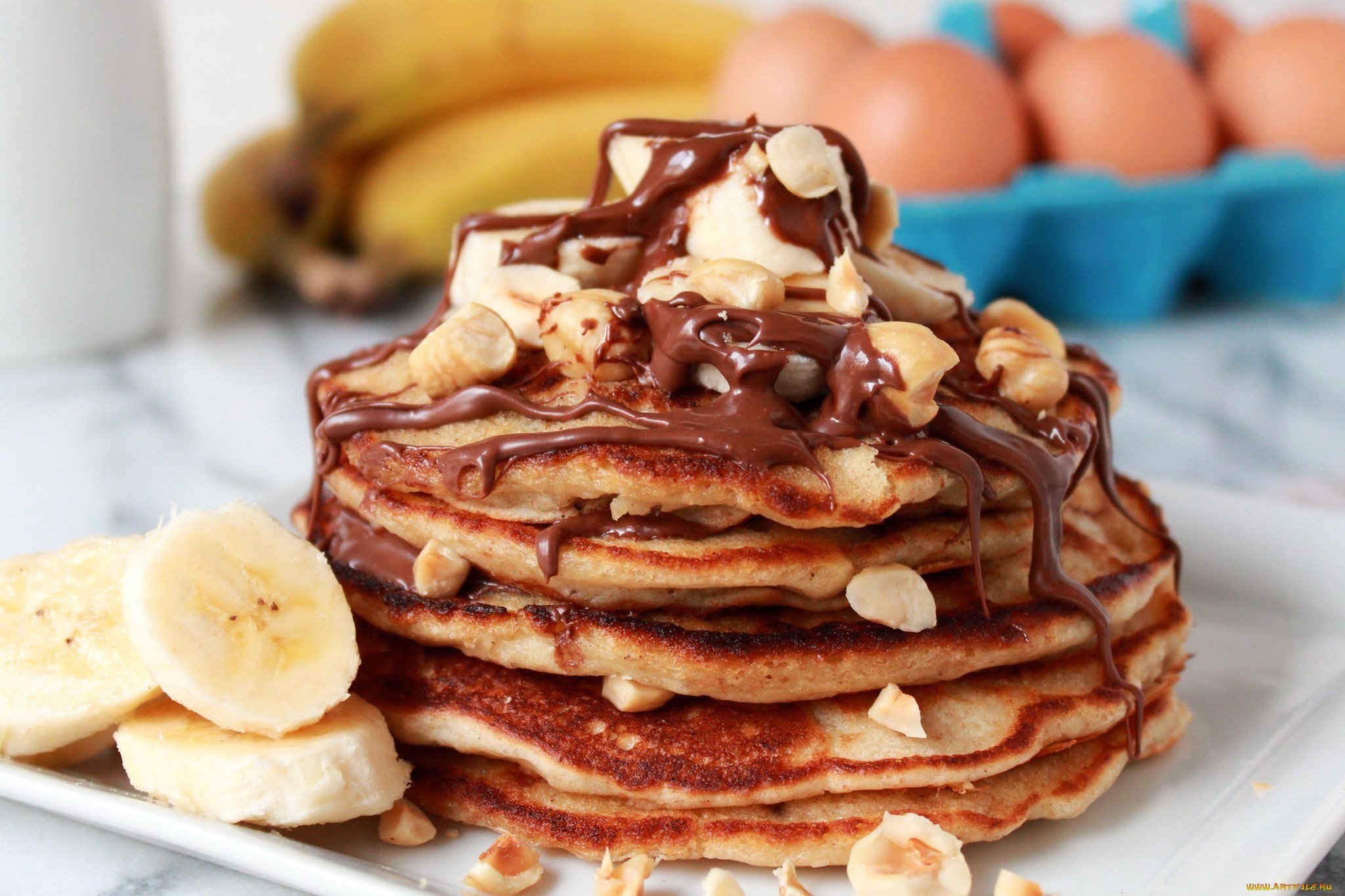 Панкейки с бананом и шоколадом