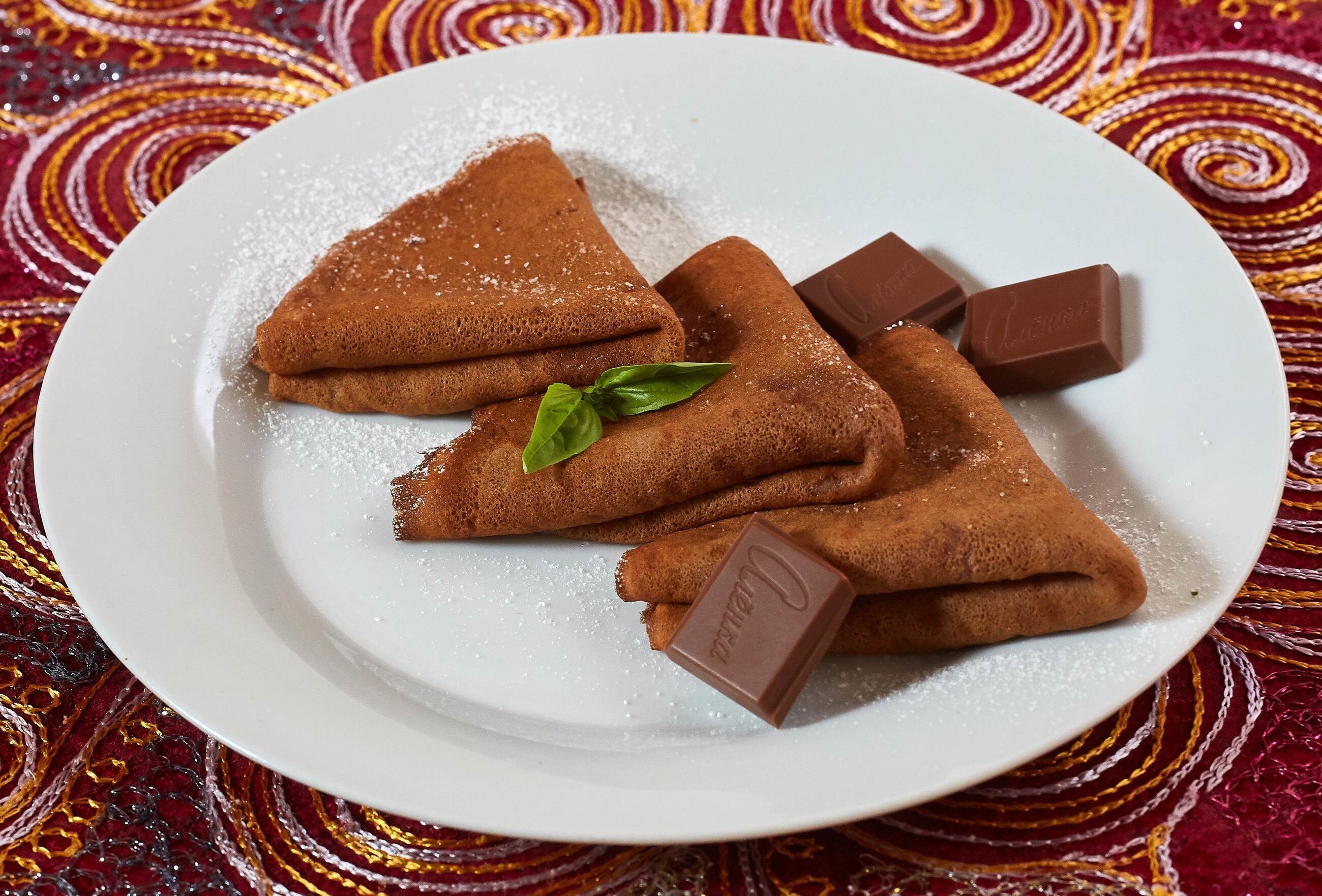 Подача блинов с шоколадом