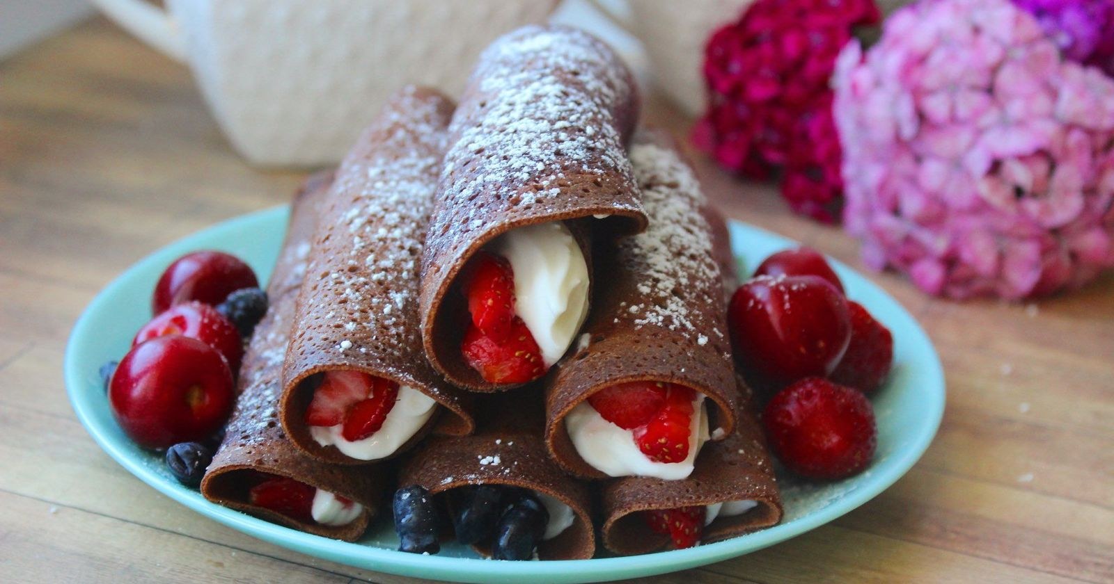 Шоколадные блины с вишней