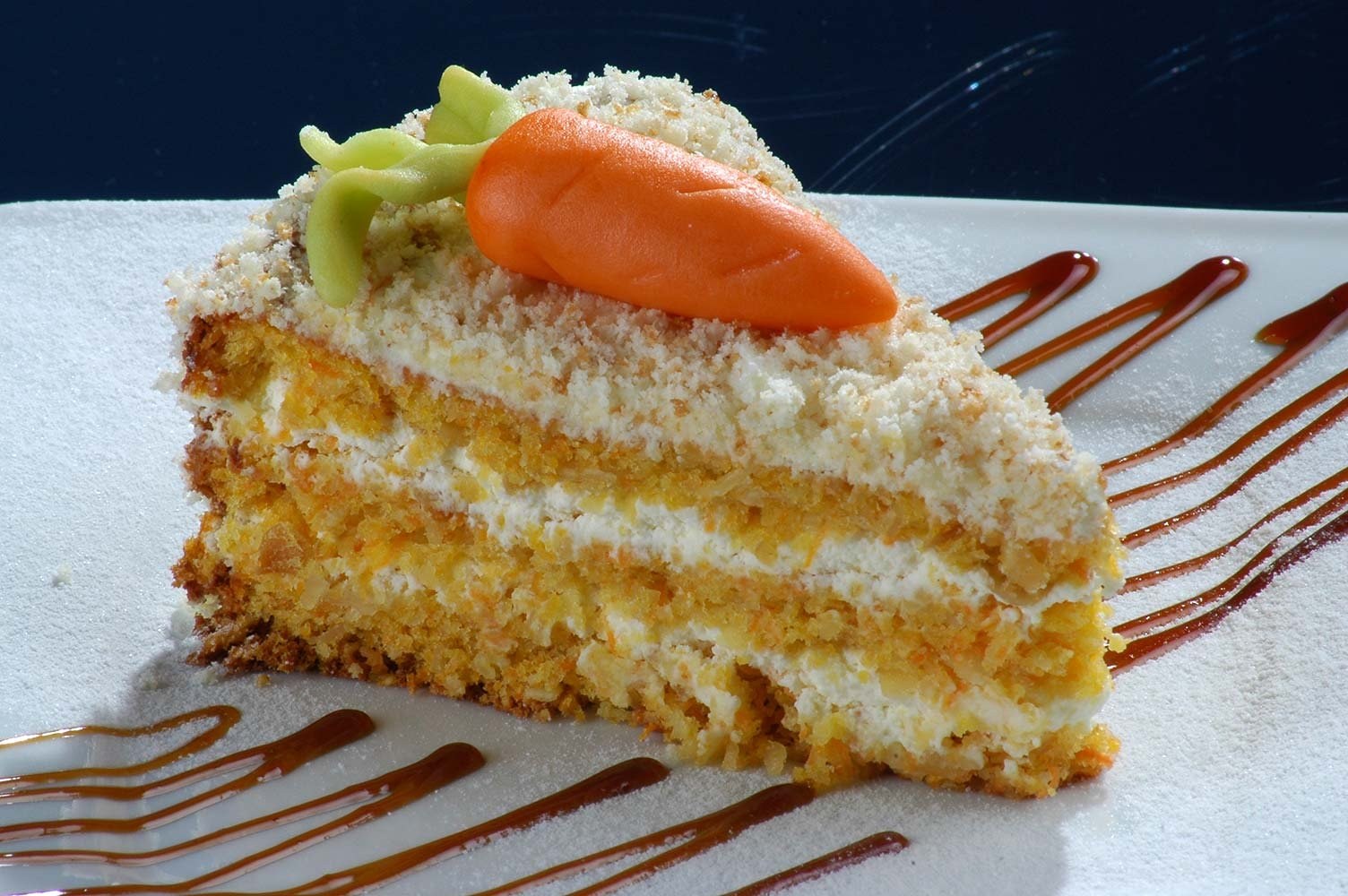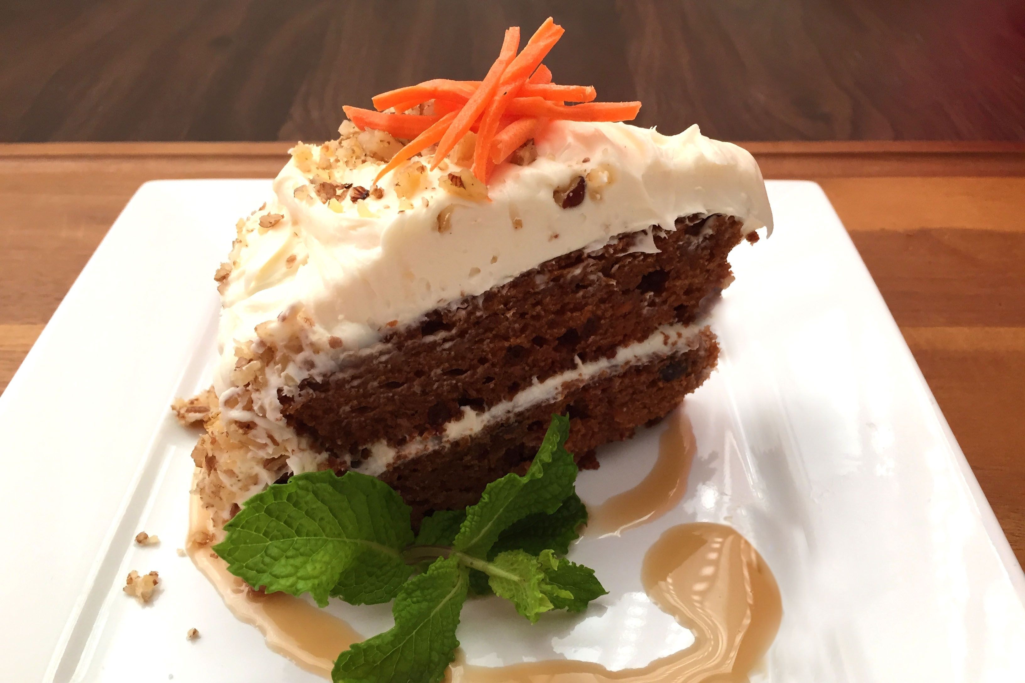 Разрез торта морковный с карамелью