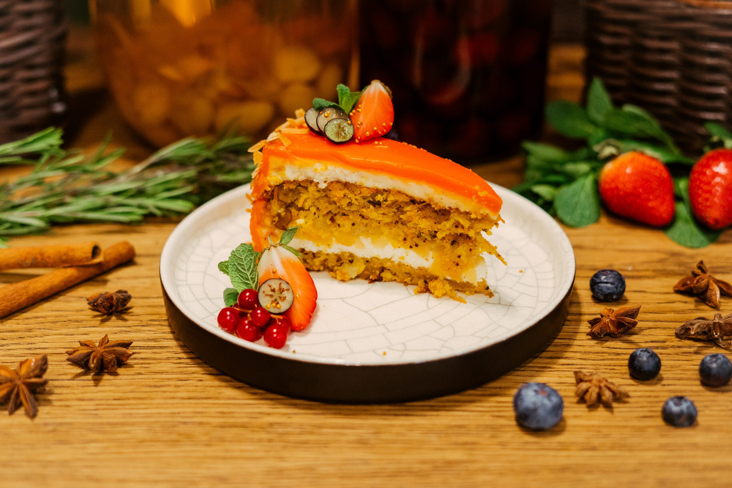 Морковный торт кусочек и клубничный