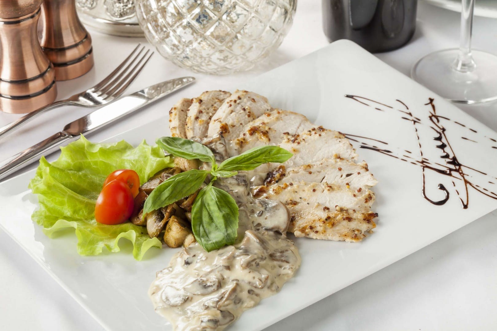 Куриная грудка с грибами в сливочном соусе
