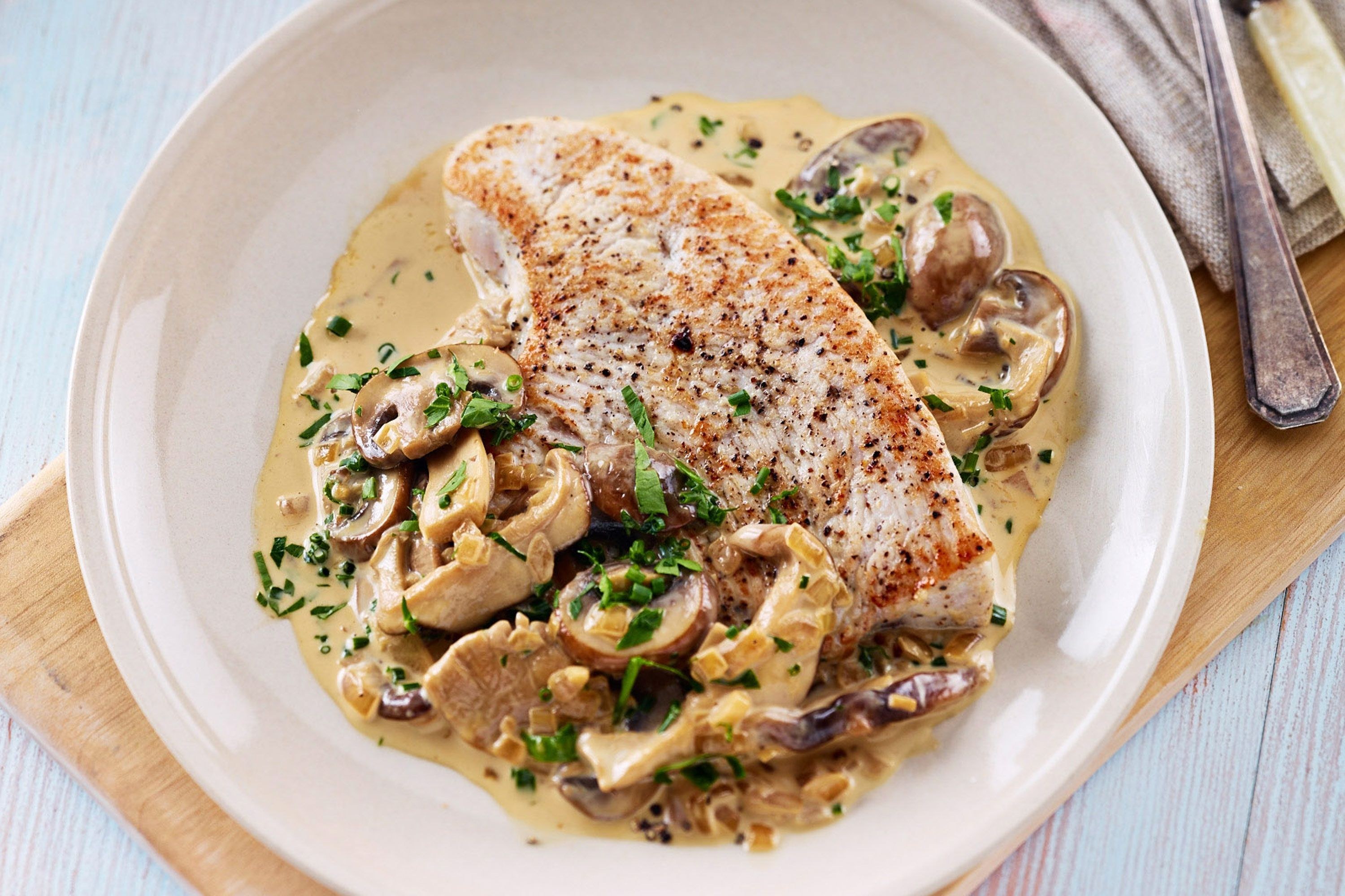 Филе индейки с грибами в сливочном соусе