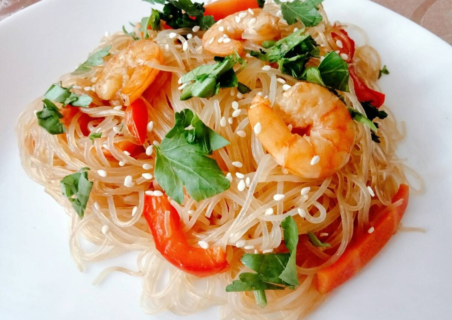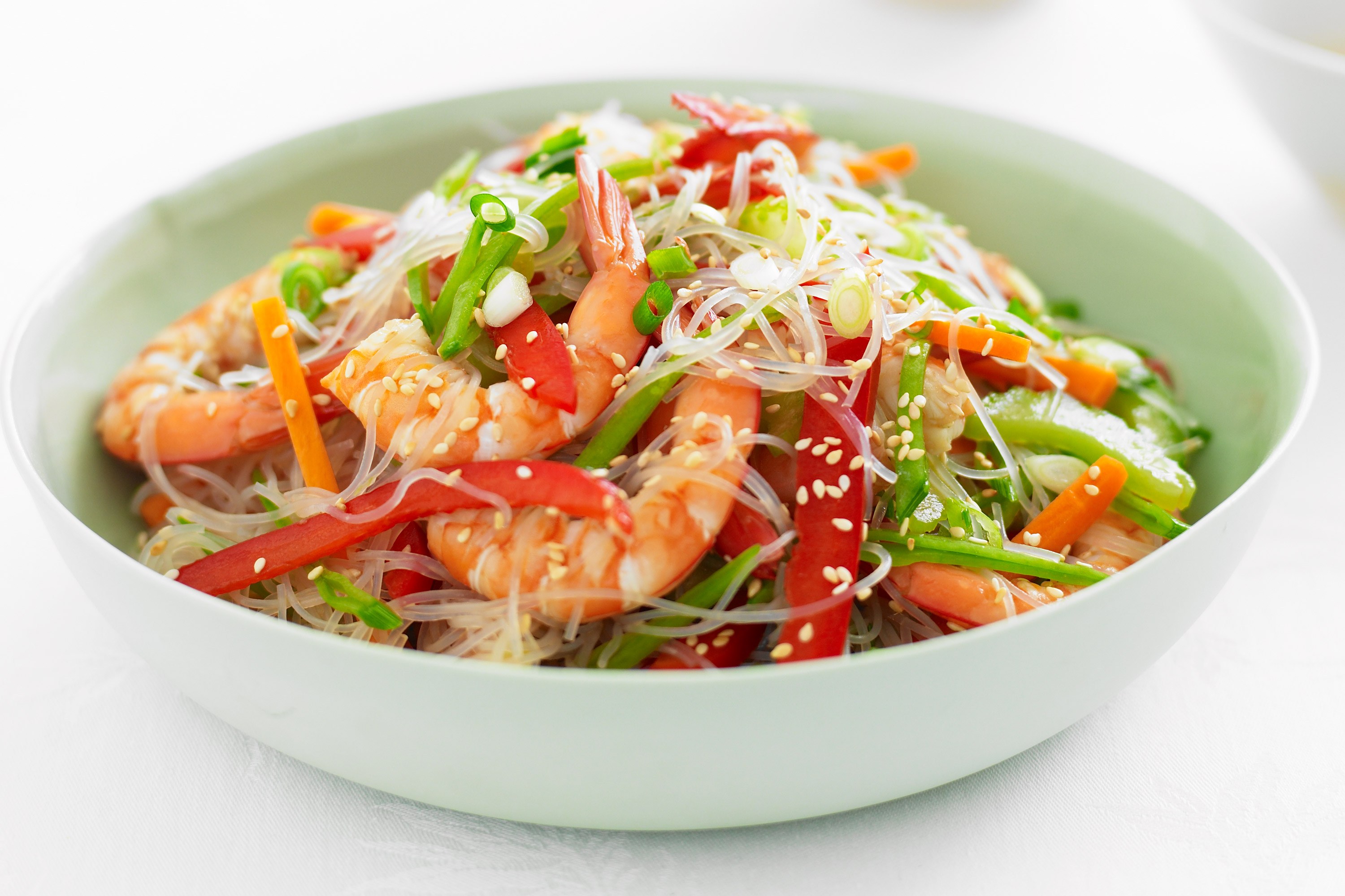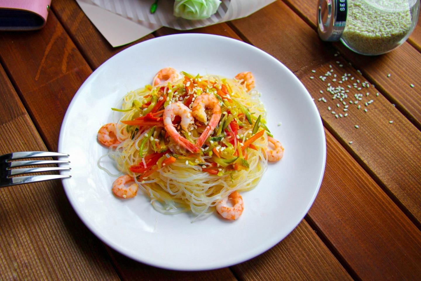 Фунчоза с креветками и овощами