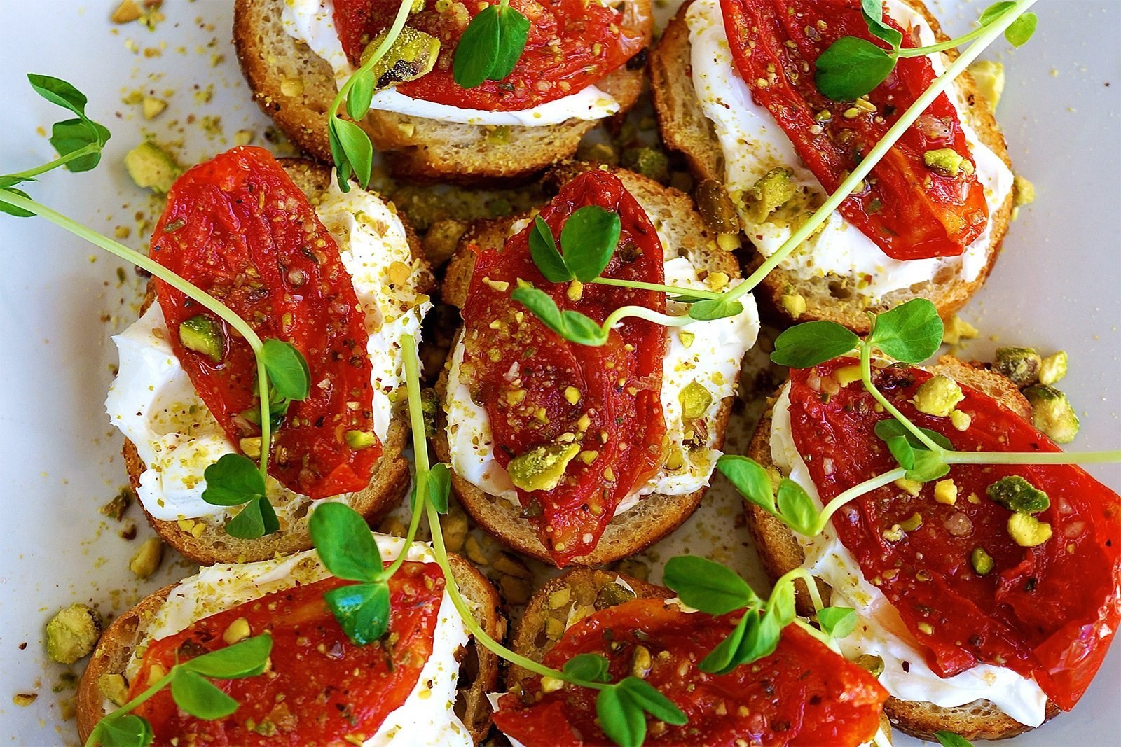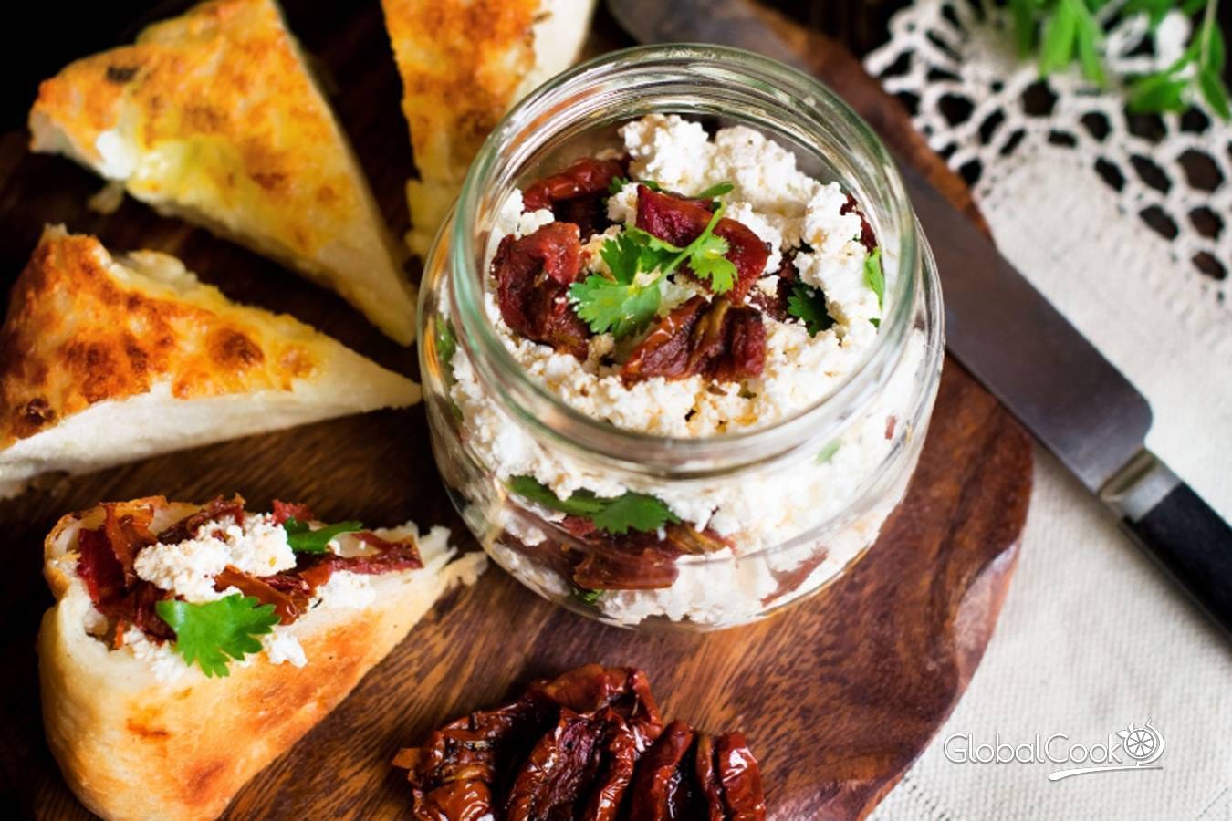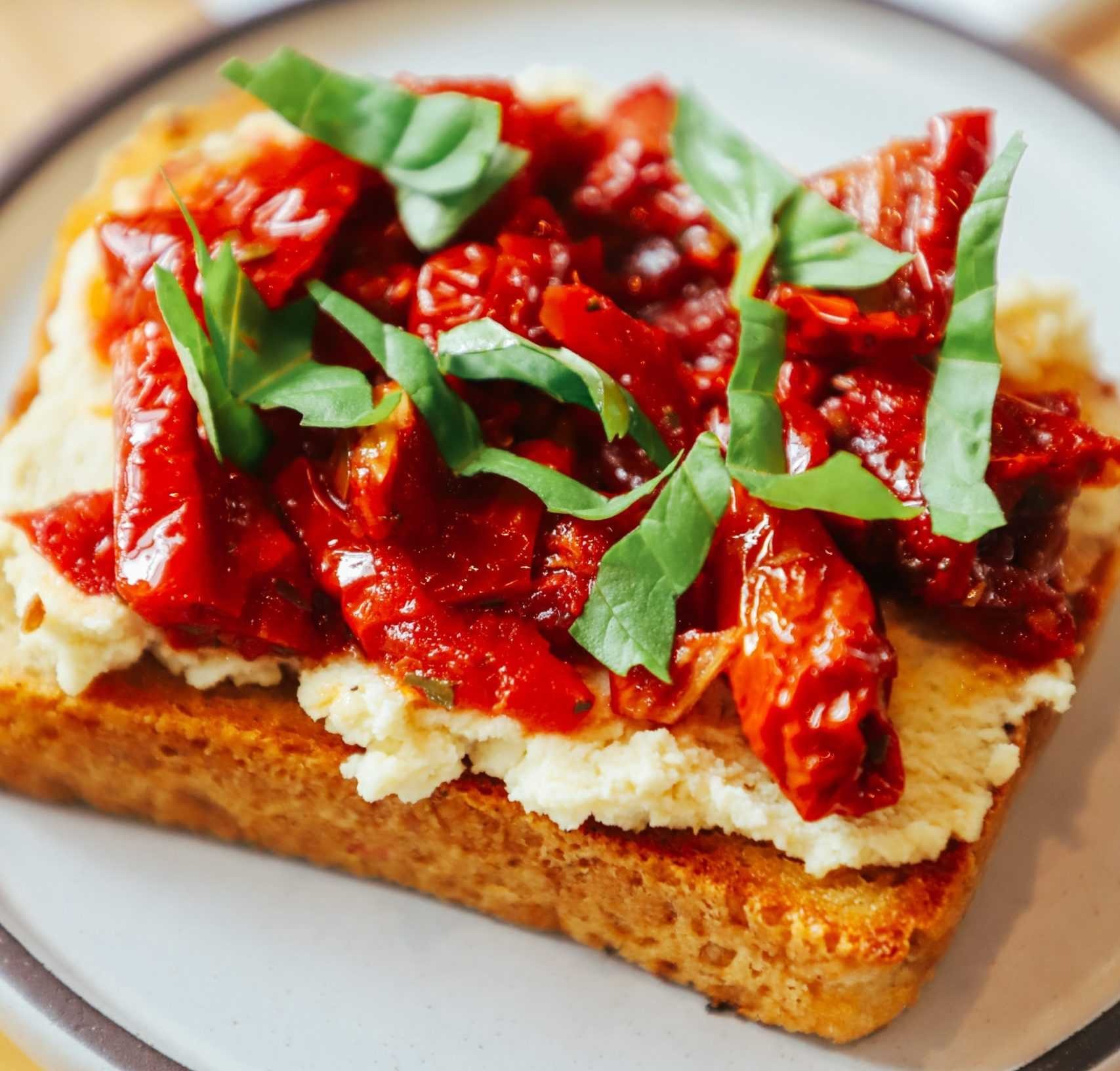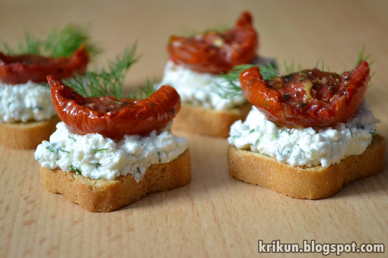 Брускетты с вялеными помидорами и творожным сыром