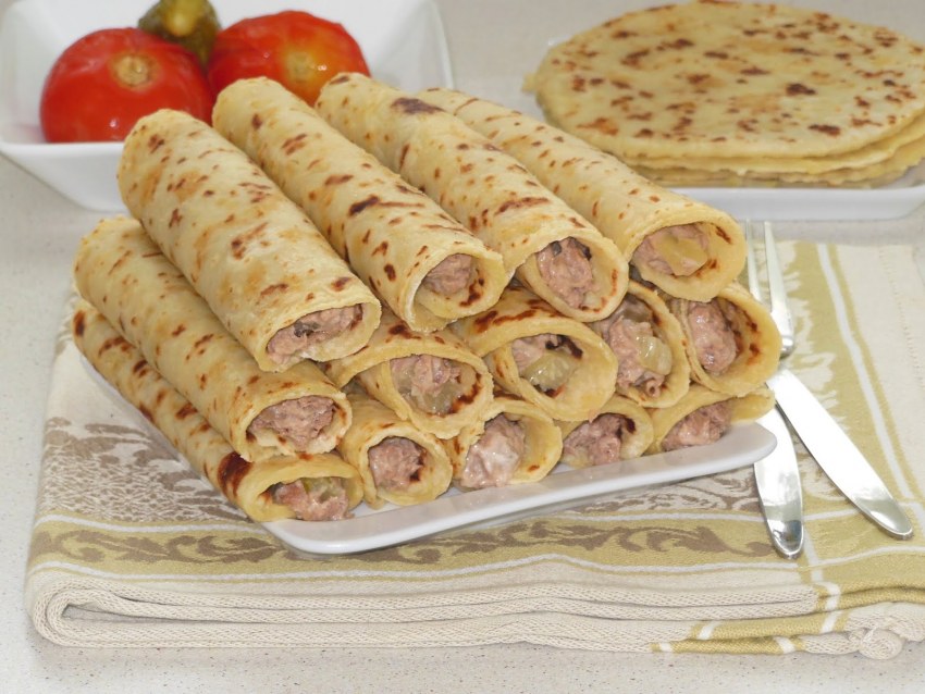 Мясные трубочки из фарша с начинкой