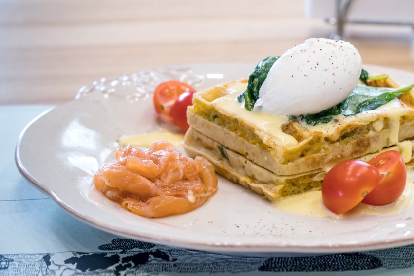 Вафли с беконом и яйцом пашот