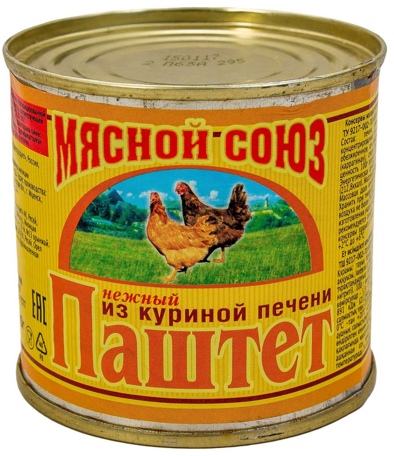Паштет нежный мясной Союз из куриной печени 240гр офиц