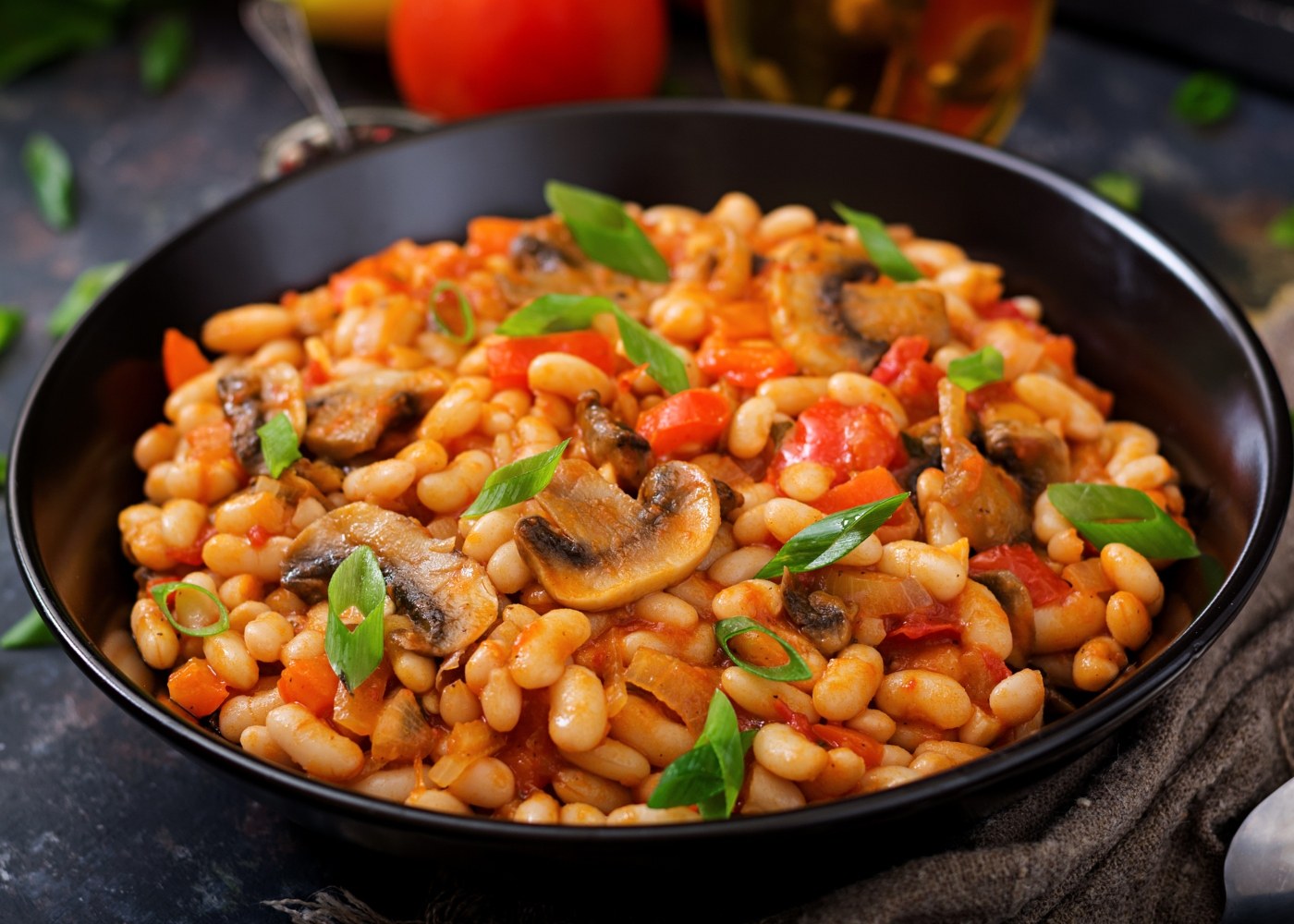 Фасоль, тушеная с грибами и овощами