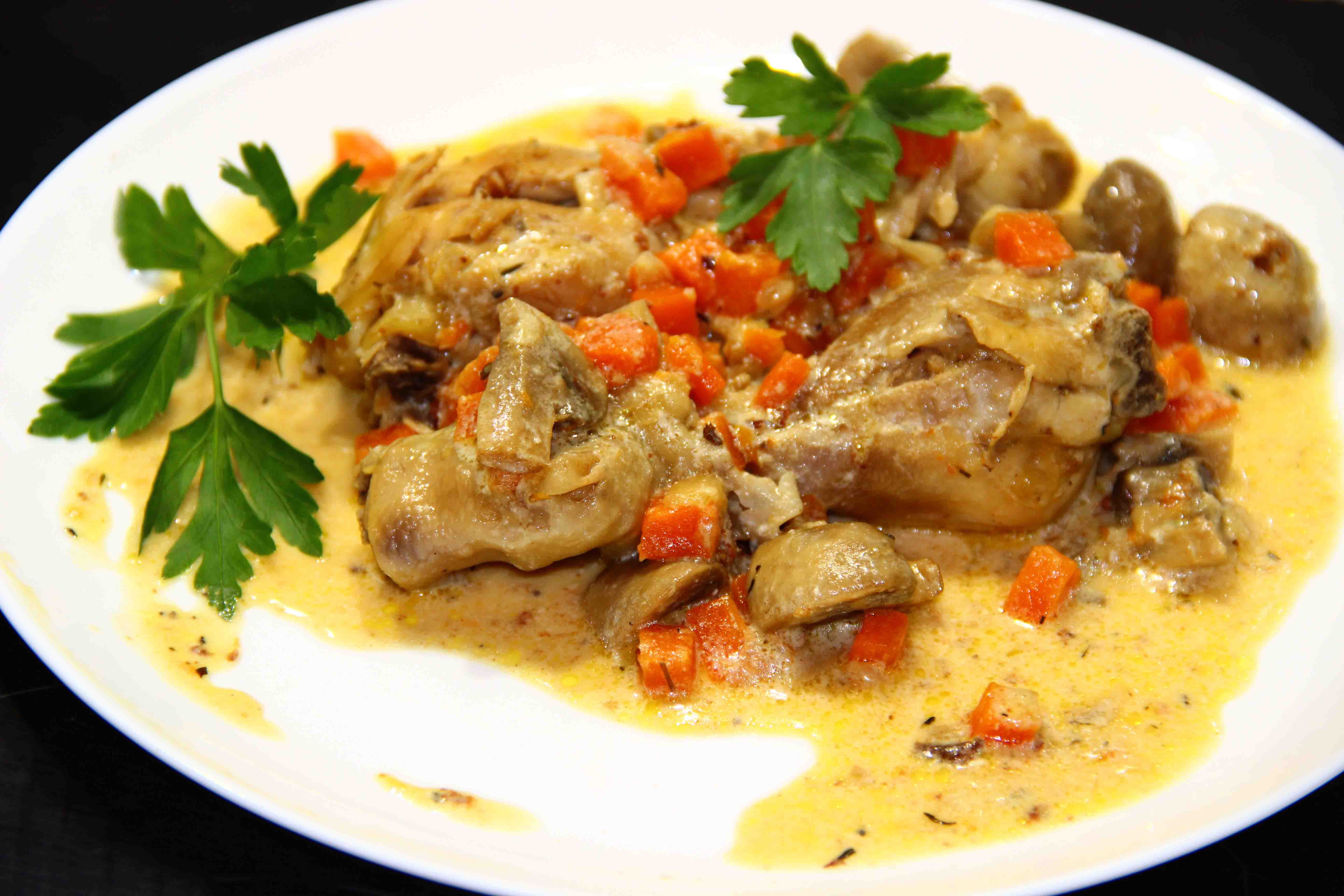 Курица тушеная в вине