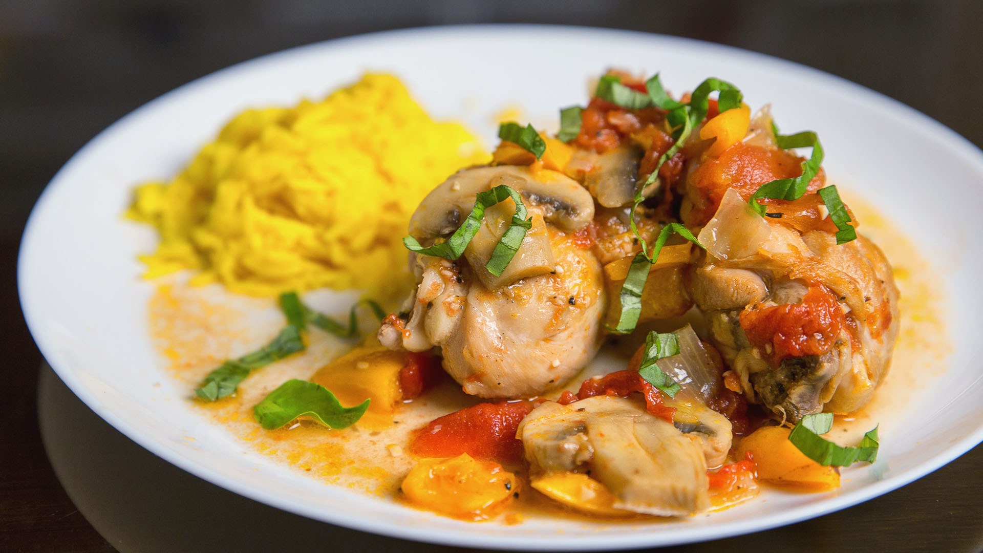 Гуляш из курицы с грибами с подливкой
