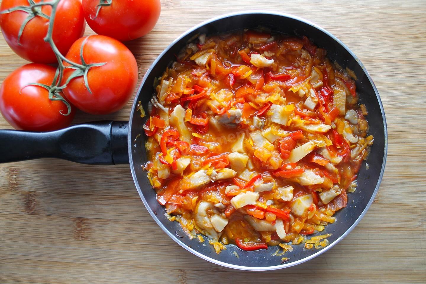 Грибы с помидорами жареные