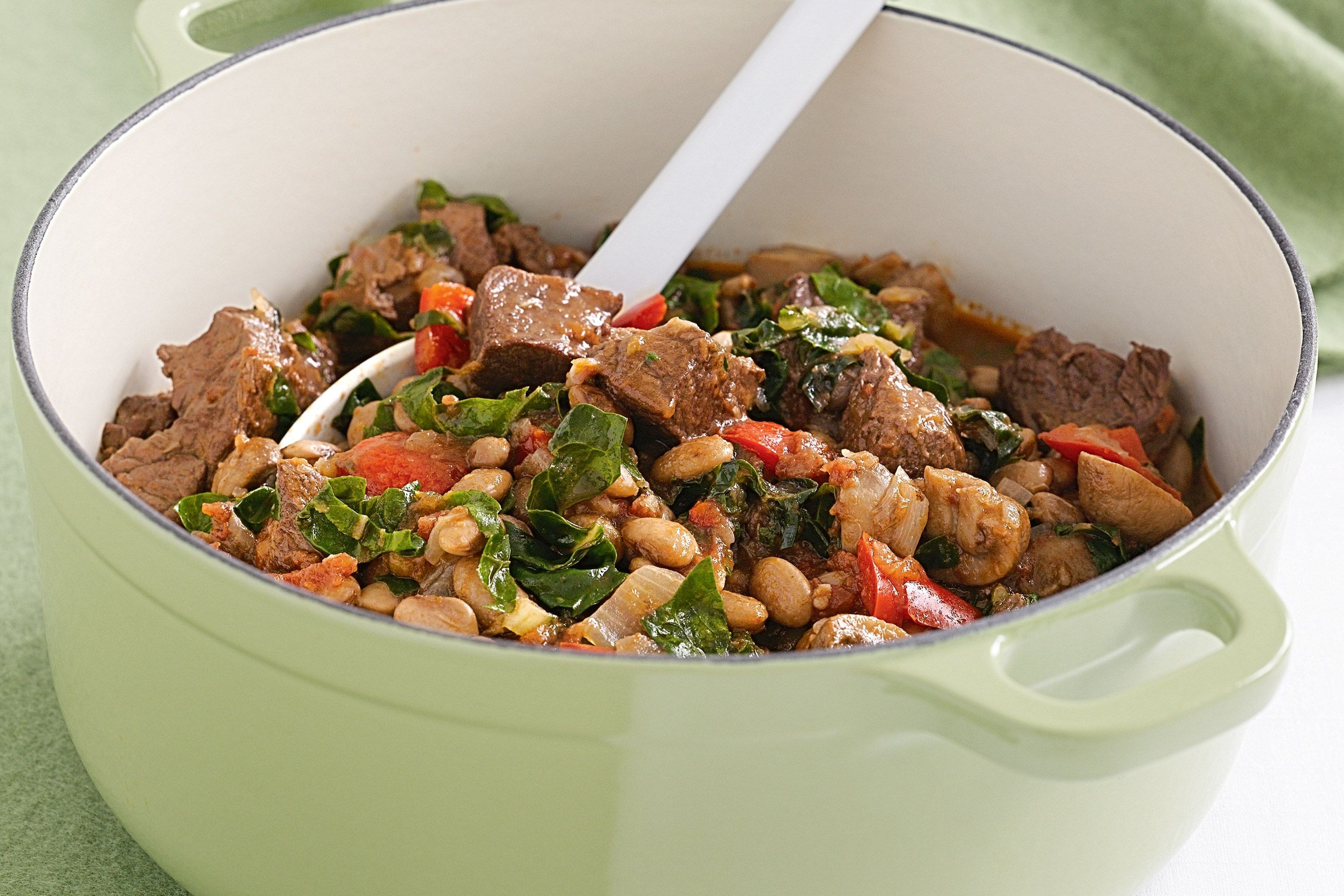 Говядина с фасолью и грибами