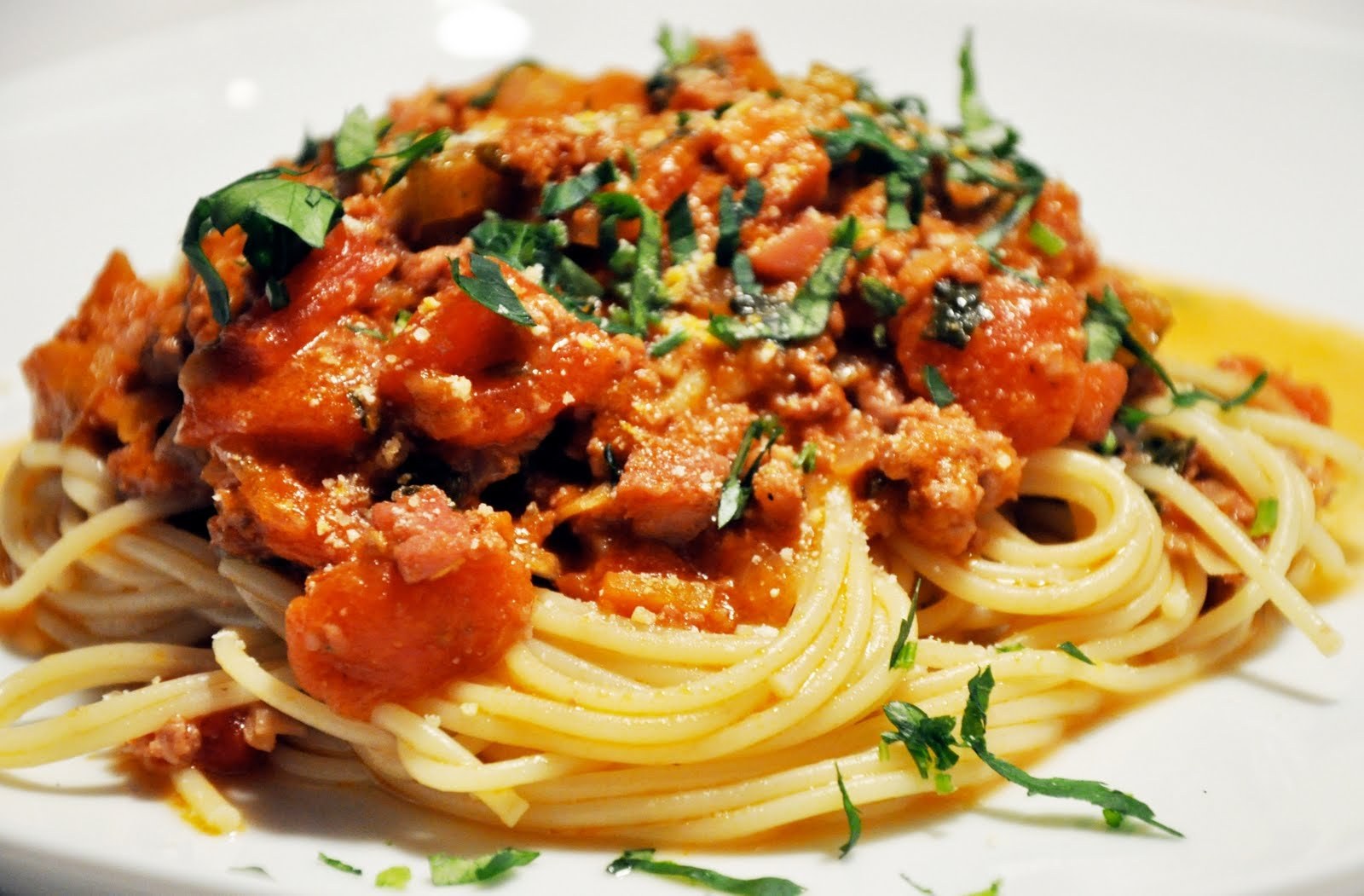 Спагетти с фаршем и томатной пастой