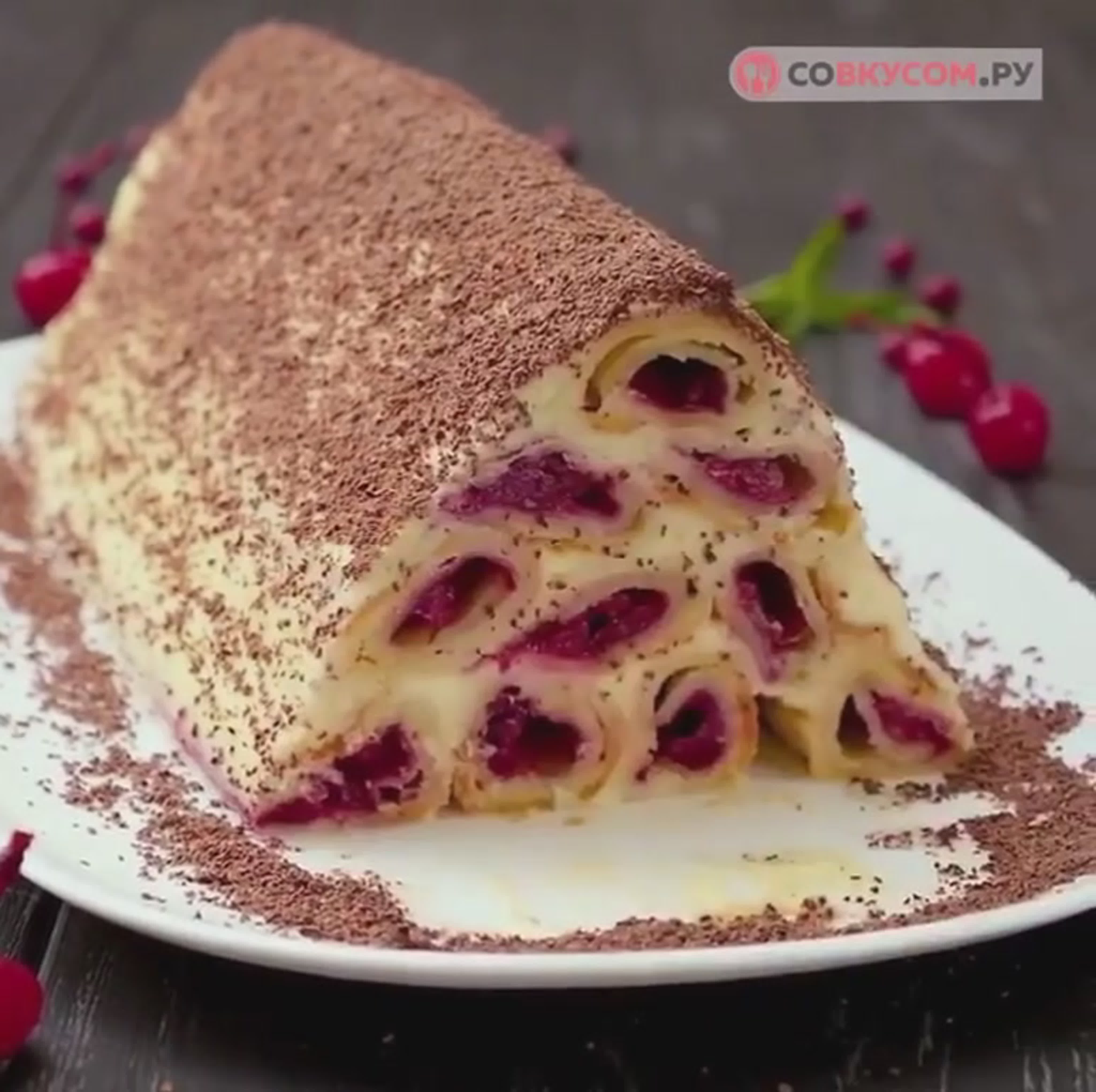 Торт с вишней и сметанным