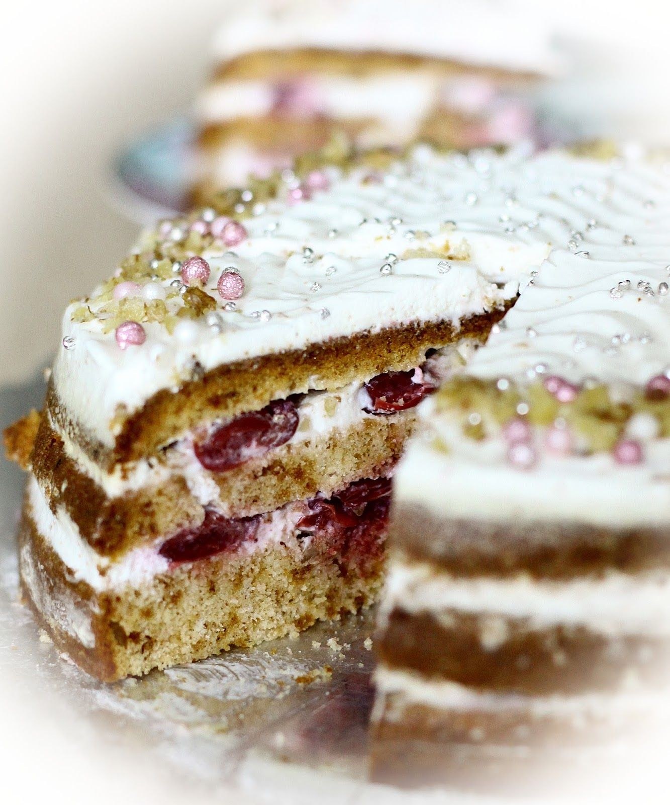 Торт бисквитный маковый с вишней