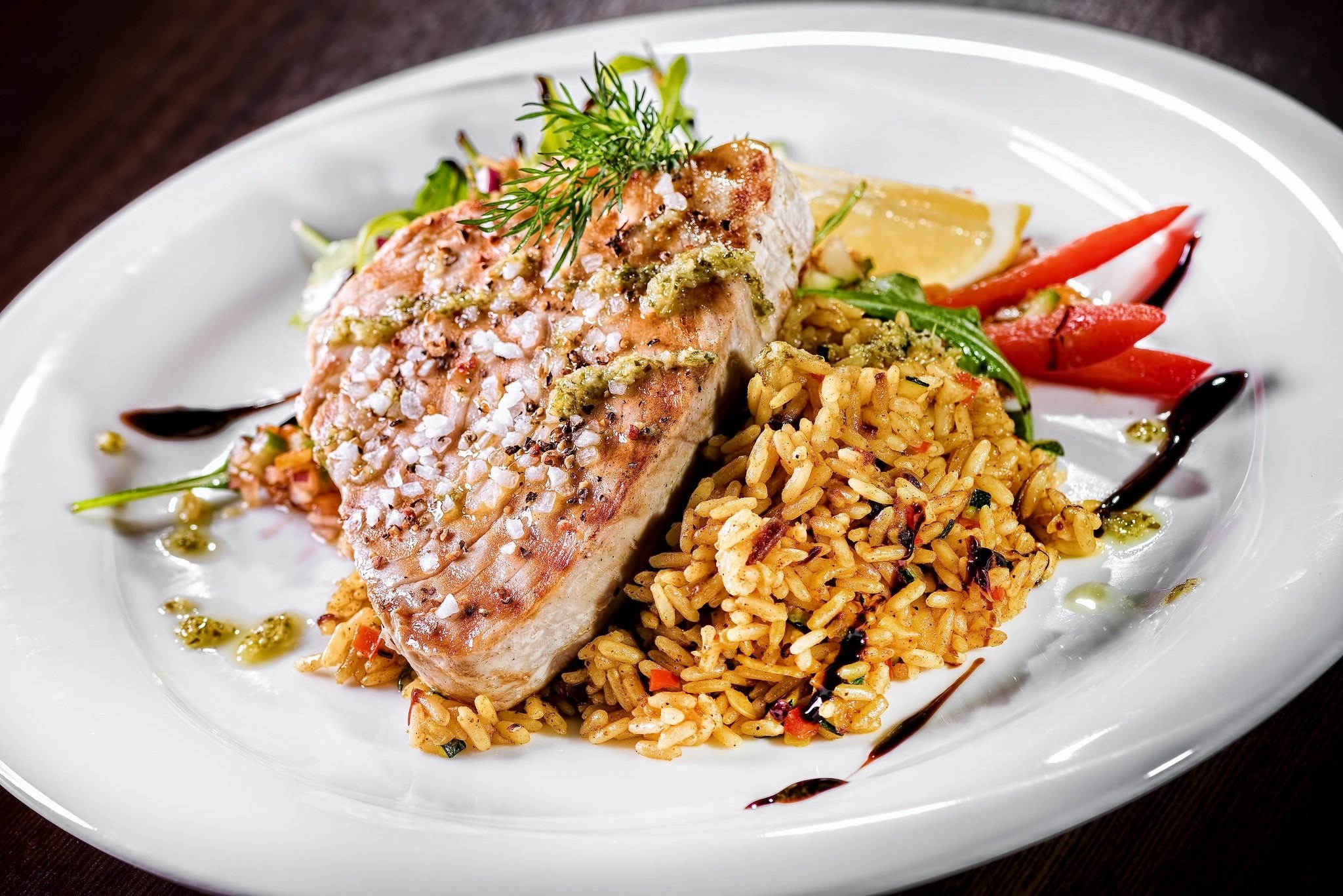 Фото рис с рыбой на тарелке