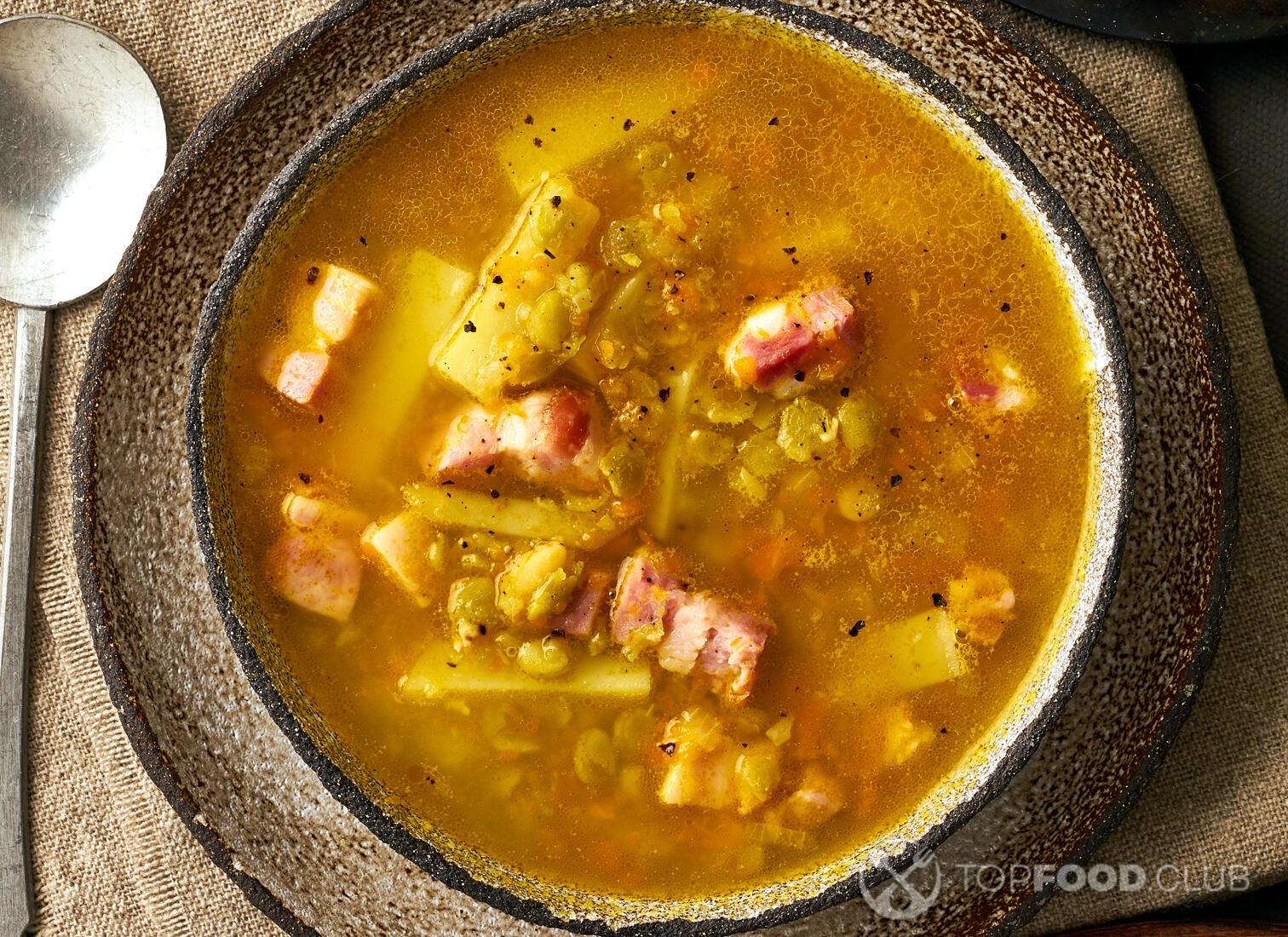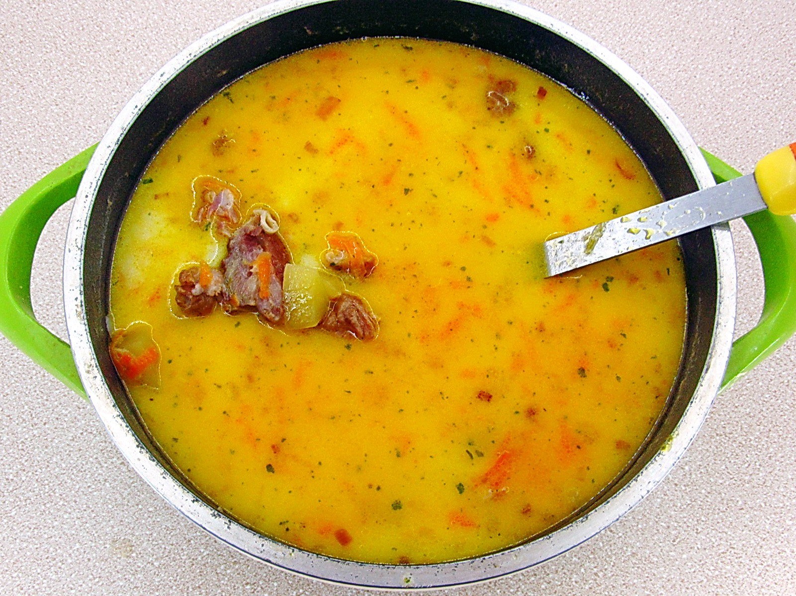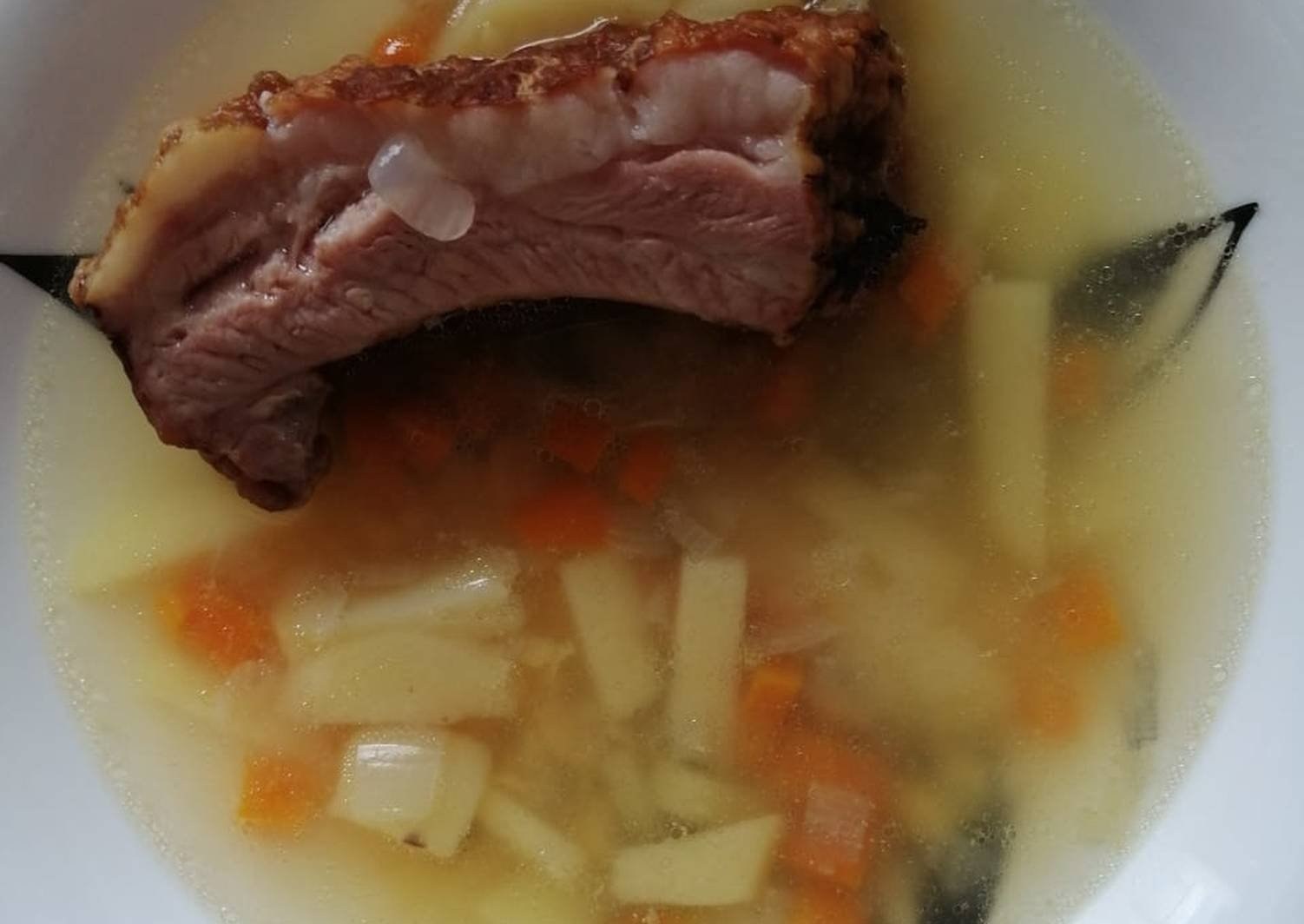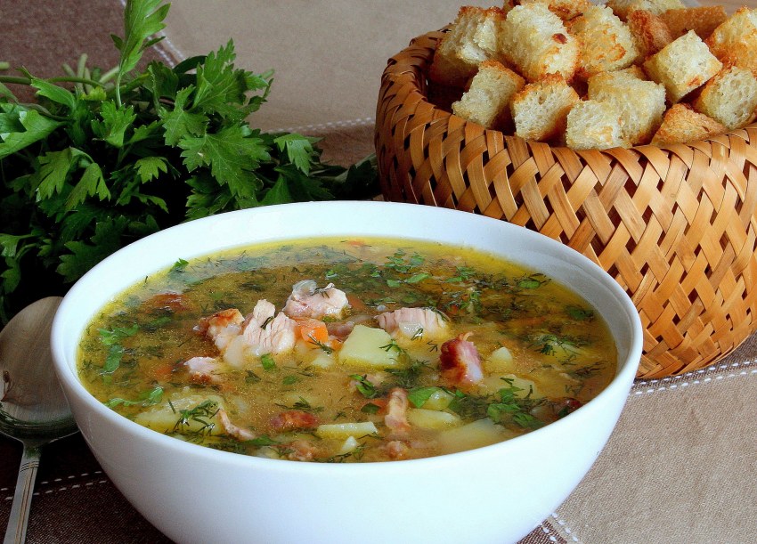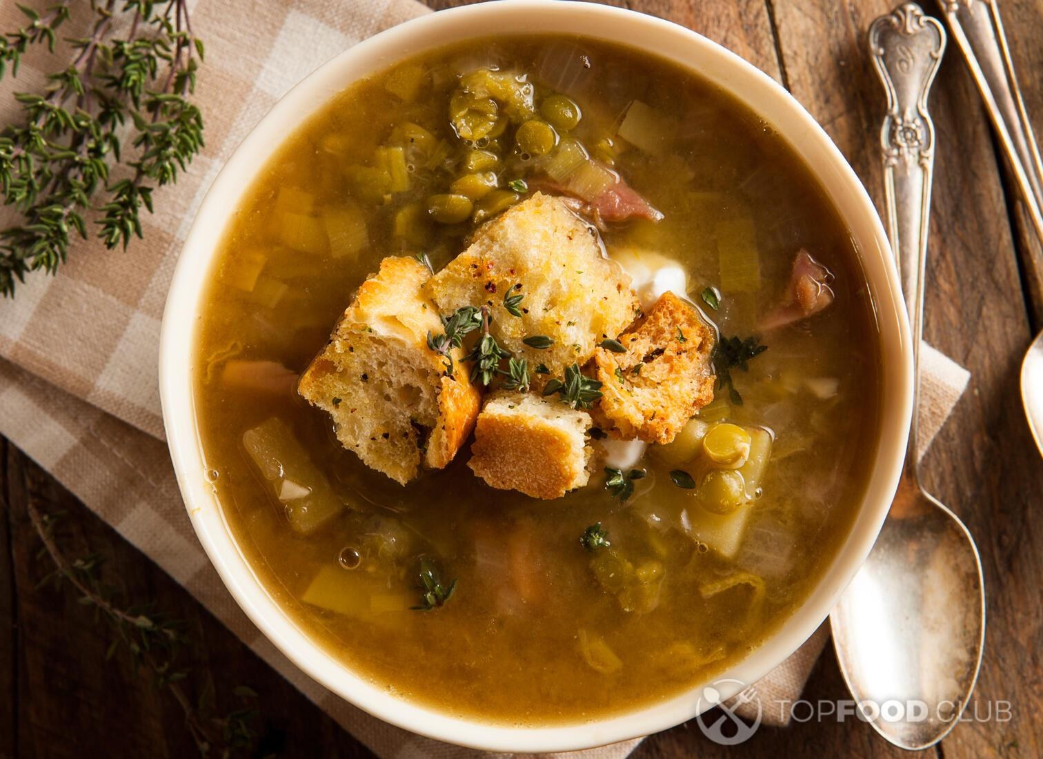 Сырный суп с копчеными ребрышками шампиньонами и черри