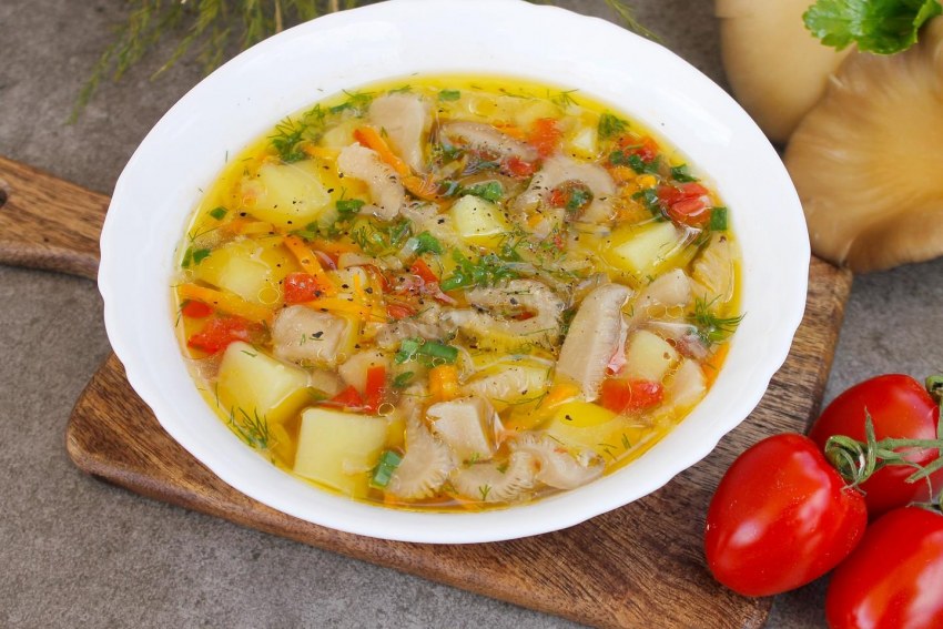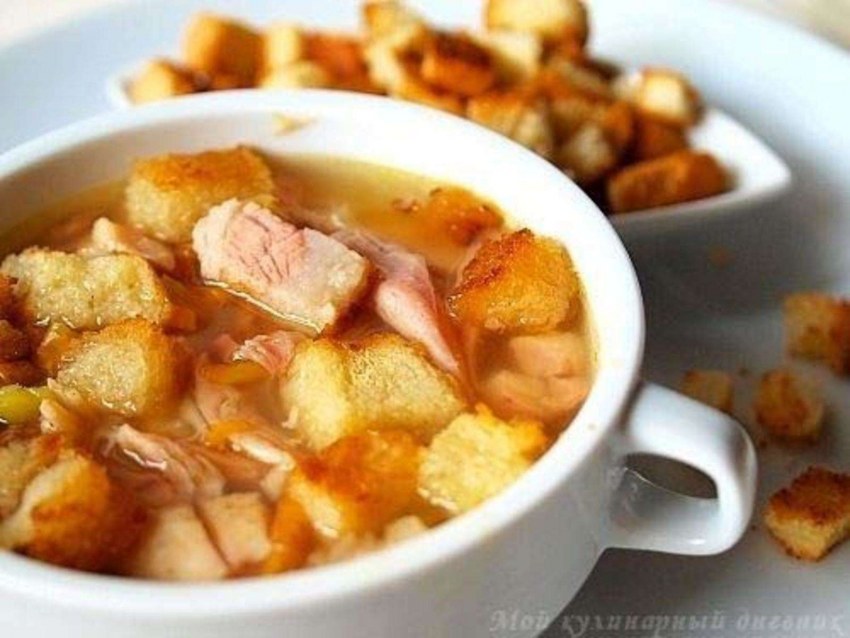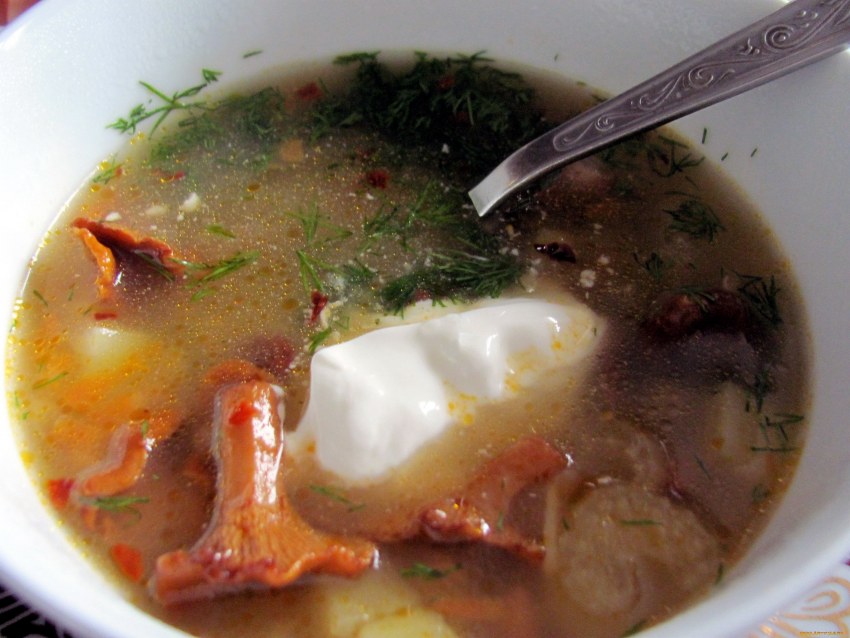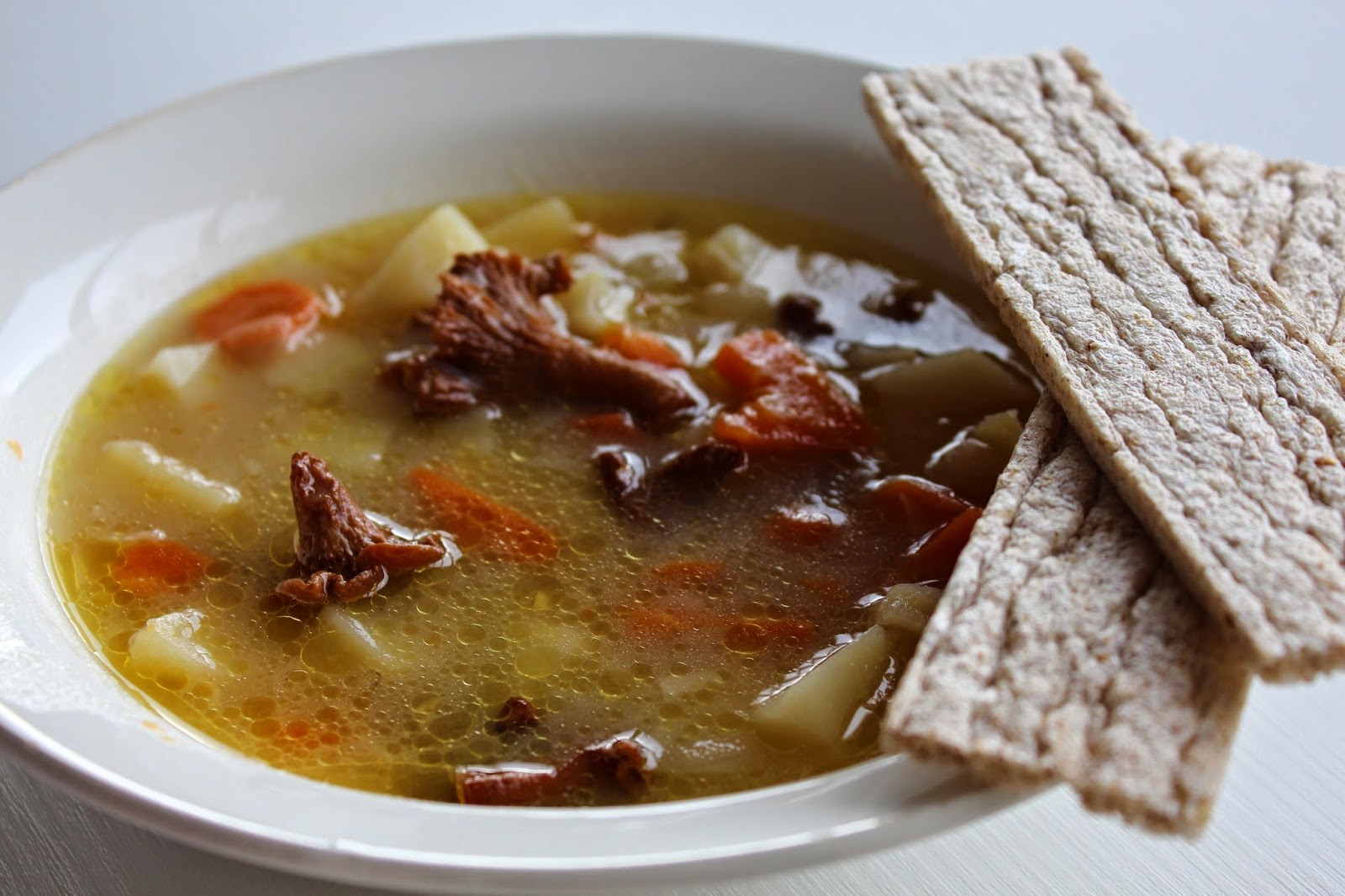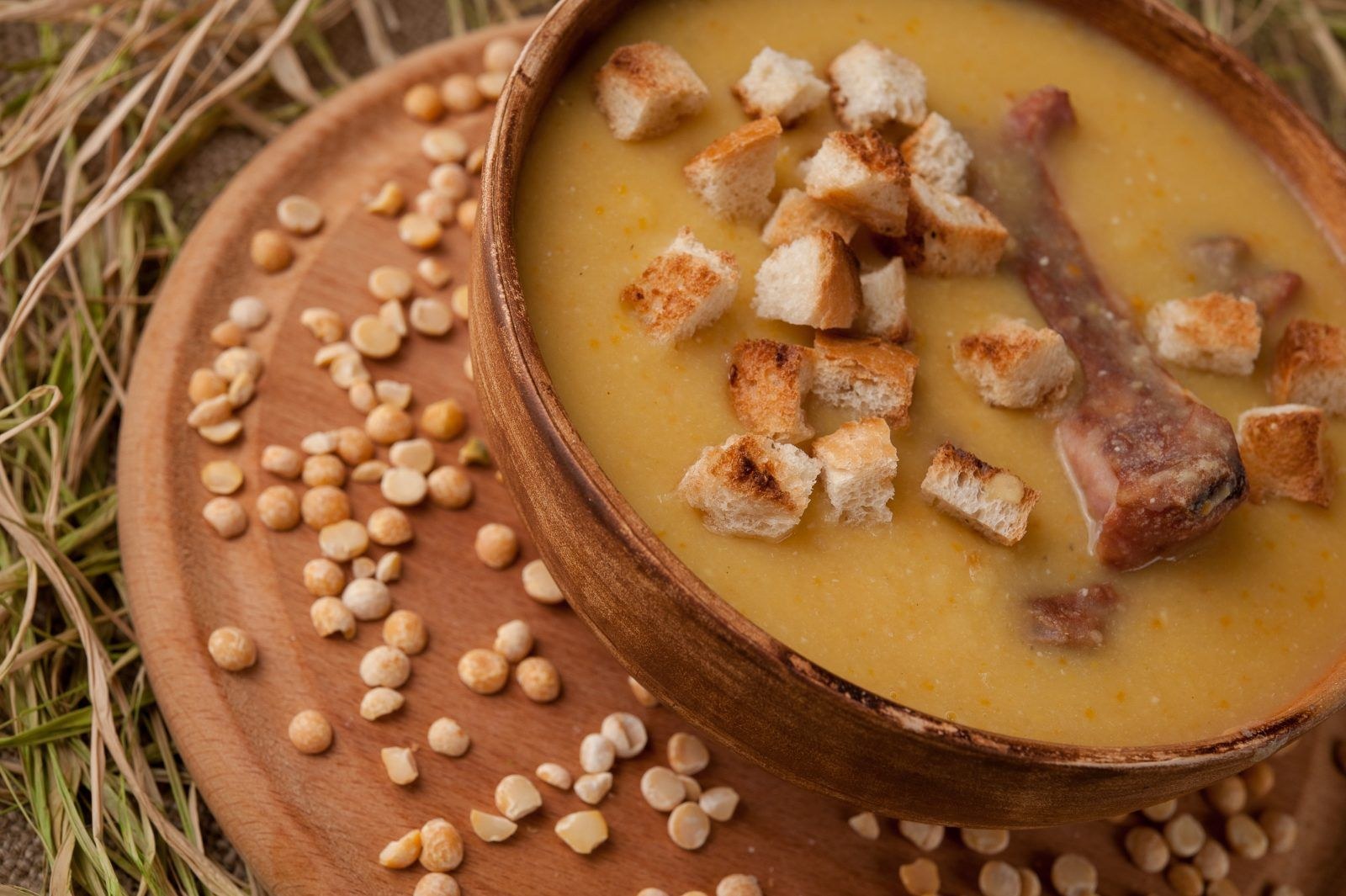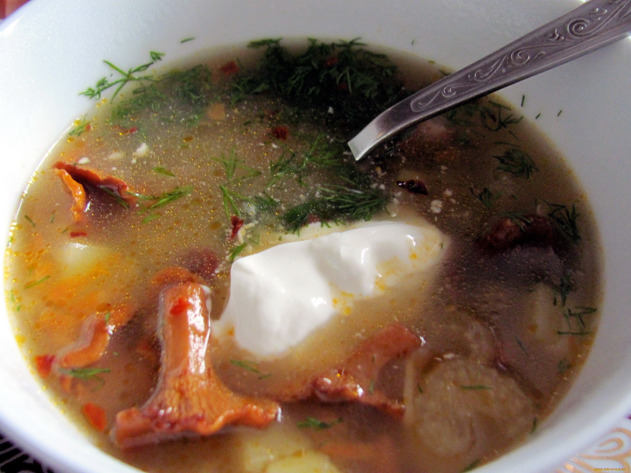 Сырный суп с копчеными ребрышками шампиньонами и черри