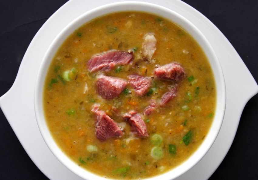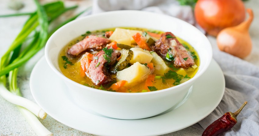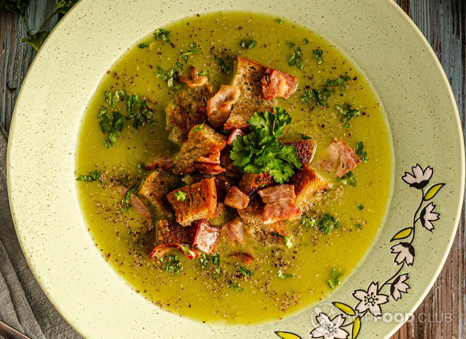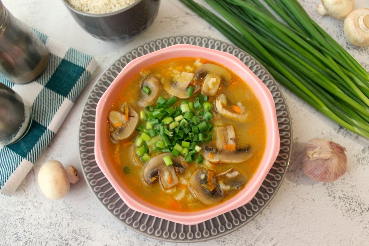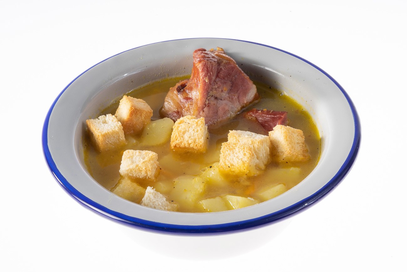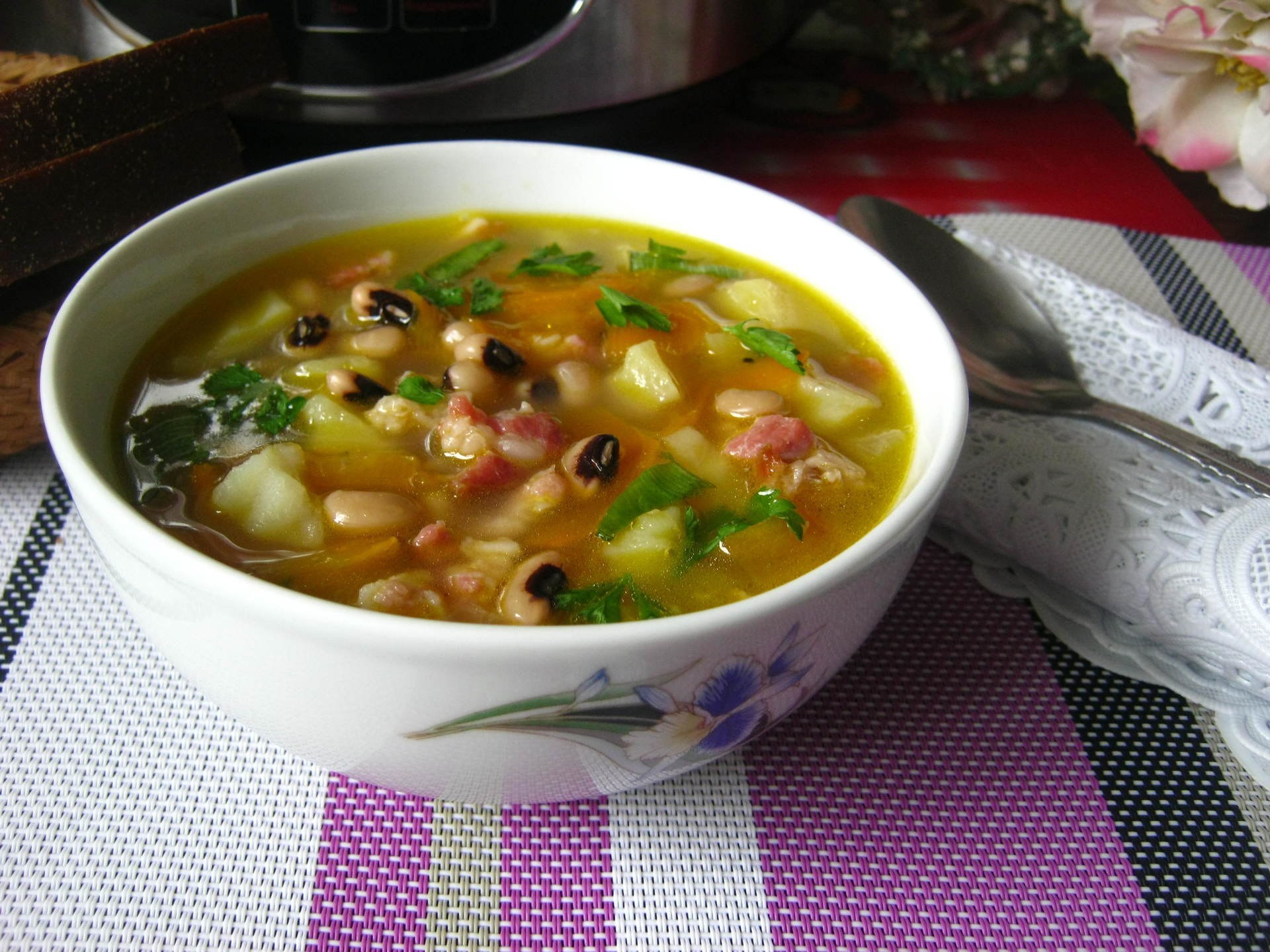 Сырный суп с копчеными ребрышками шампиньонами и черри