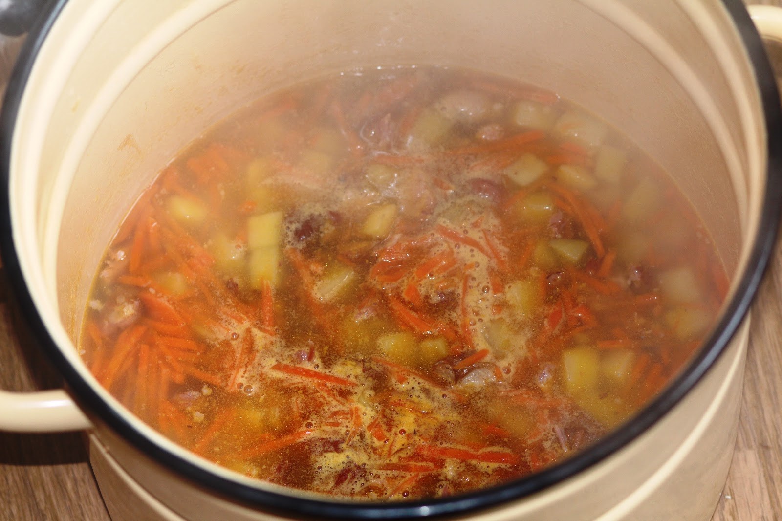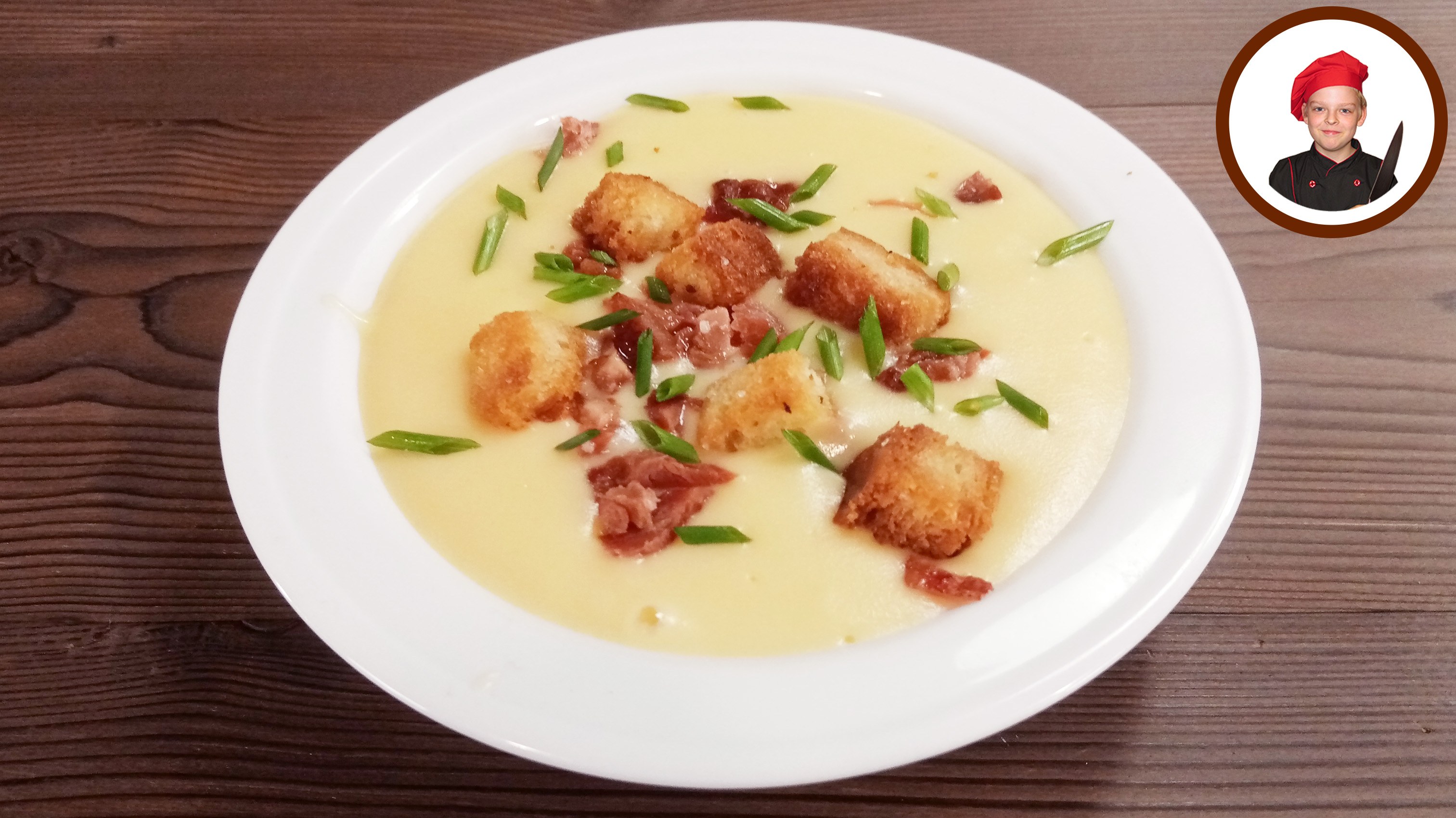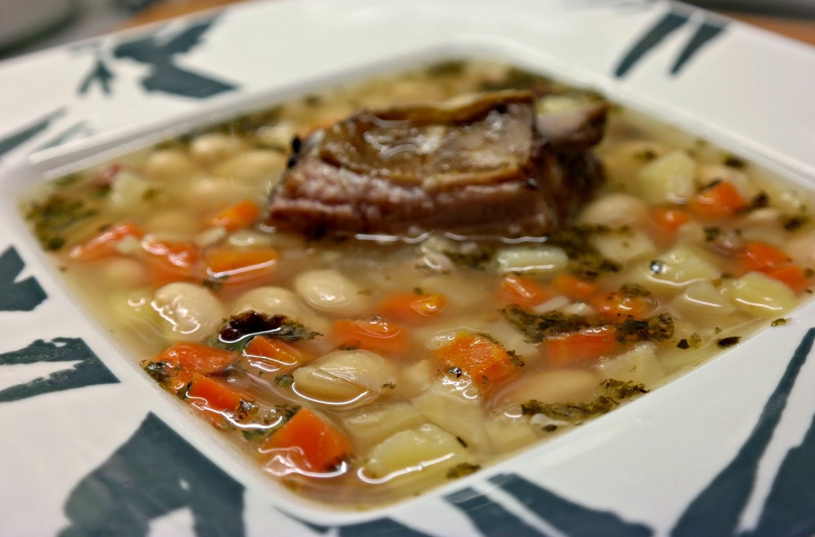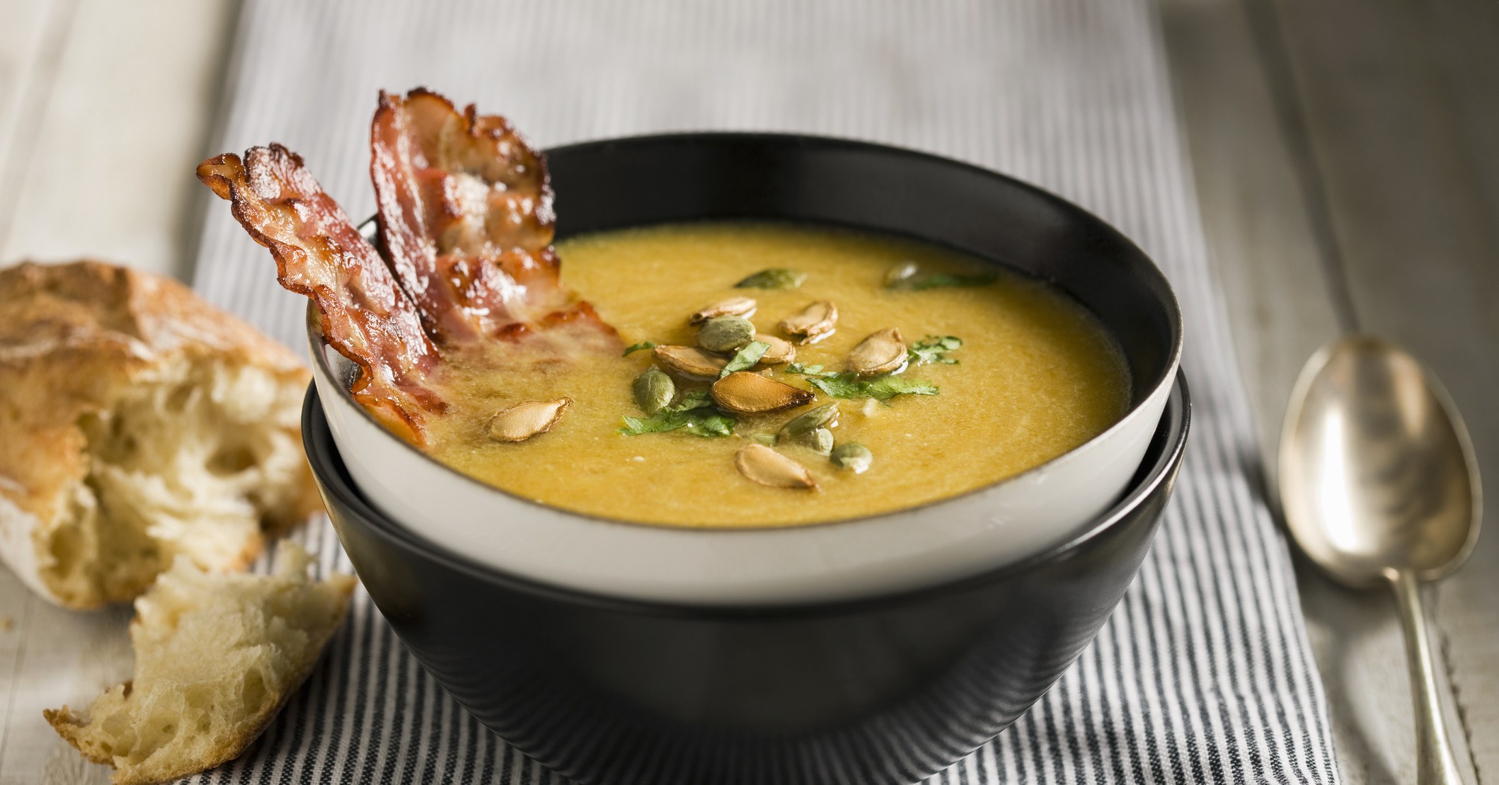Сырный суп с копчеными ребрышками шампиньонами и черри