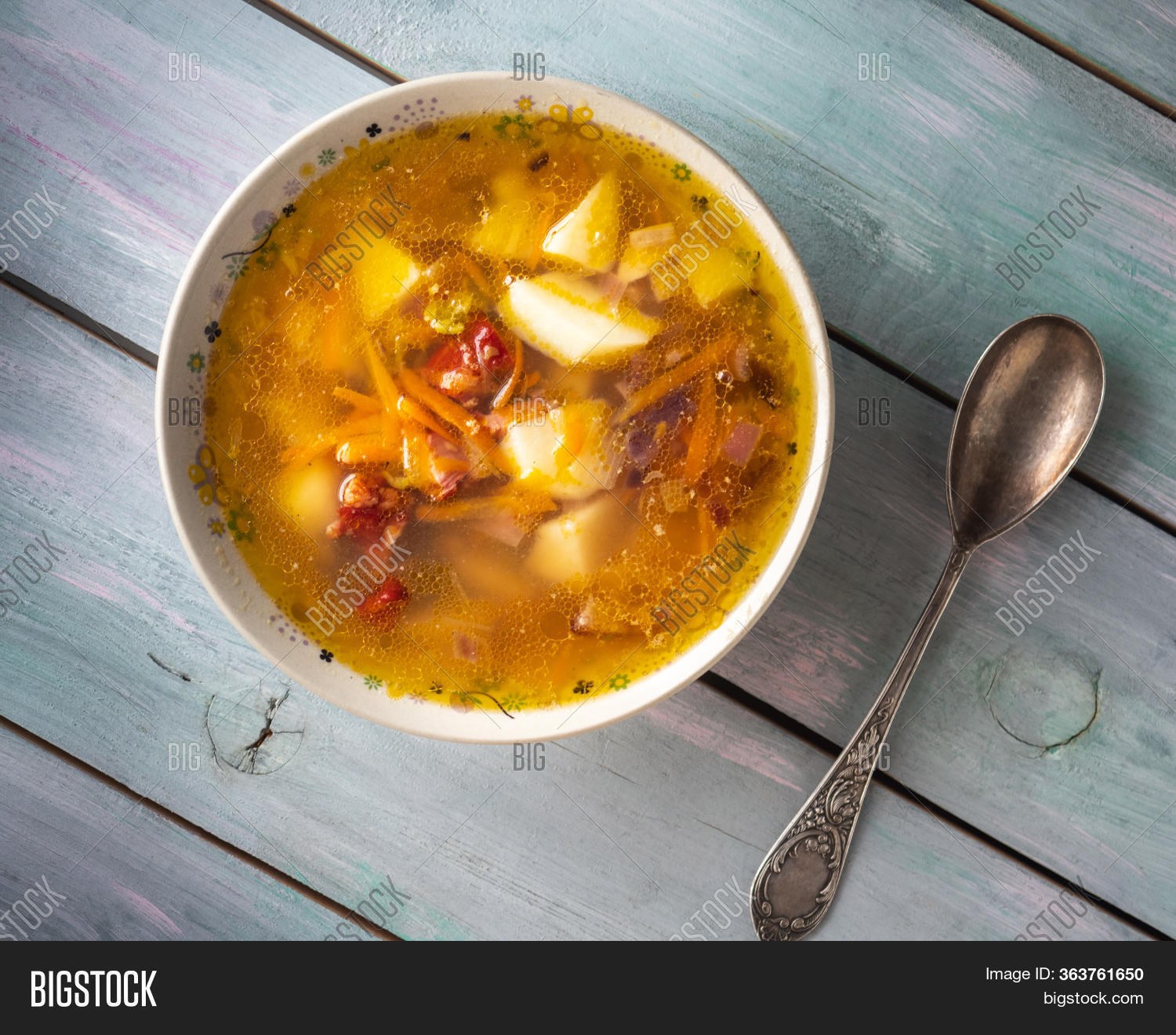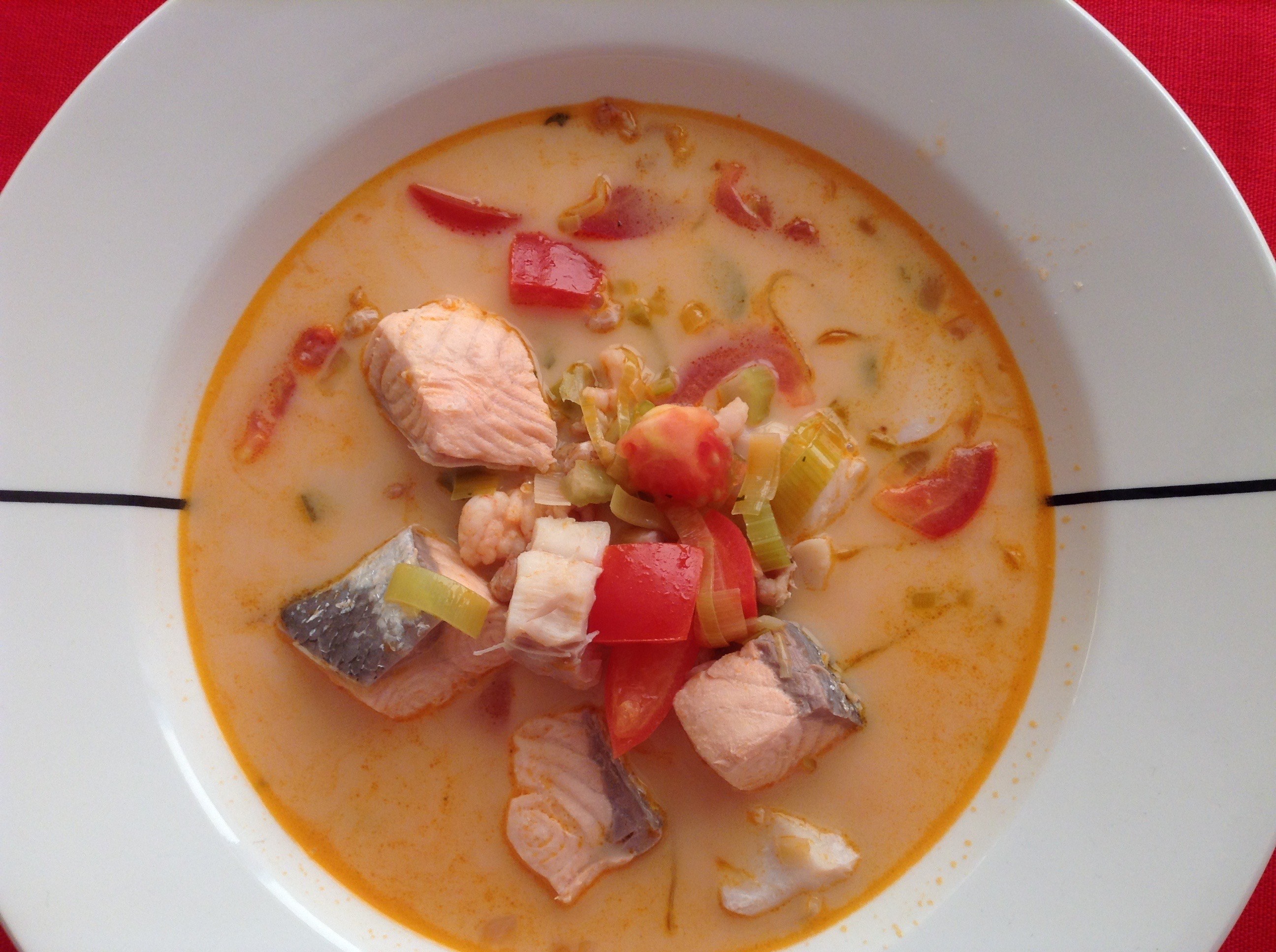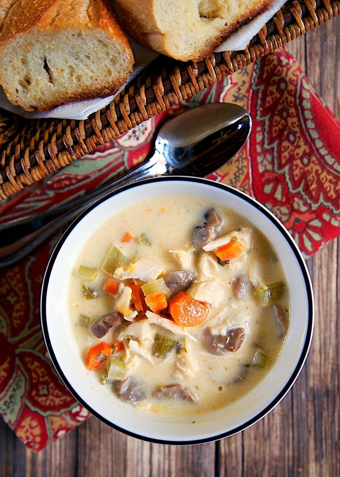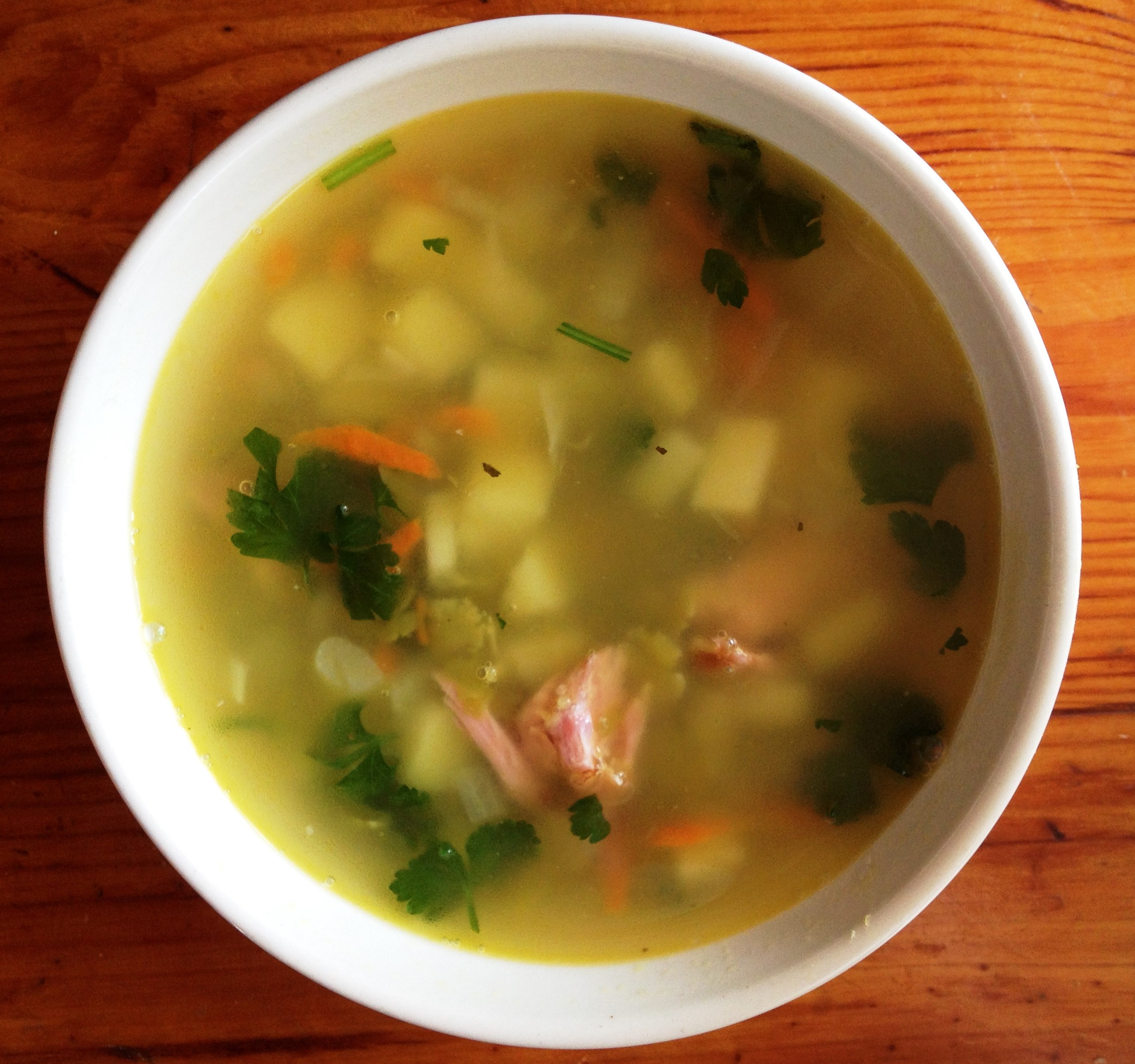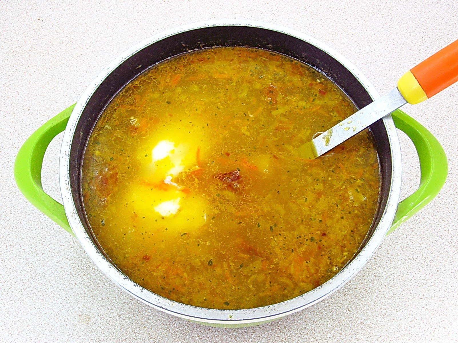 Сырный суп с копчеными ребрышками шампиньонами и черри