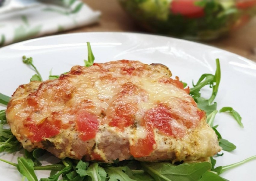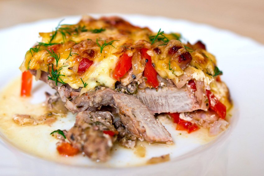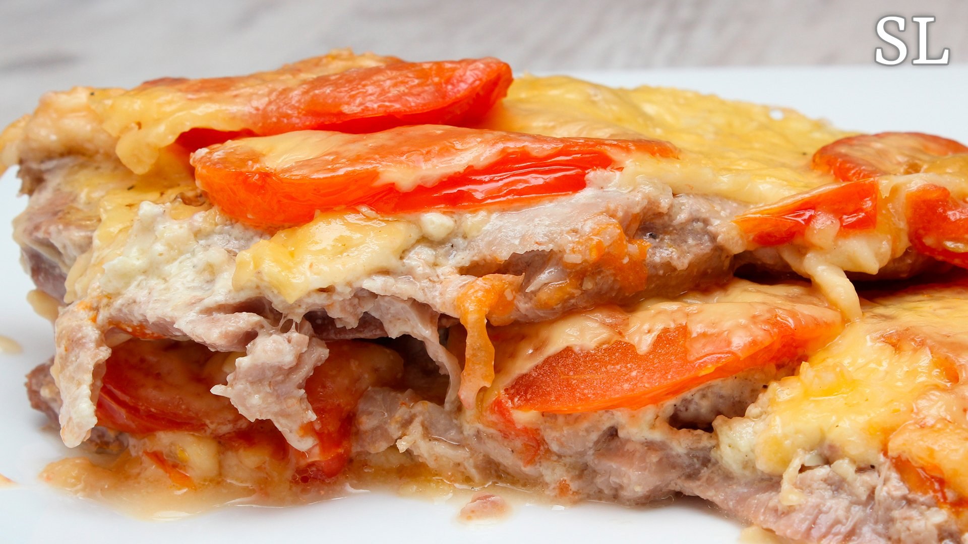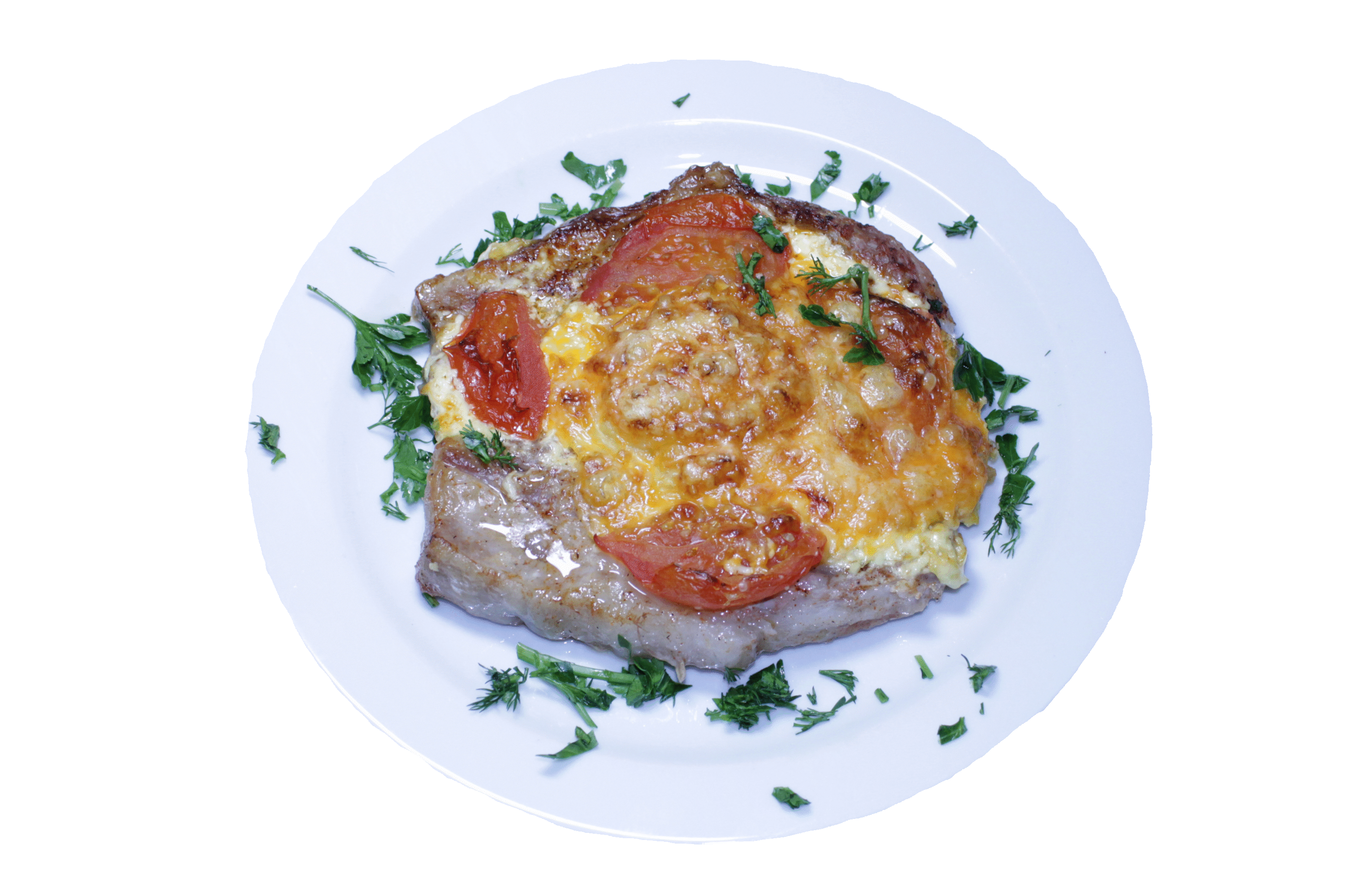 Отбивные из свинины в духовке с помидорами и сыром и грибами