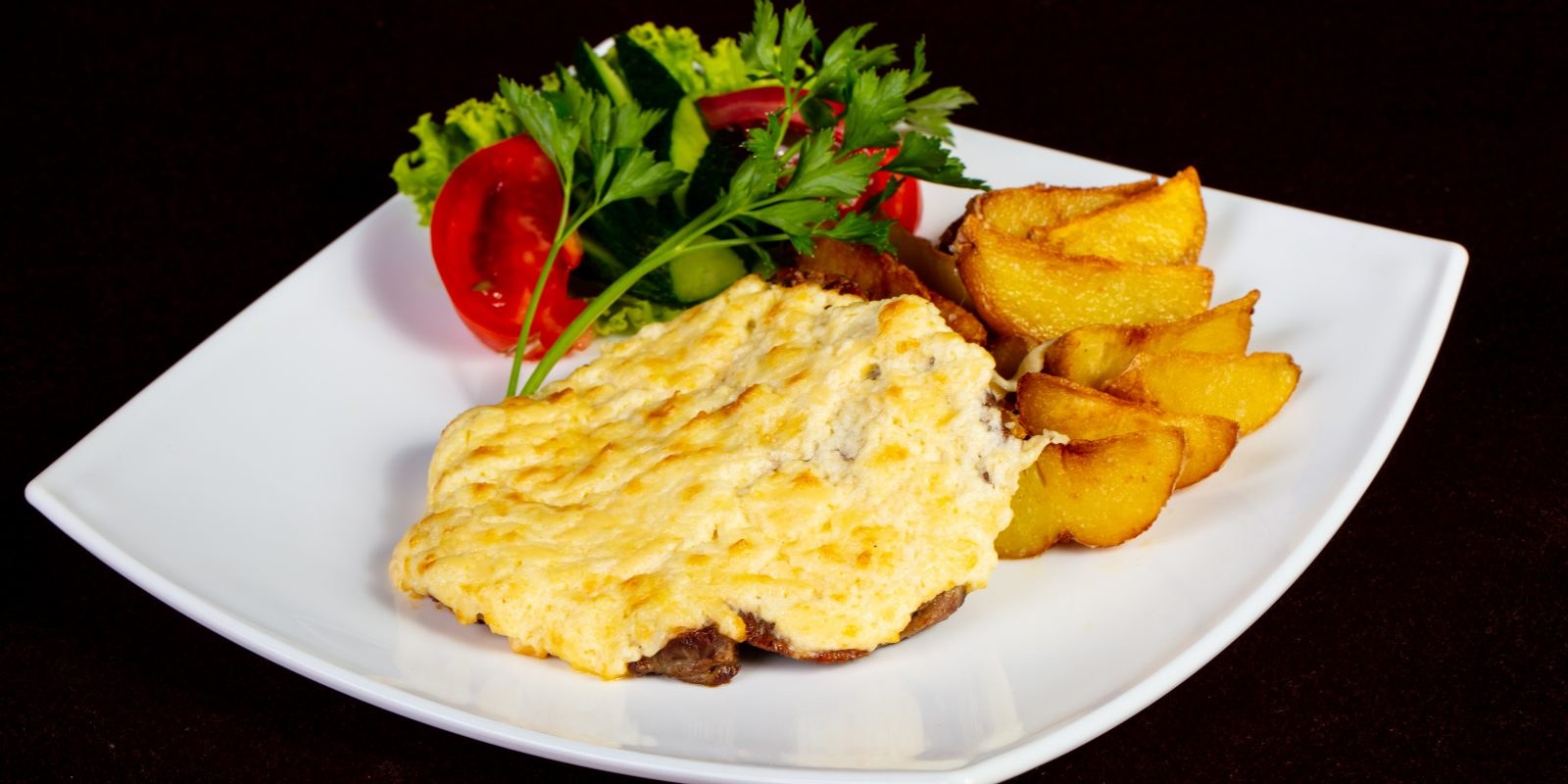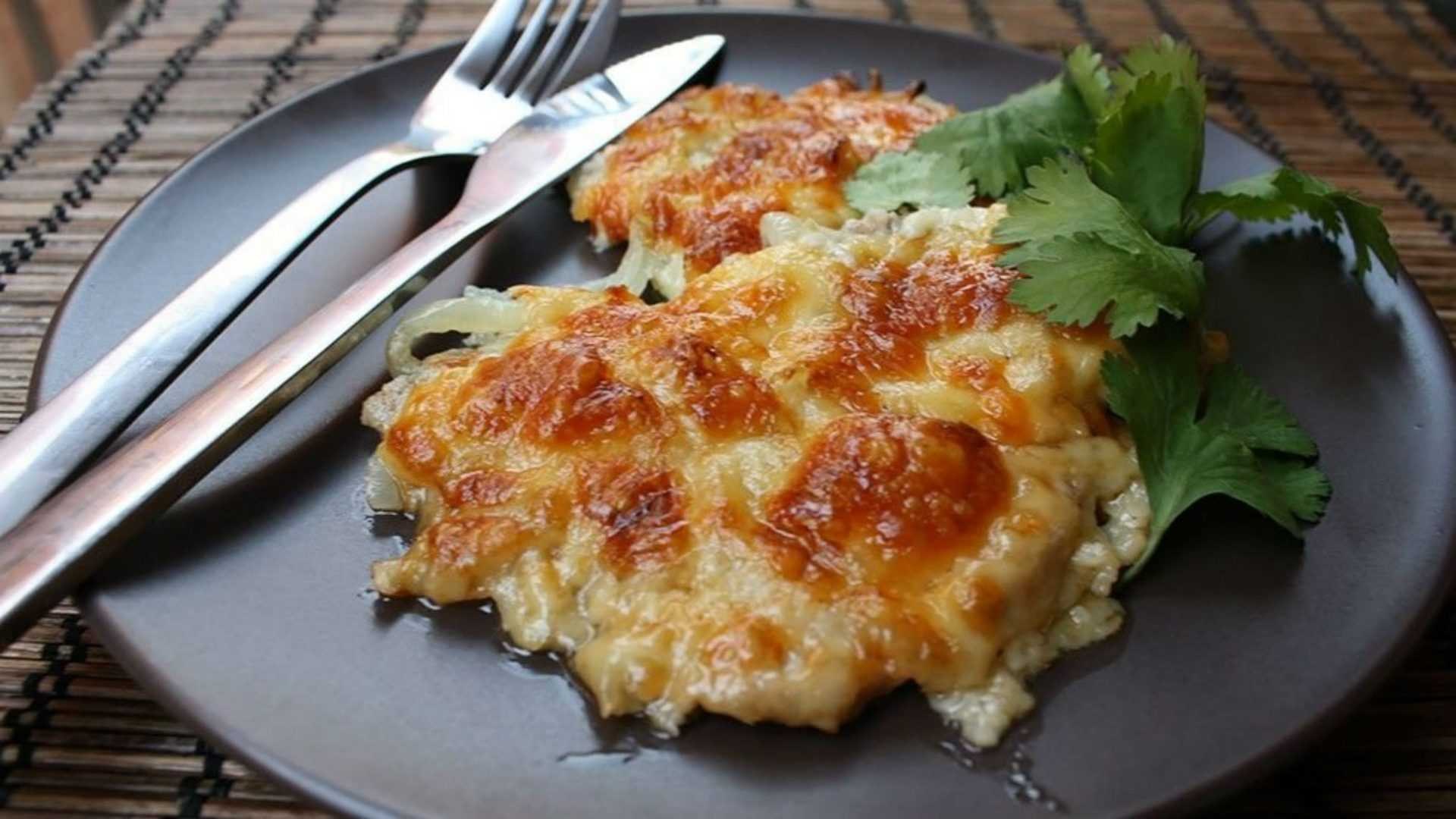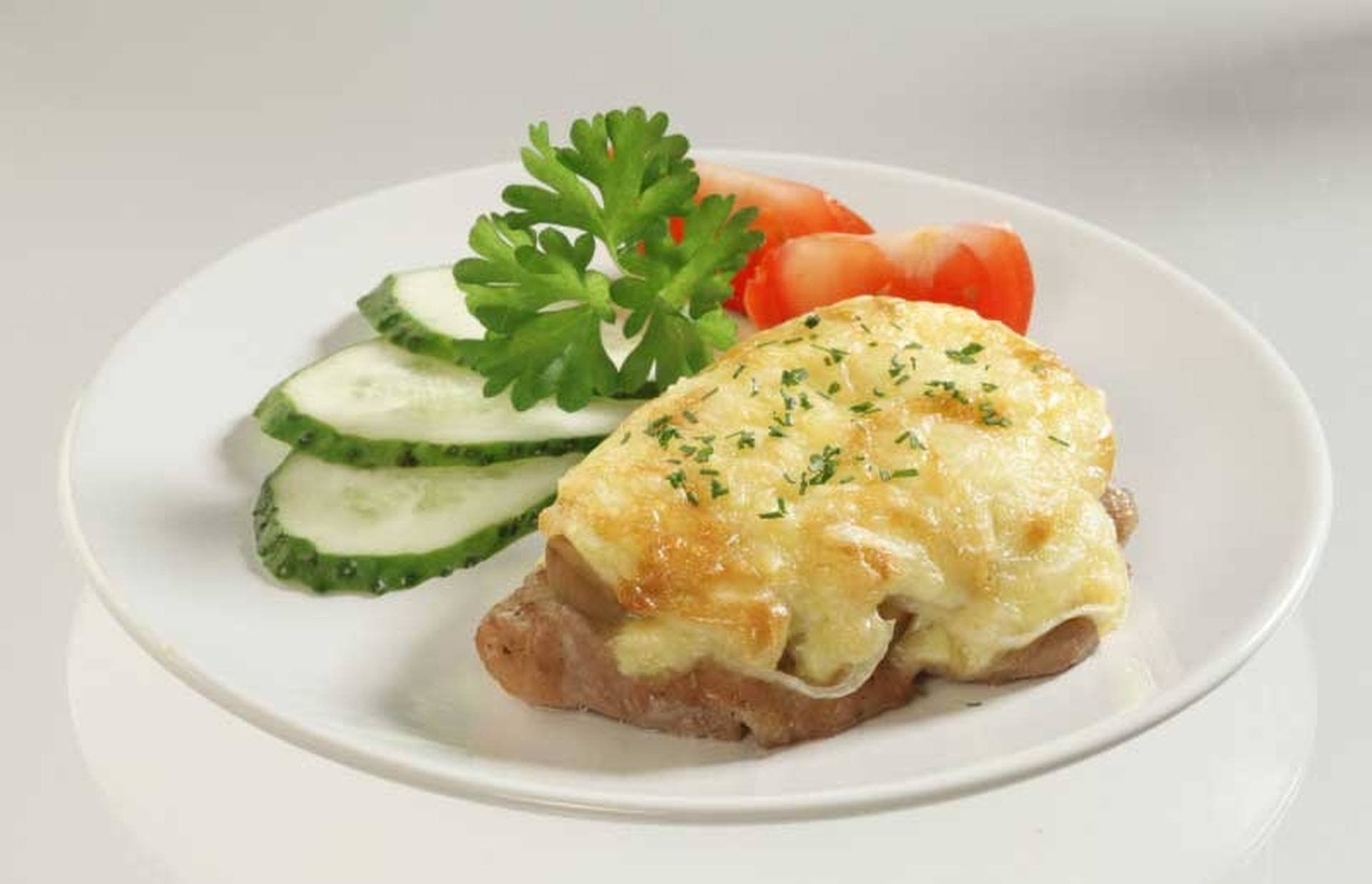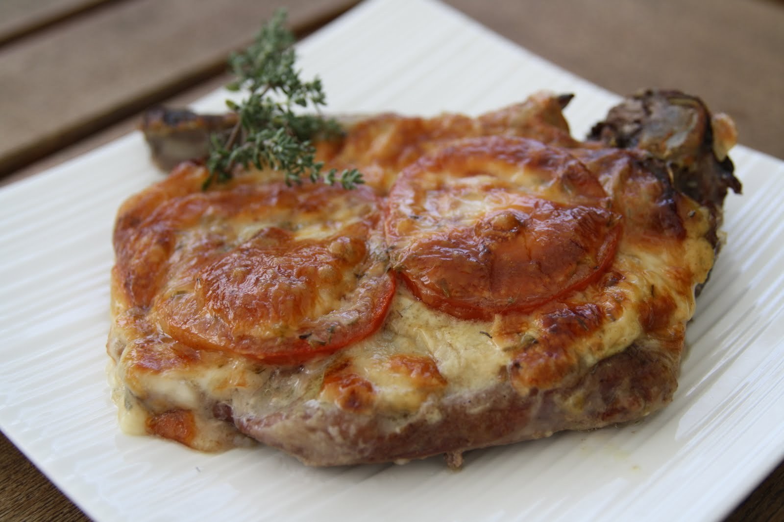 Отбивные из свинины в духовке с помидорами и сыром и грибами