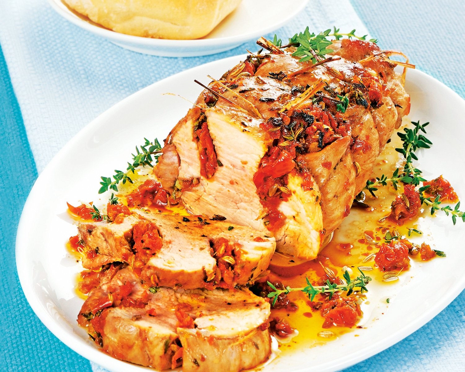 Свинина гармошка запеченная в духовке с помидорами и сыром