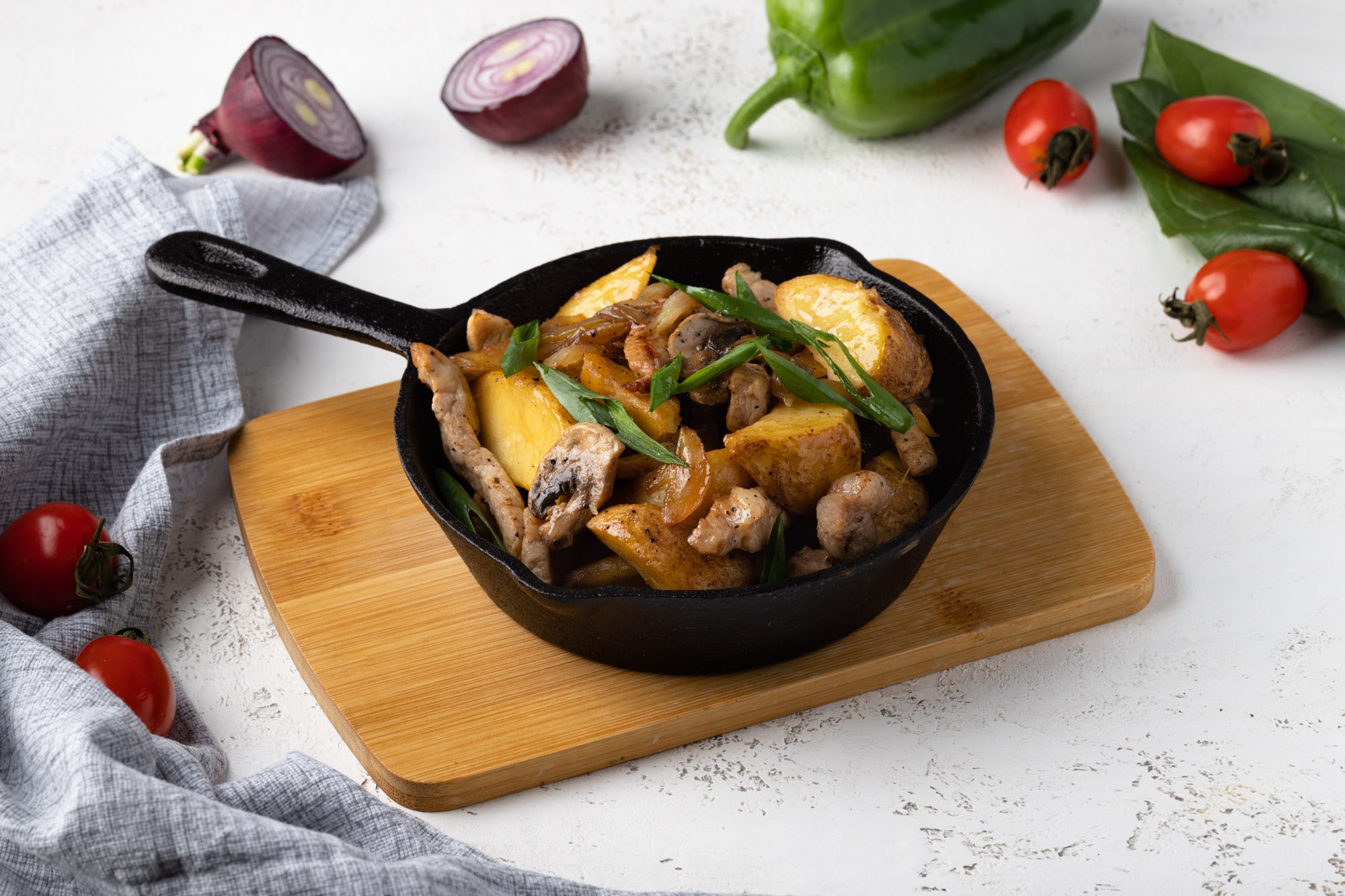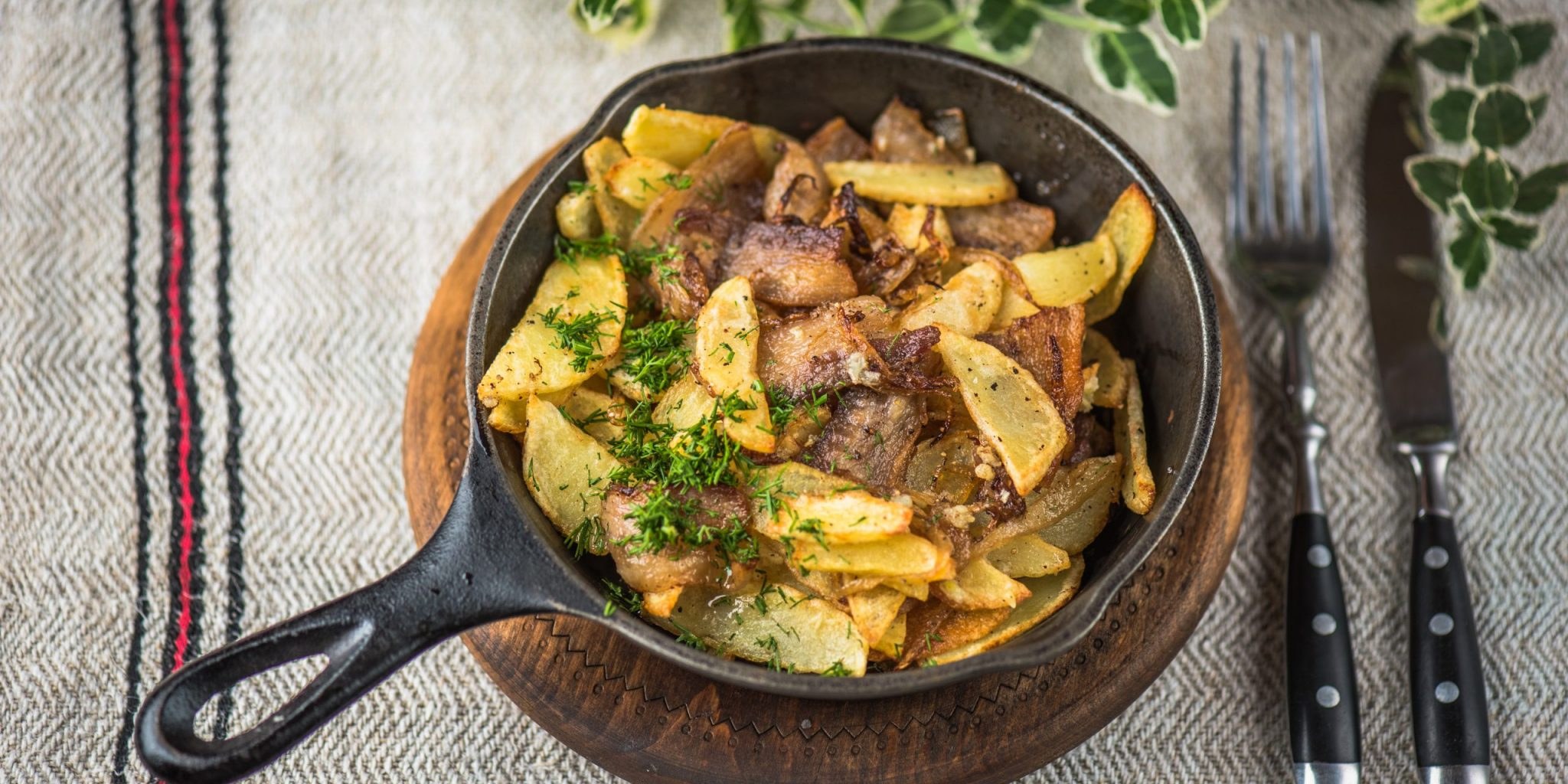 Картошка с мясом и грибами на сковороде