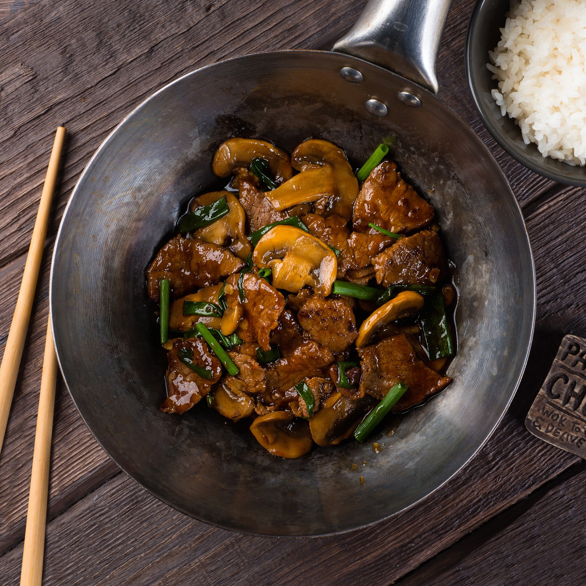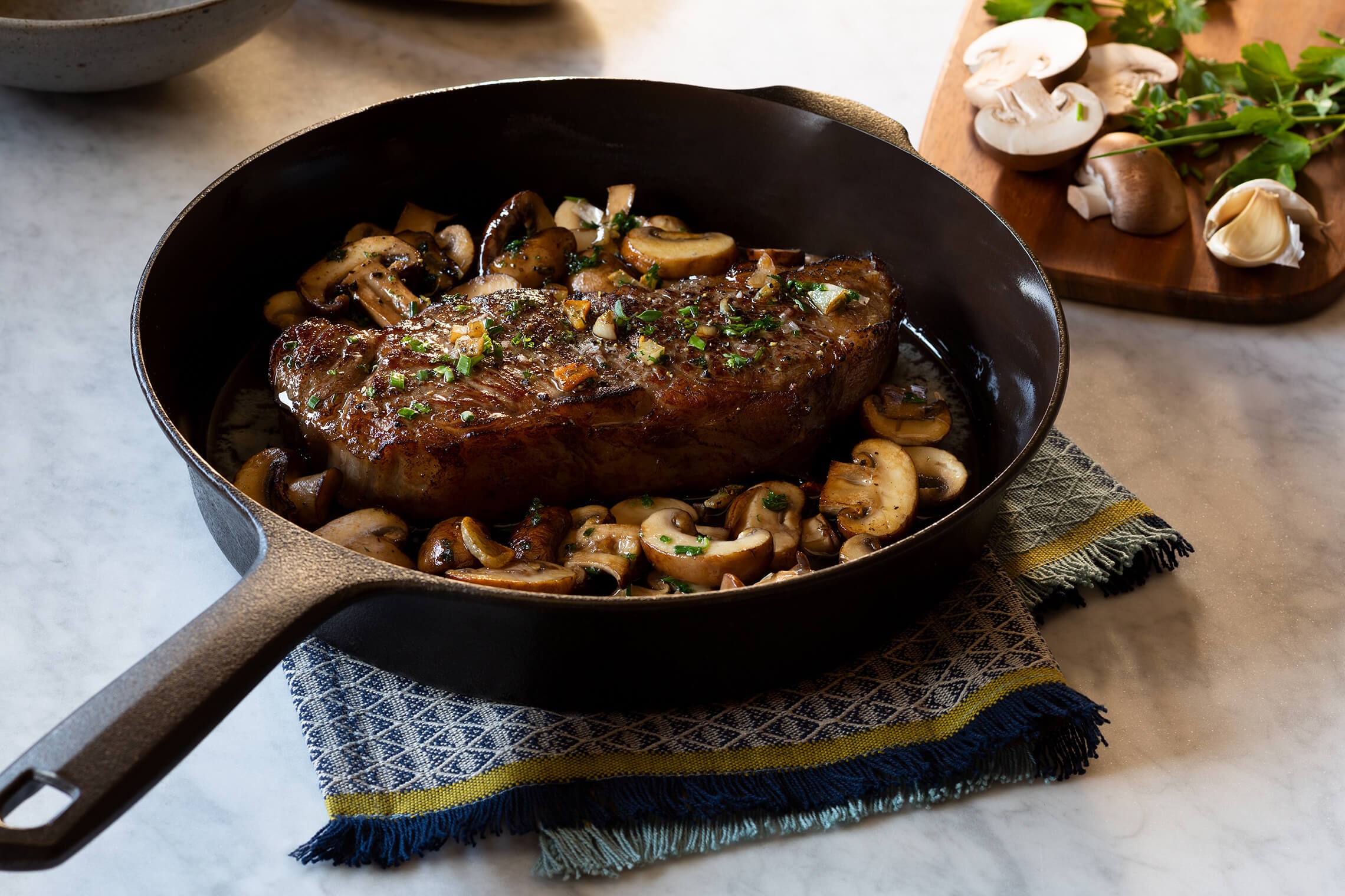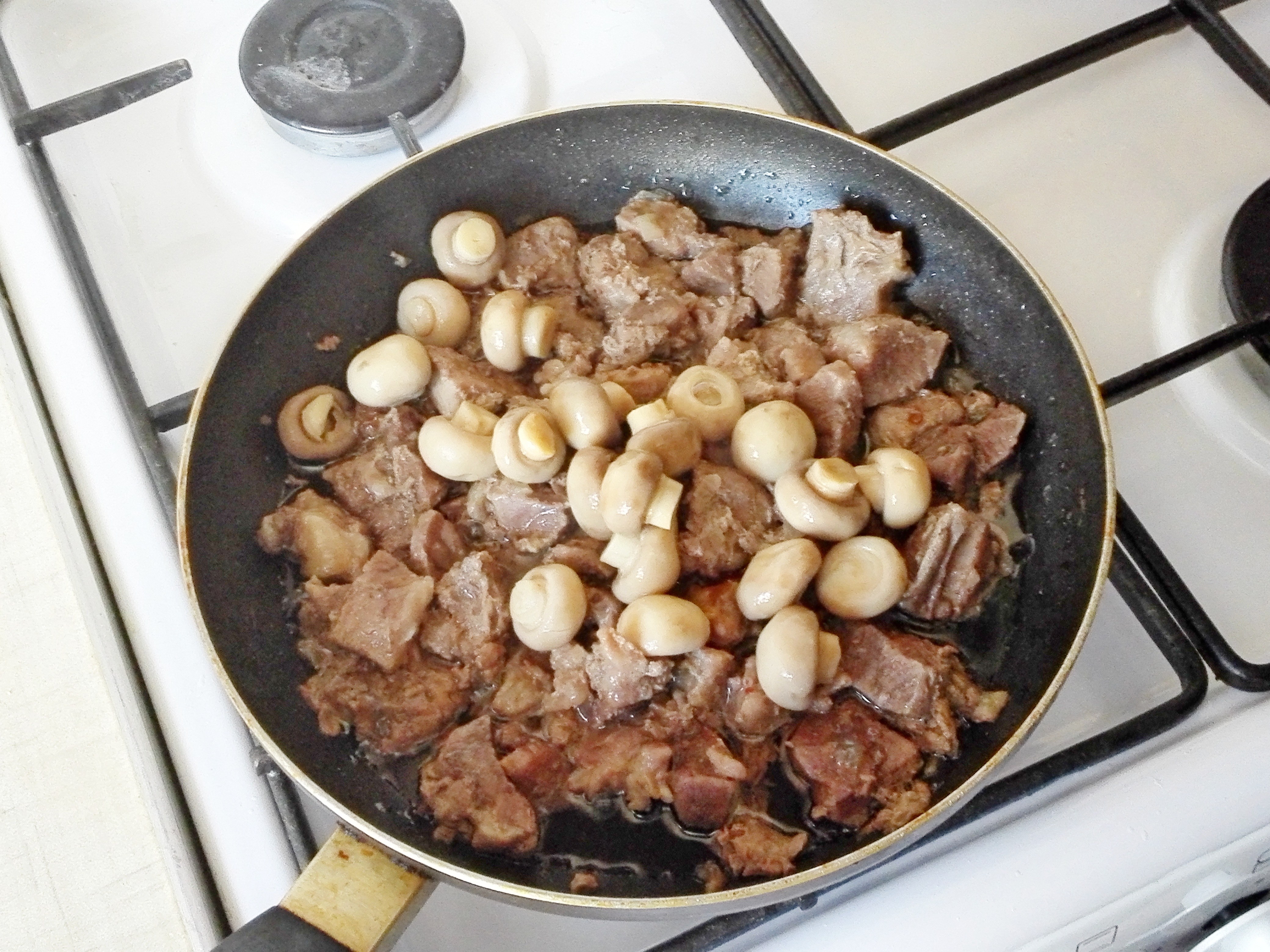 Говядина с шампиньонами на сковороде