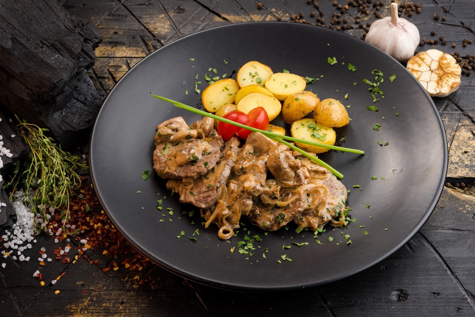 Бефстроганов с картофелем