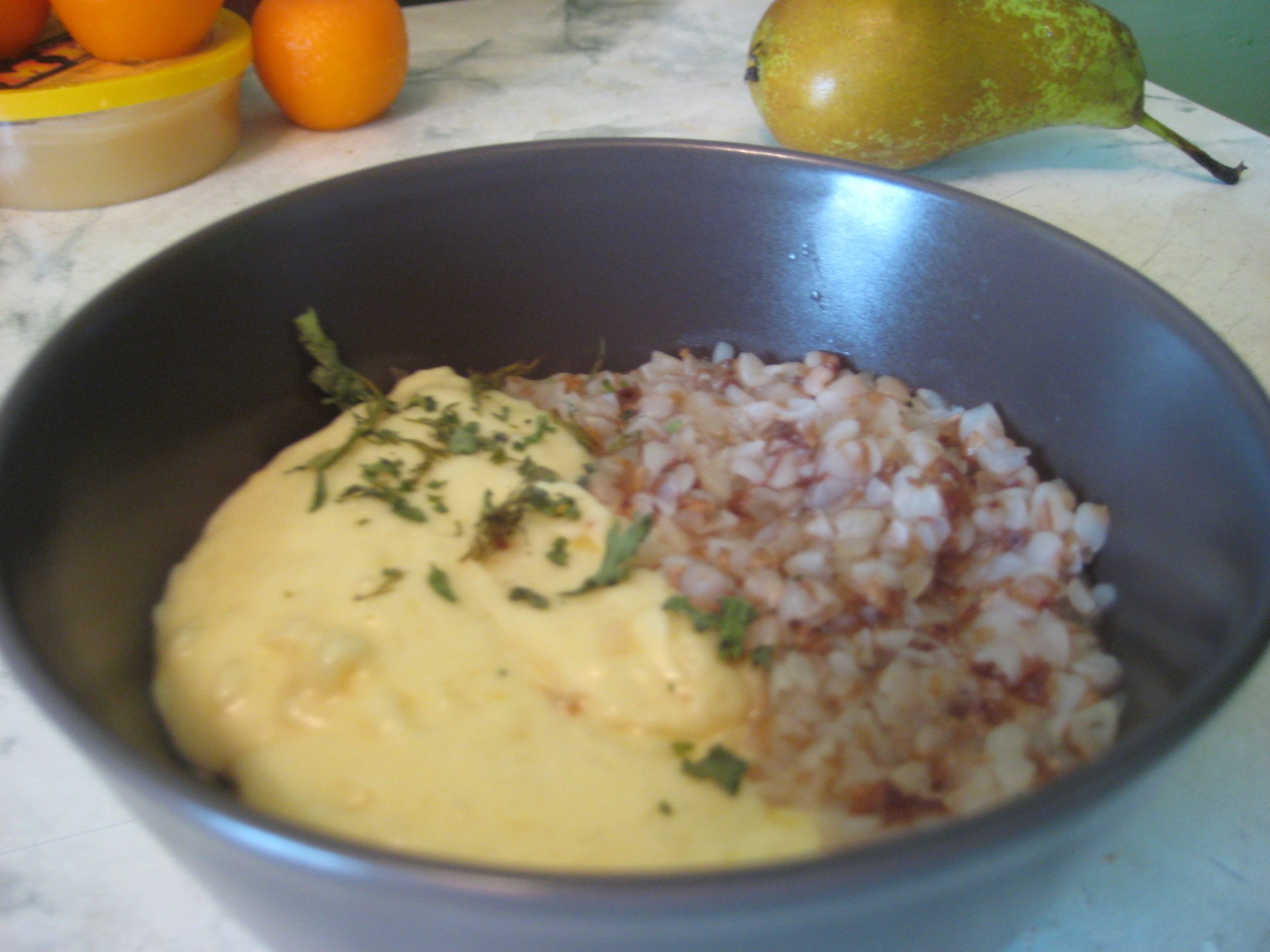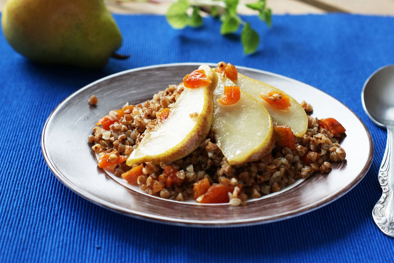 Каша из киноа с соте из груш