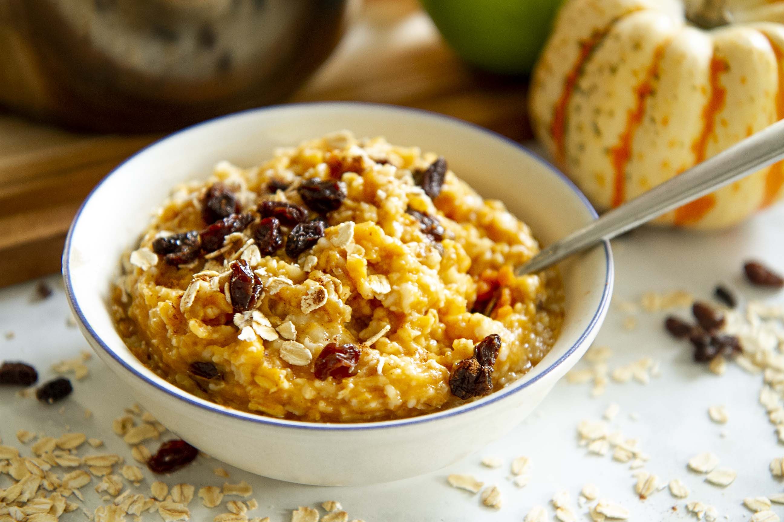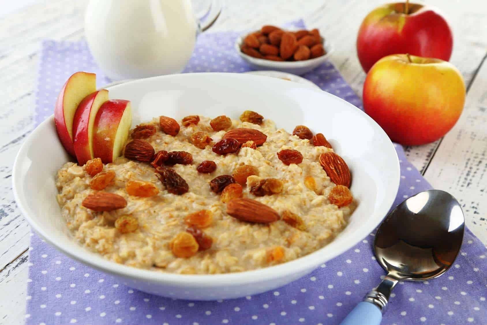 Овсяная каша с яблоком, изюмом и корицей