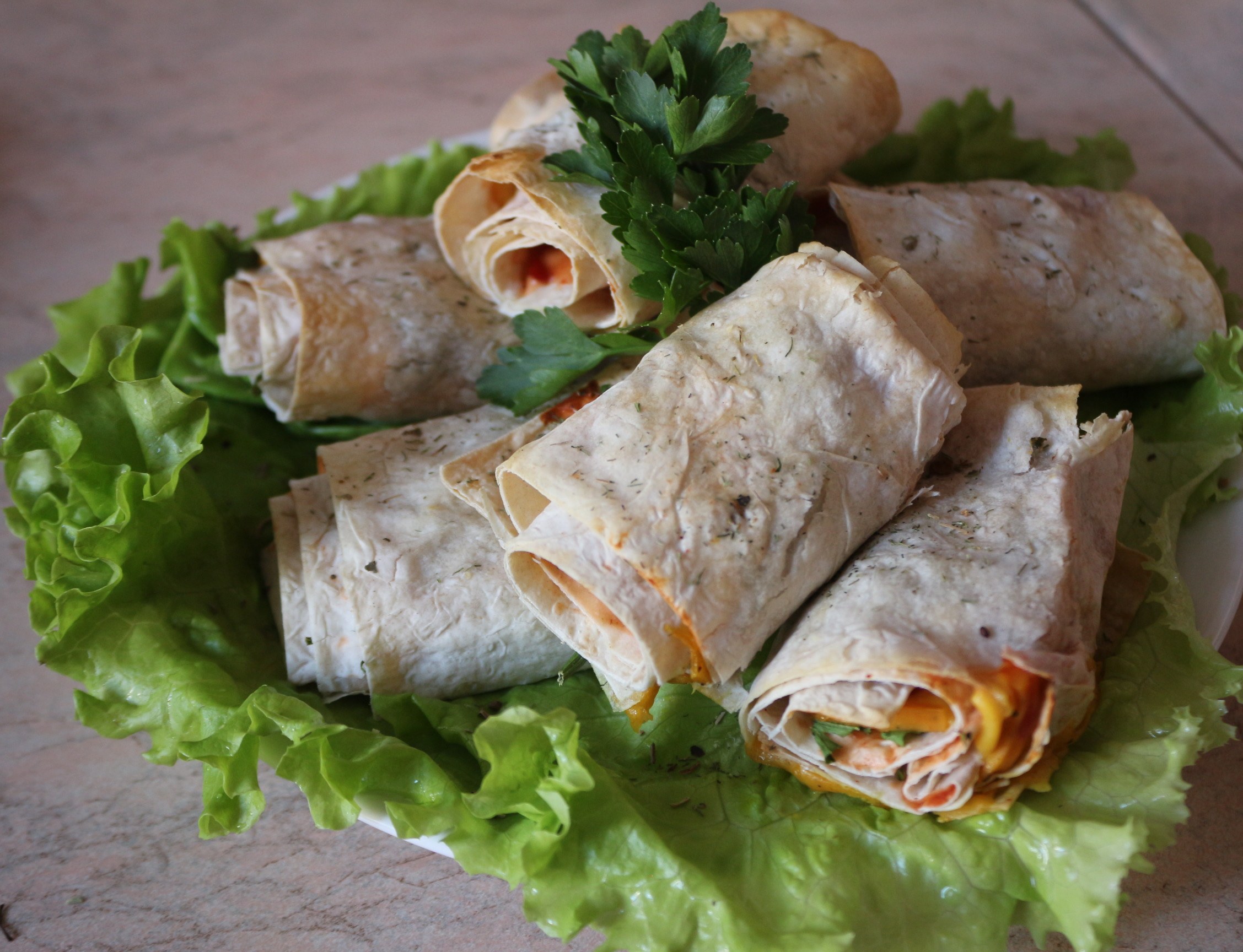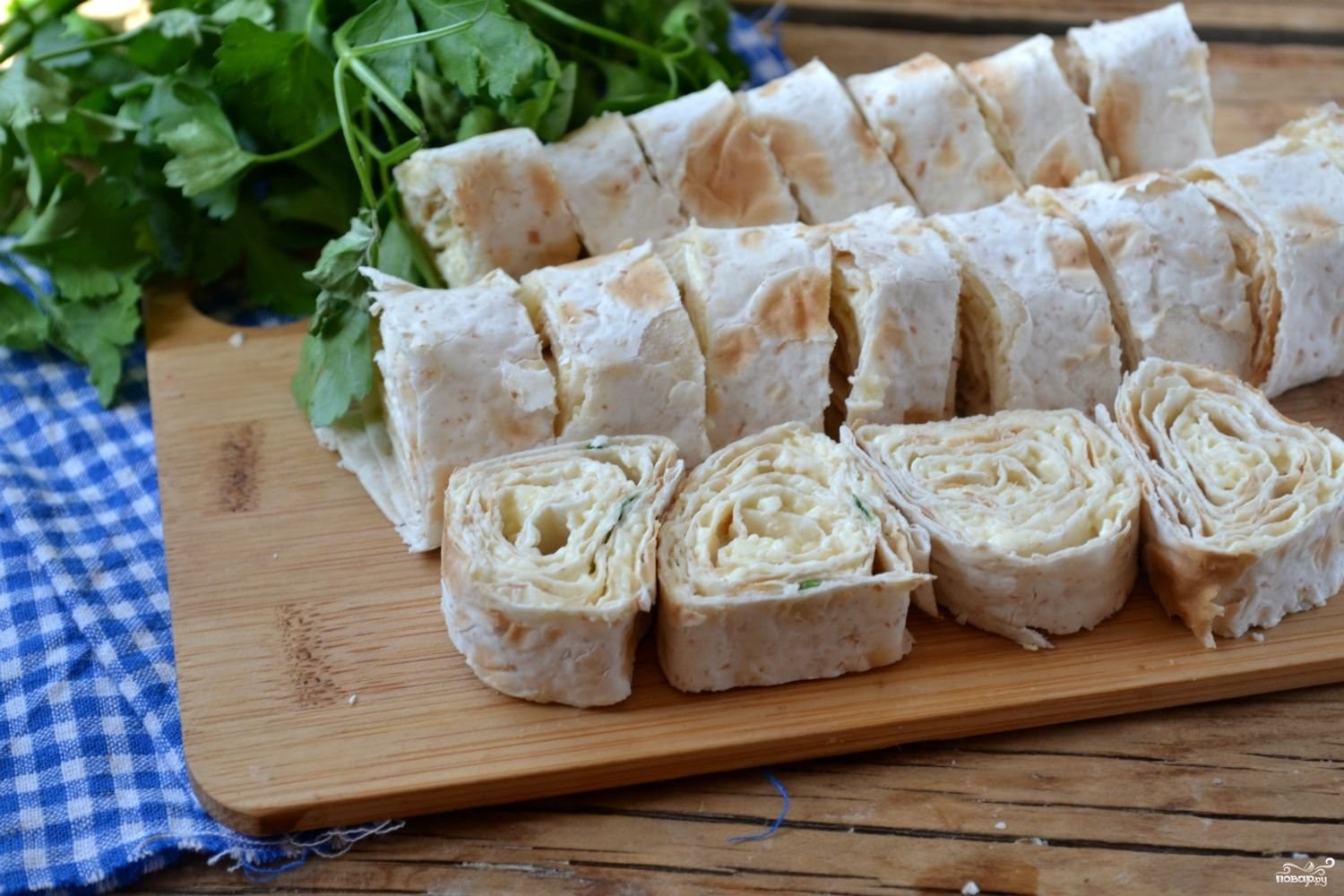 Рулетики из лаваша с крабовыми палочками и плавленным