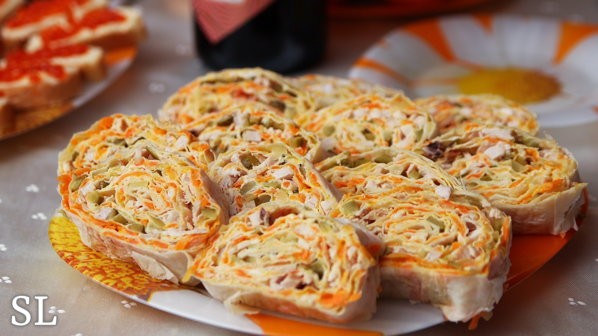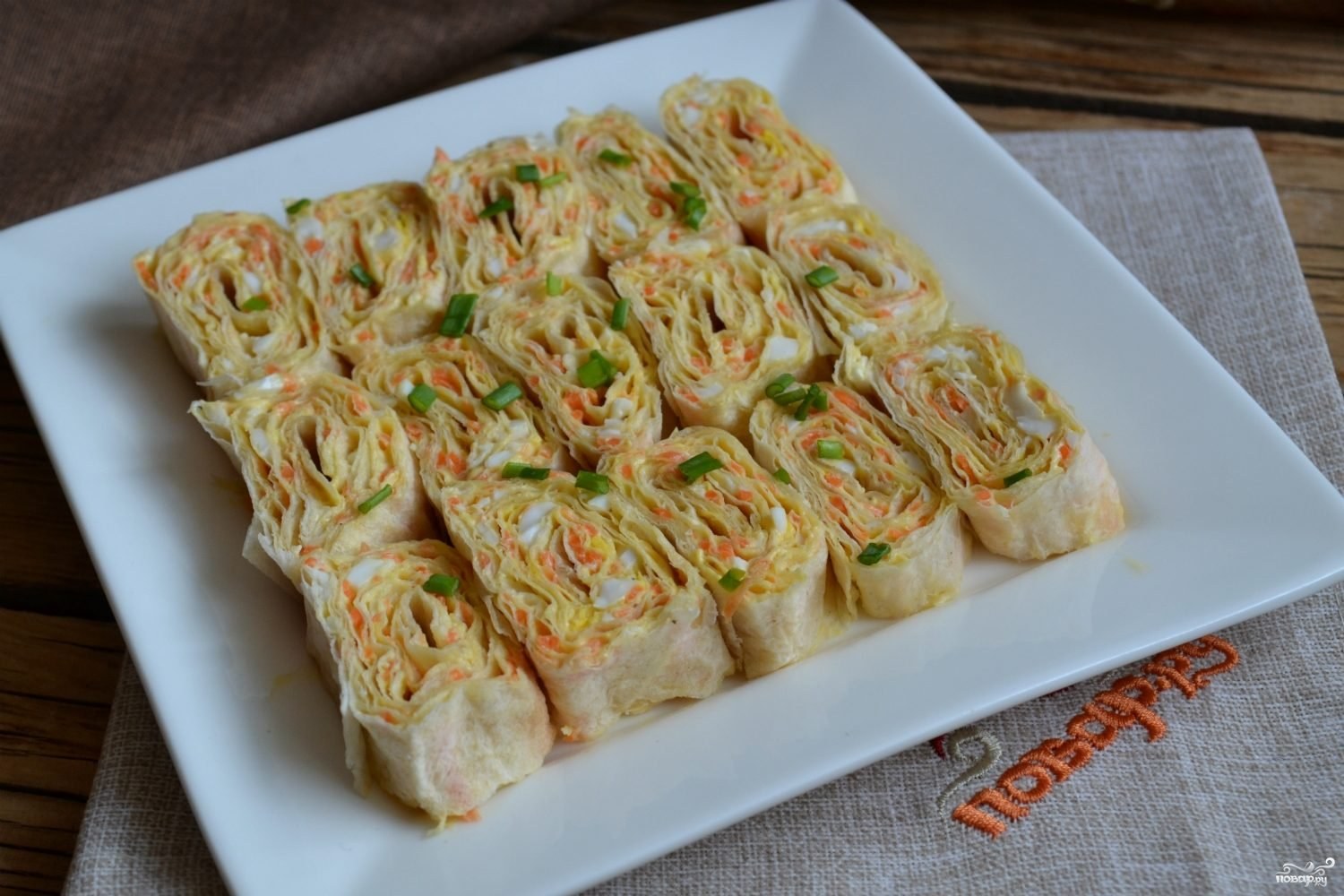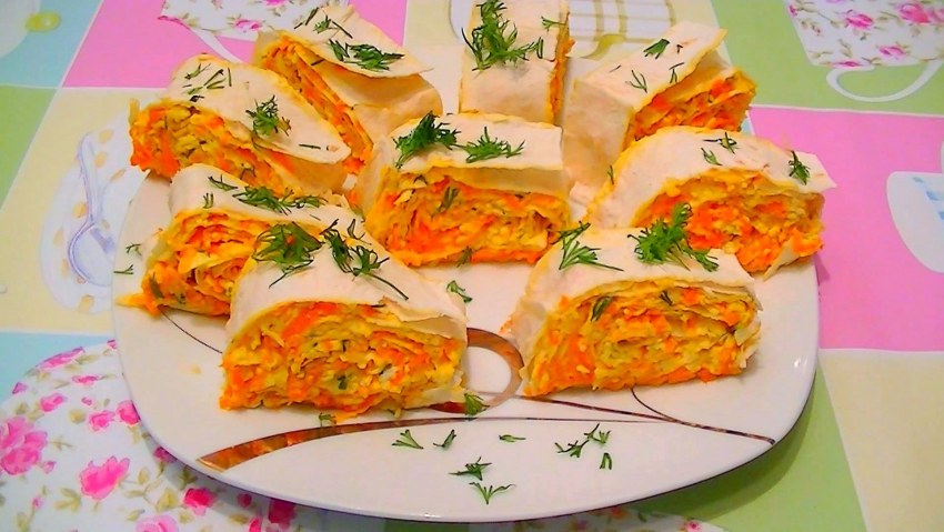 Рулет из лаваша с корейской морковкой и плавленным сыром