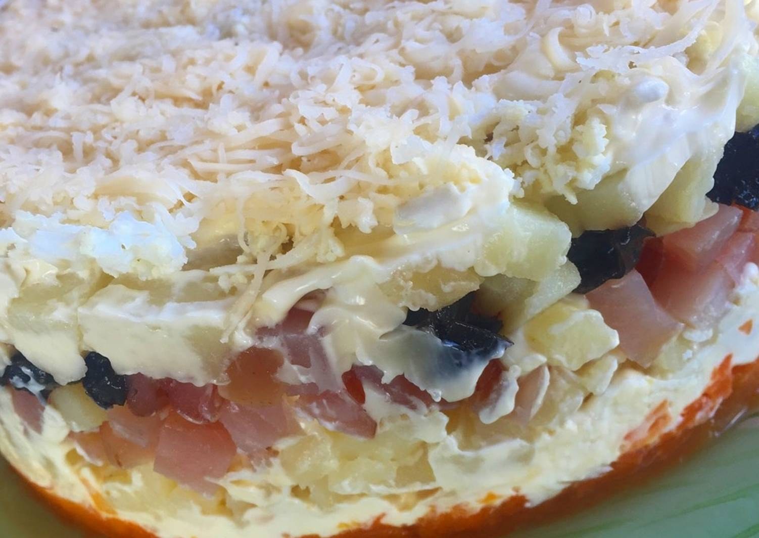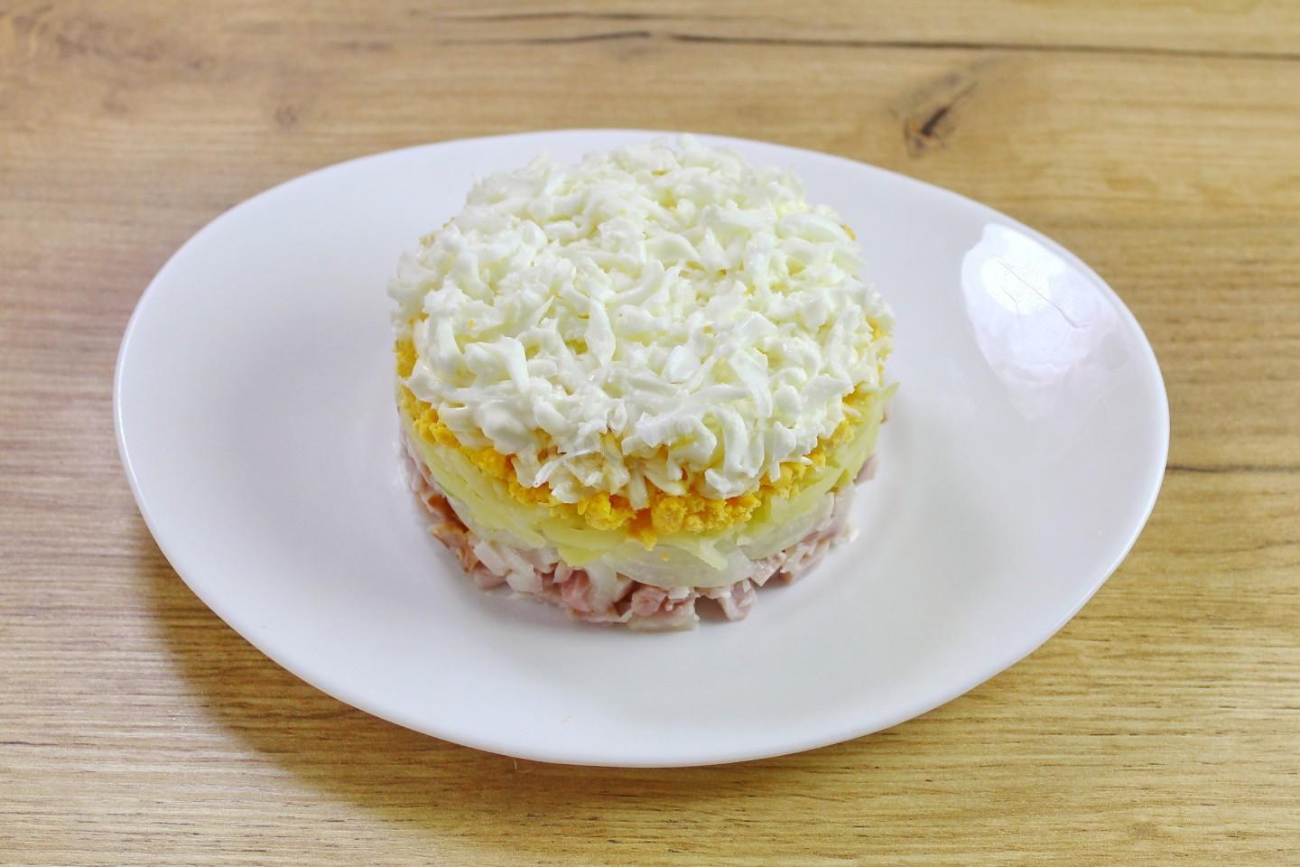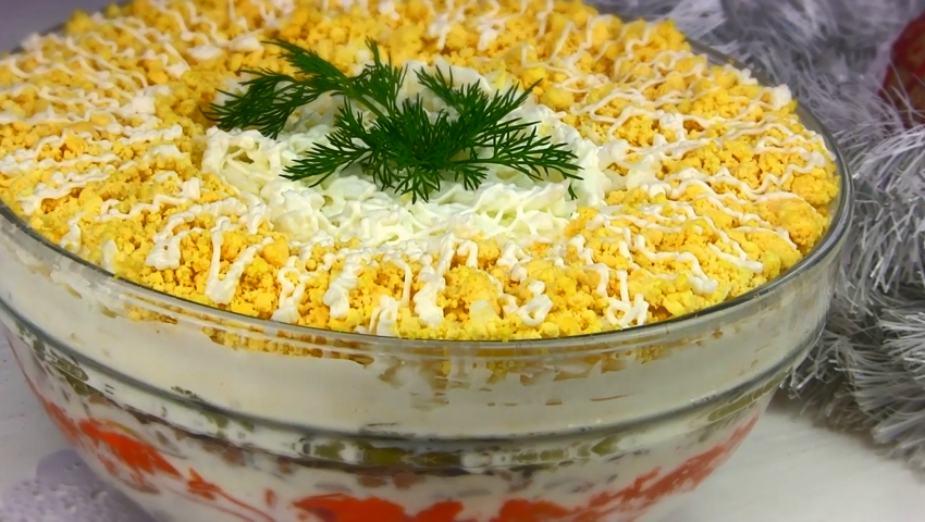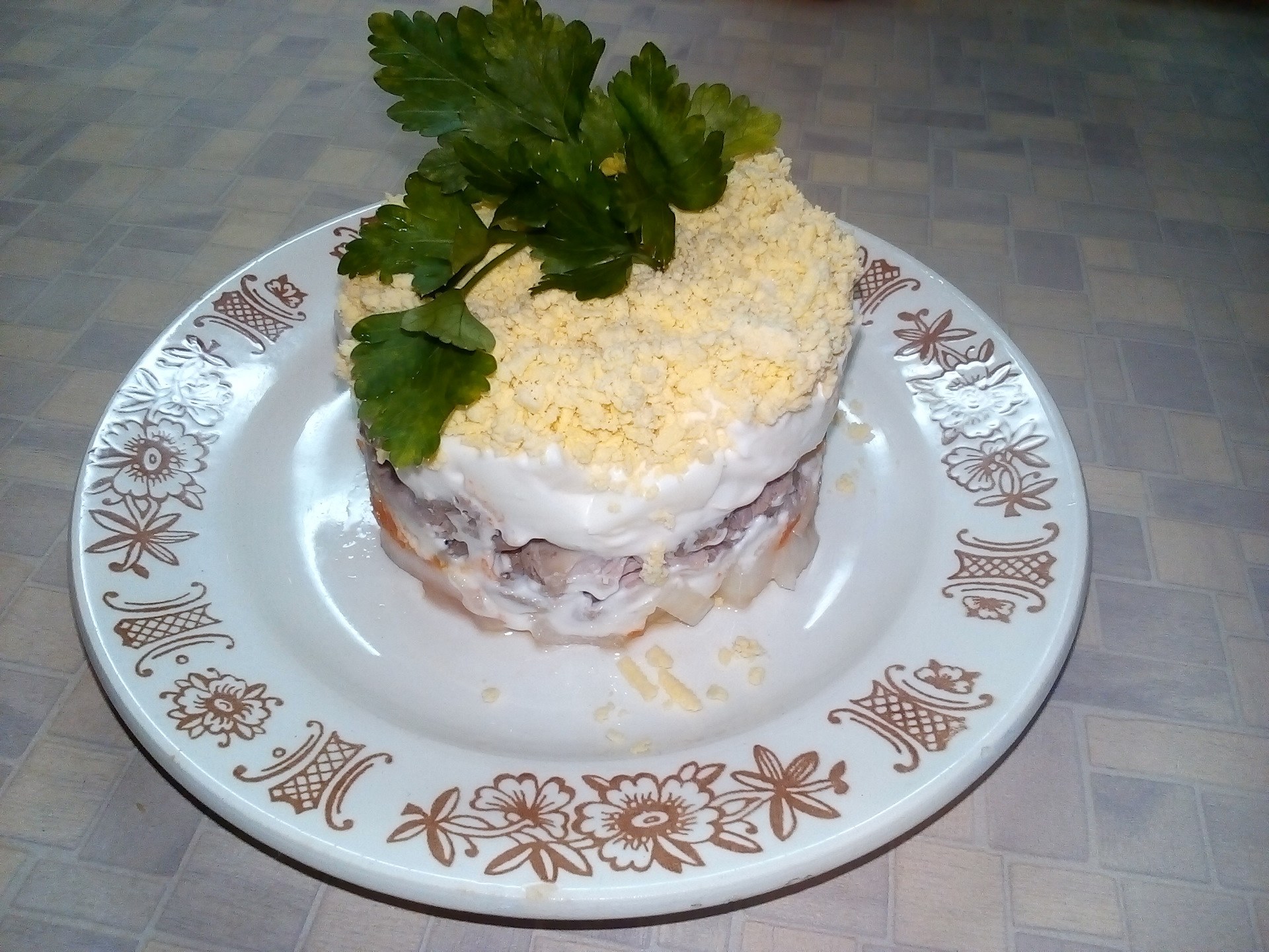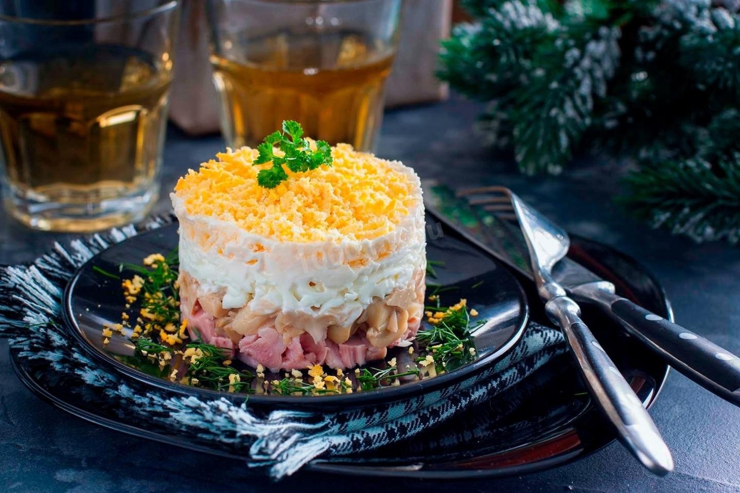 Слоеный салат с копченой курицей черносливом грецкими орехами