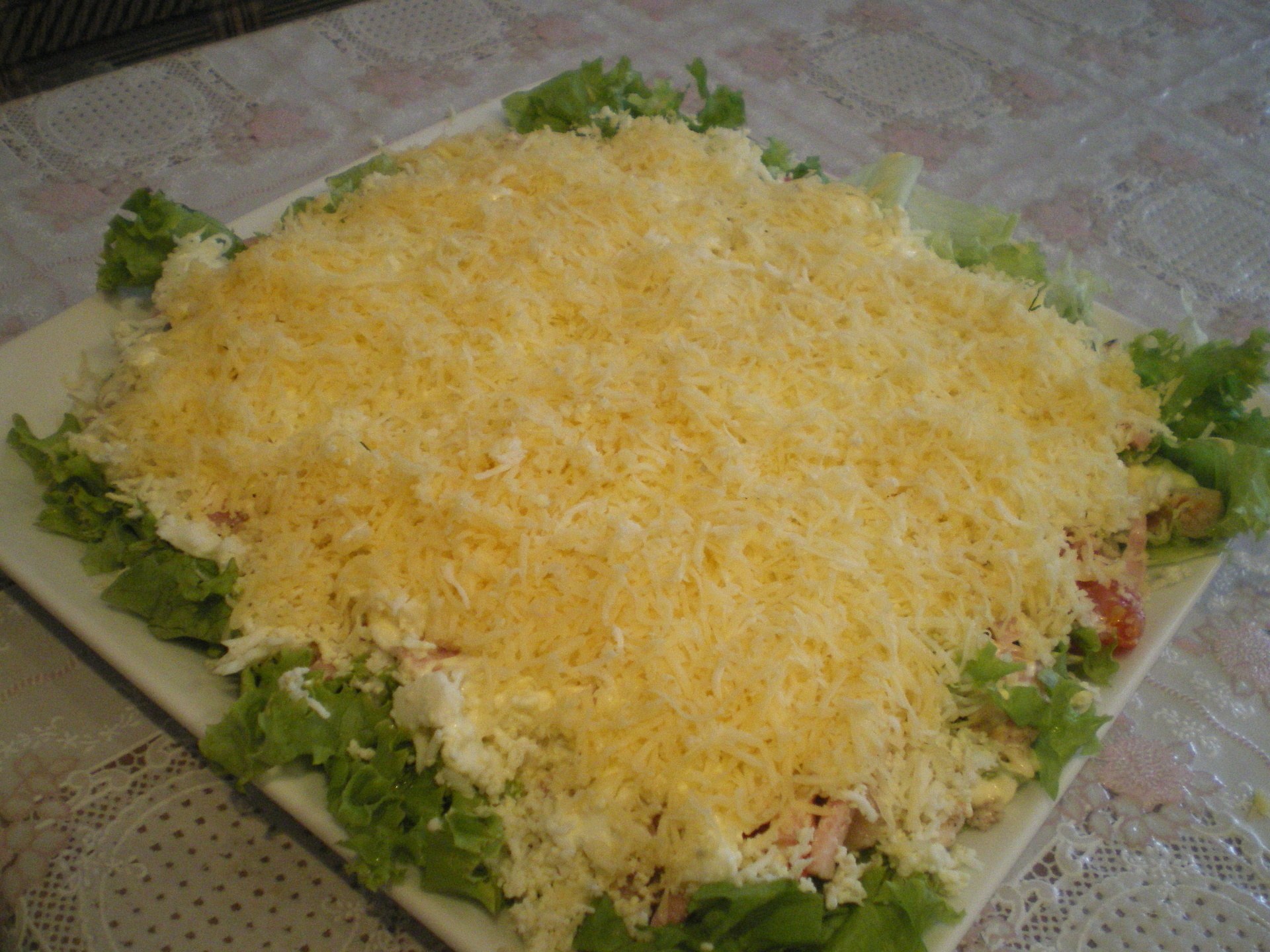Салат нежность с черносливом и грецкими орехами и курицей и сыром