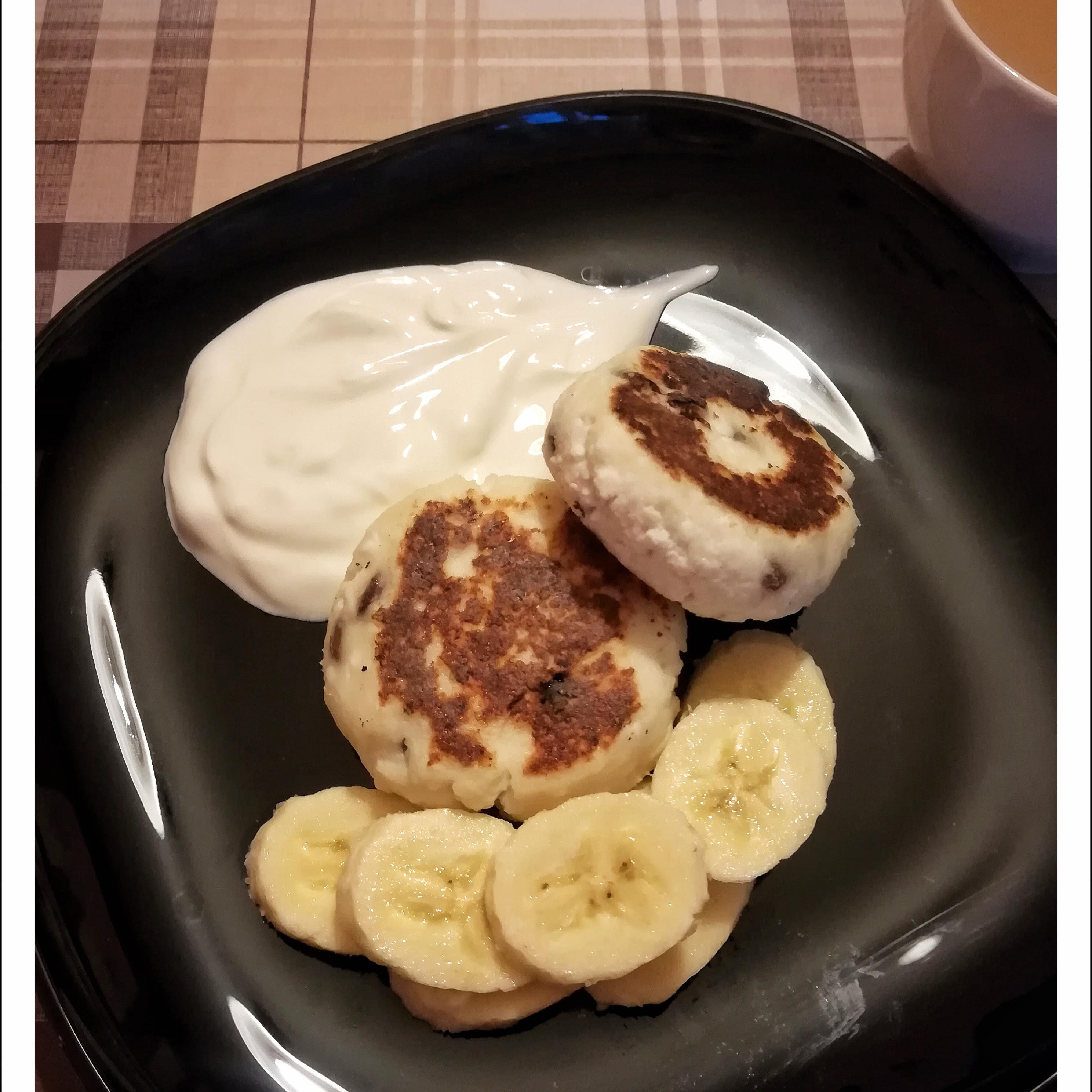 Сырники со сметаной и бананом