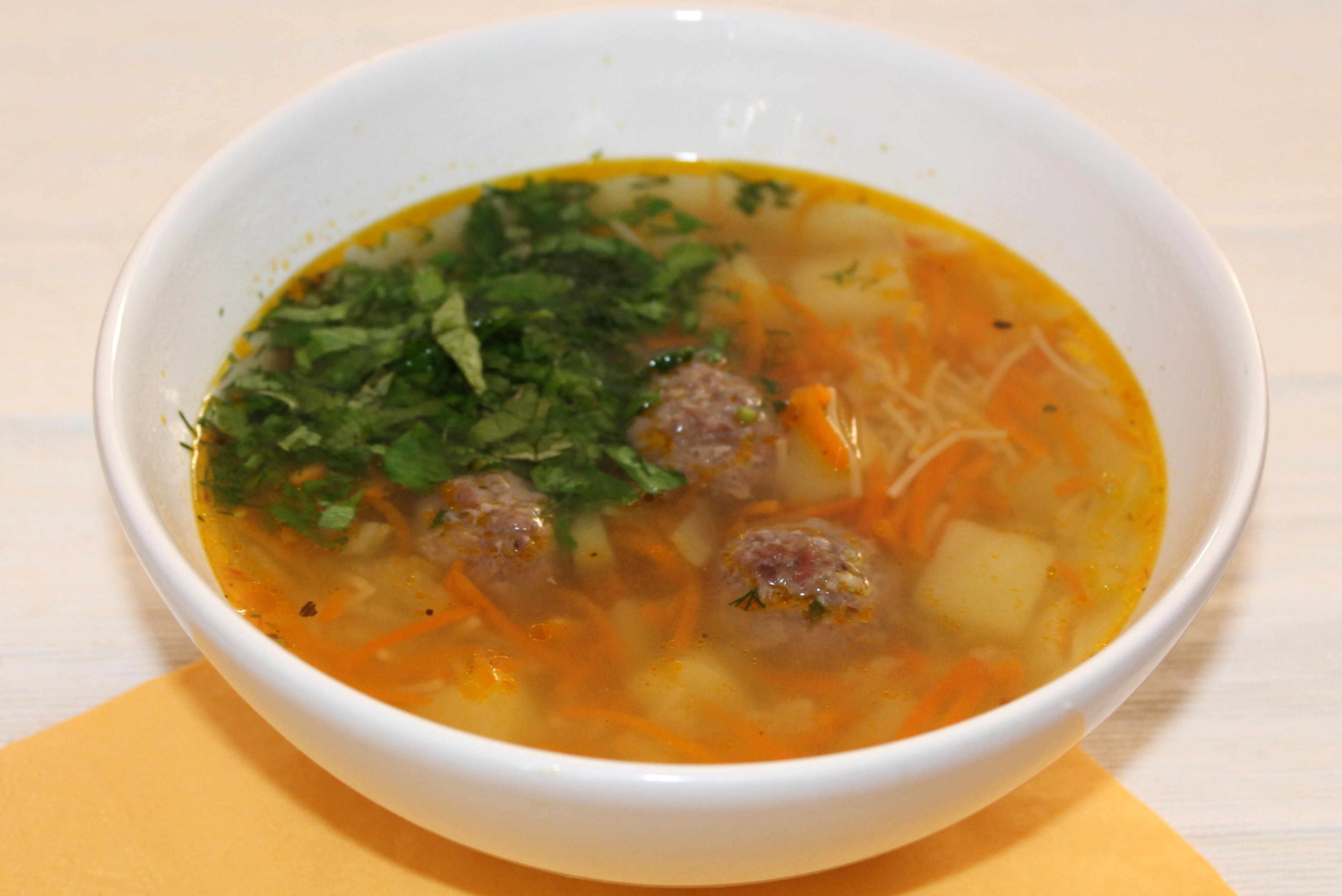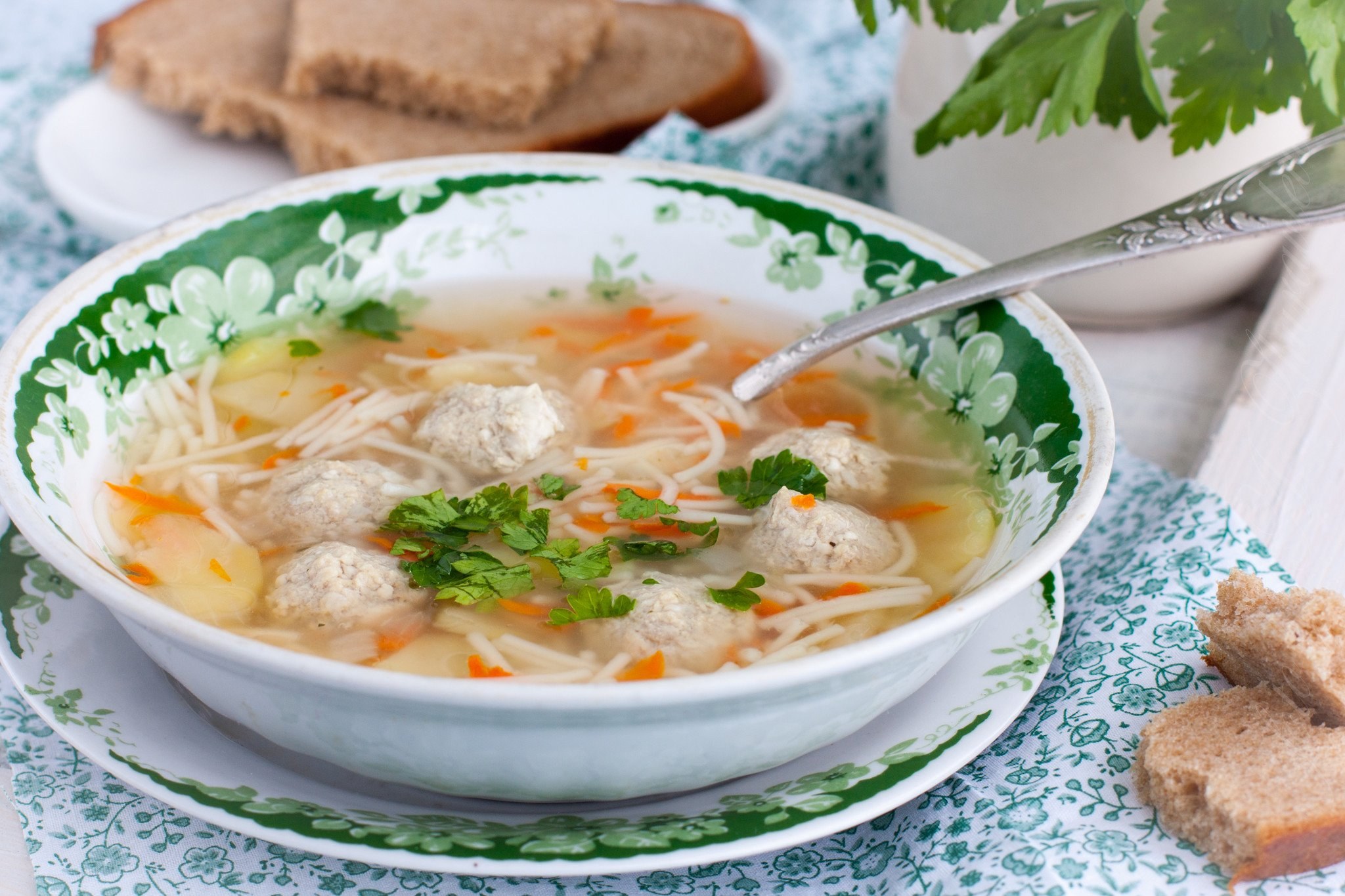Суп с лапшой и куриными фрикадельками (53 фото)