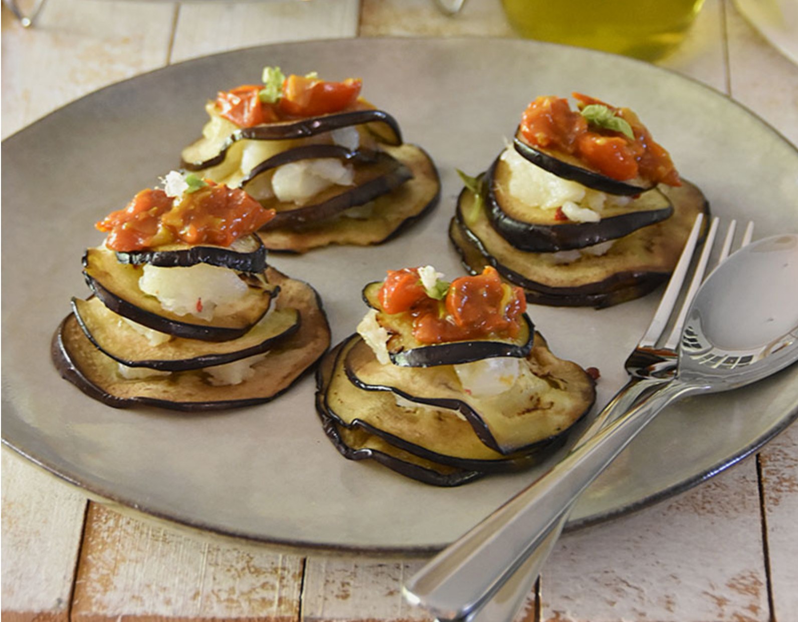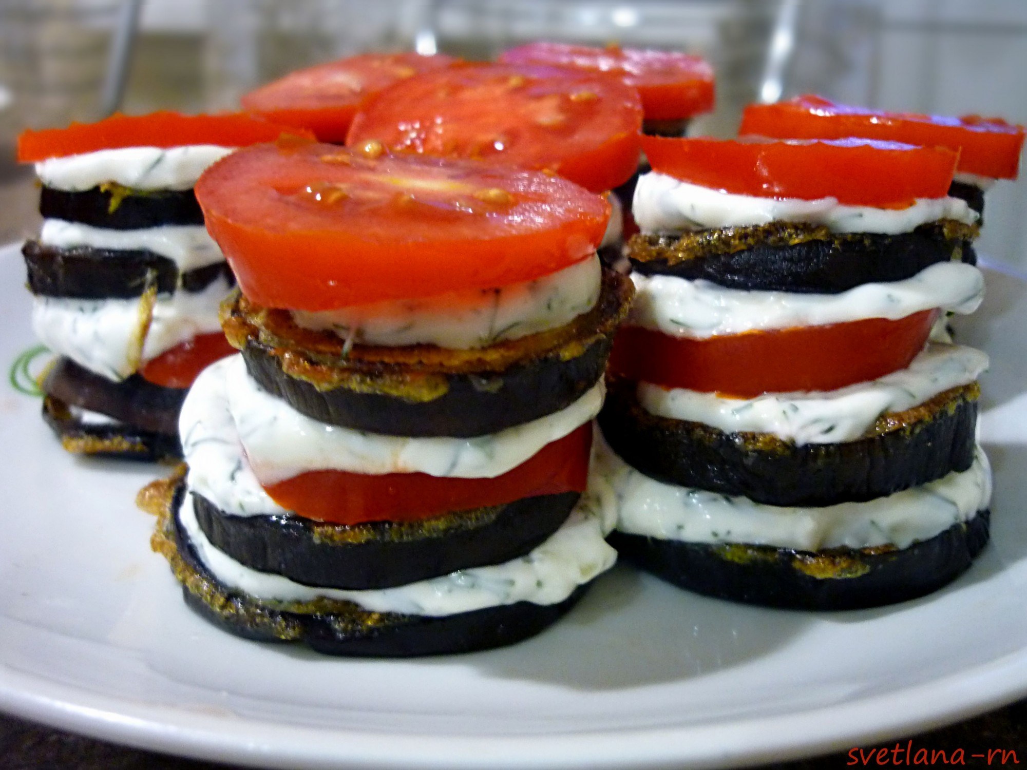 Башенки из баклажанов с помидорами