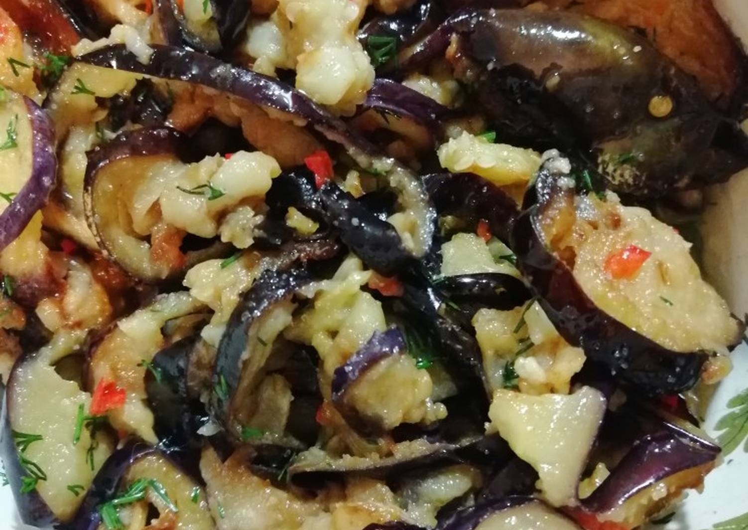 Баклажаны жареные с яйцом и чесноком