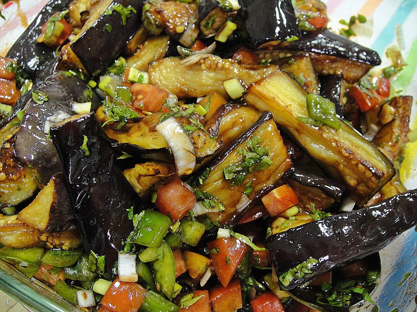Баклажаны с помидорами и кинзой